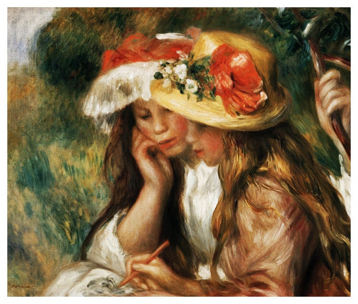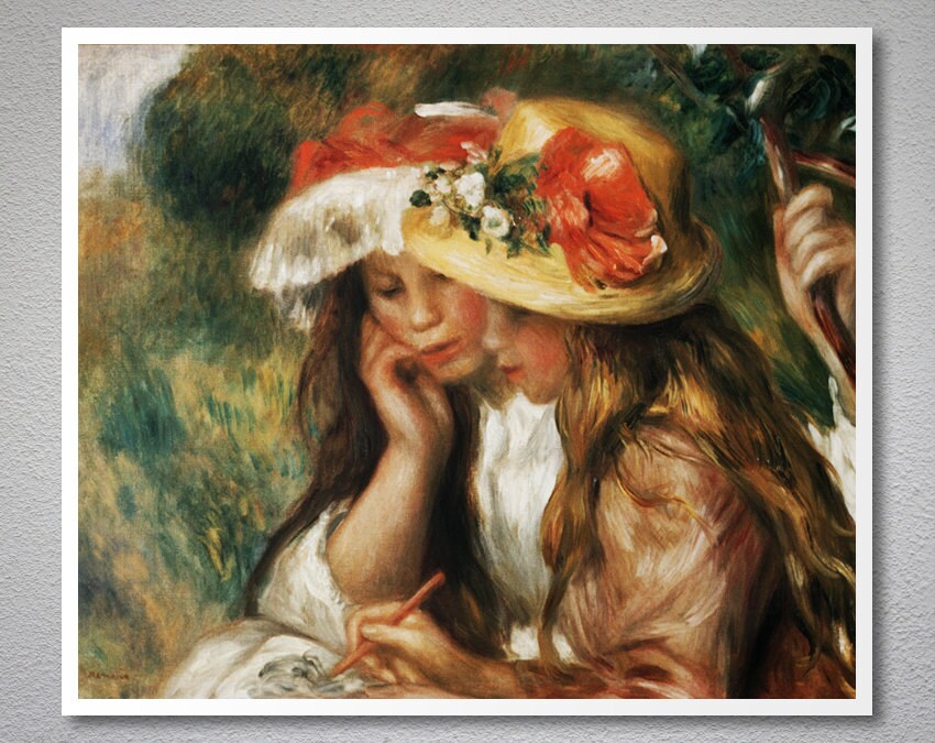 Two Girls Drawing by Pierre Auguste Renoir - Poster Paper or Canvas Print / Gift Idea / Christmas Gift