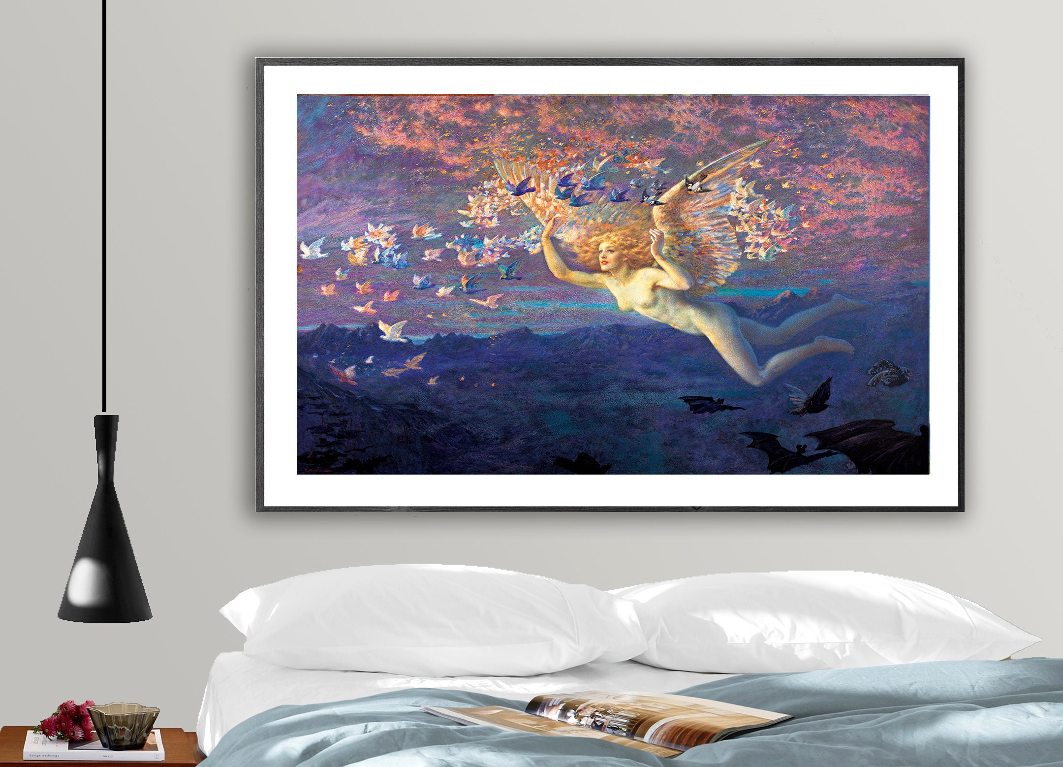 Wings of the Morning by Edward Robert Hughes Fine Art Print - Fantastic Art, Figurative Nude Painting, Deco Interior