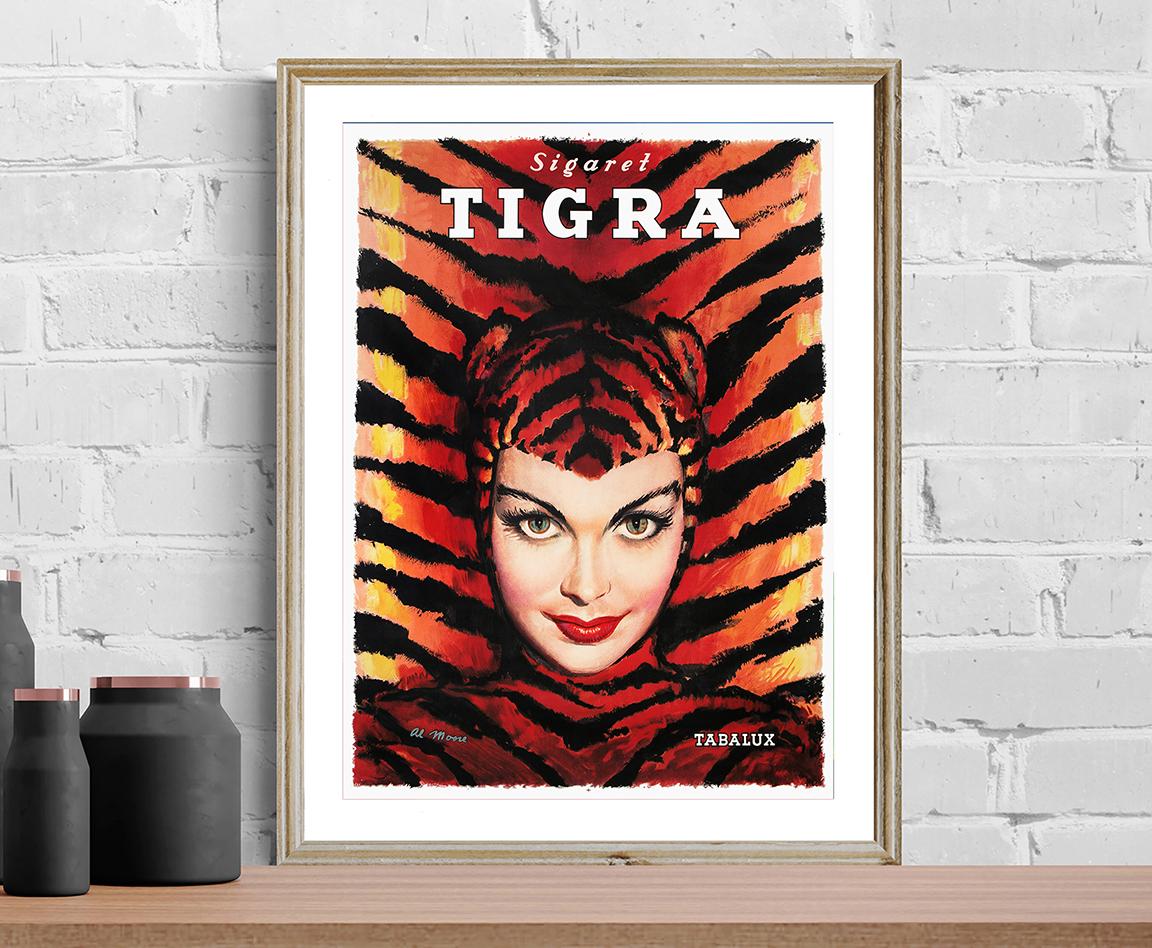 Vintage Tigra Cigarette Advertisement Art Print - Reproduction of a Vintage Artwork, Decorative Purposes Wall Decor