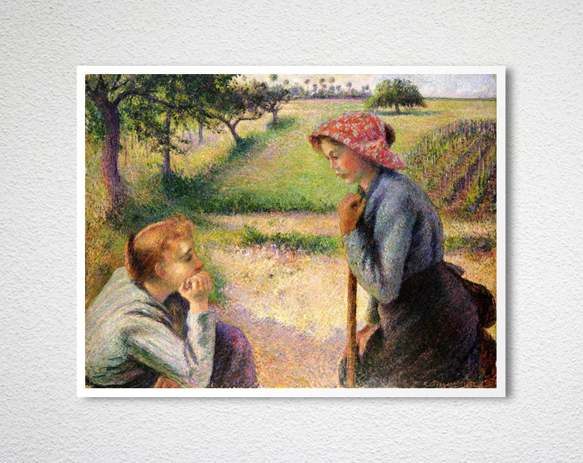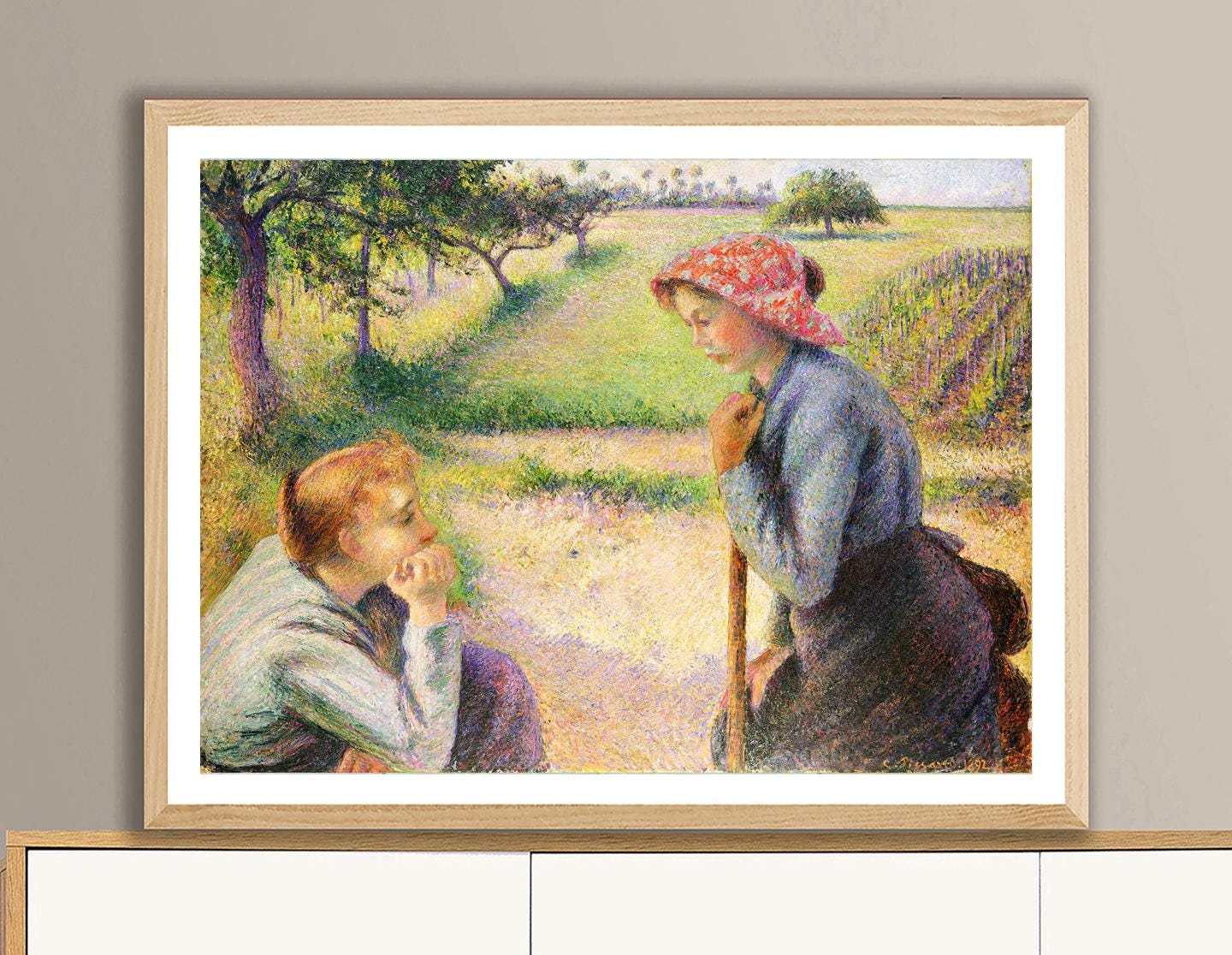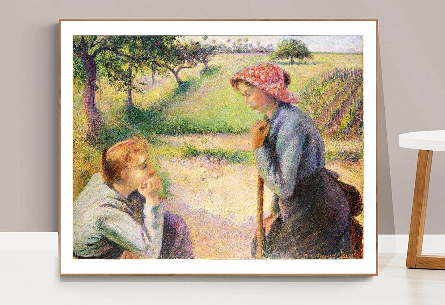 Two Young Peasant Women by Camille Pissarro - Poster Paper or Canvas Print