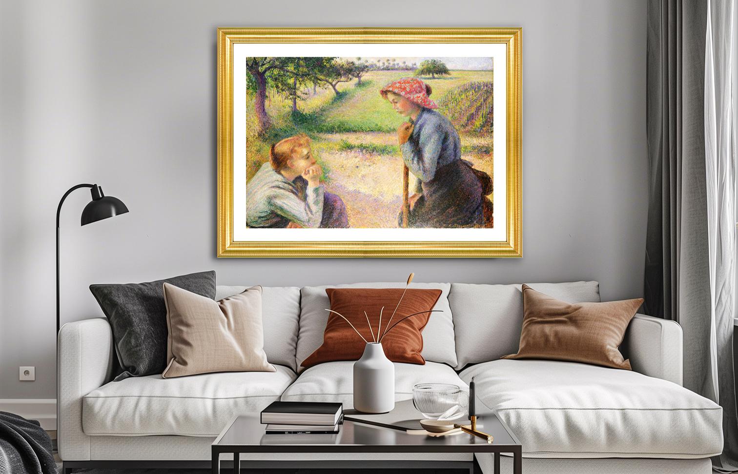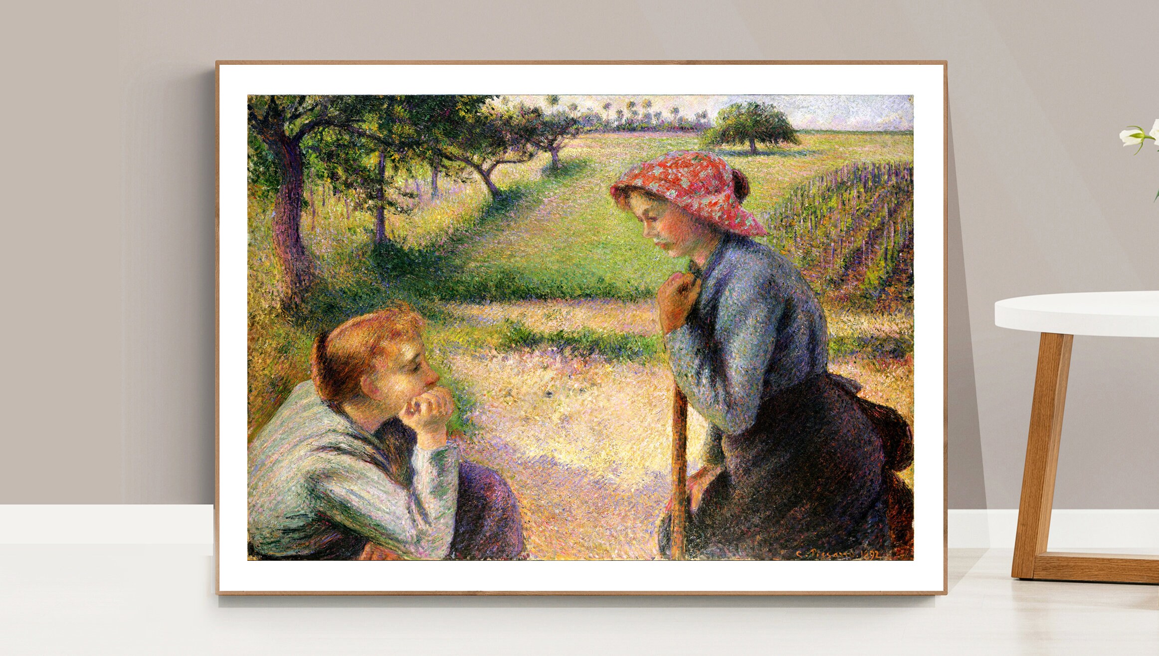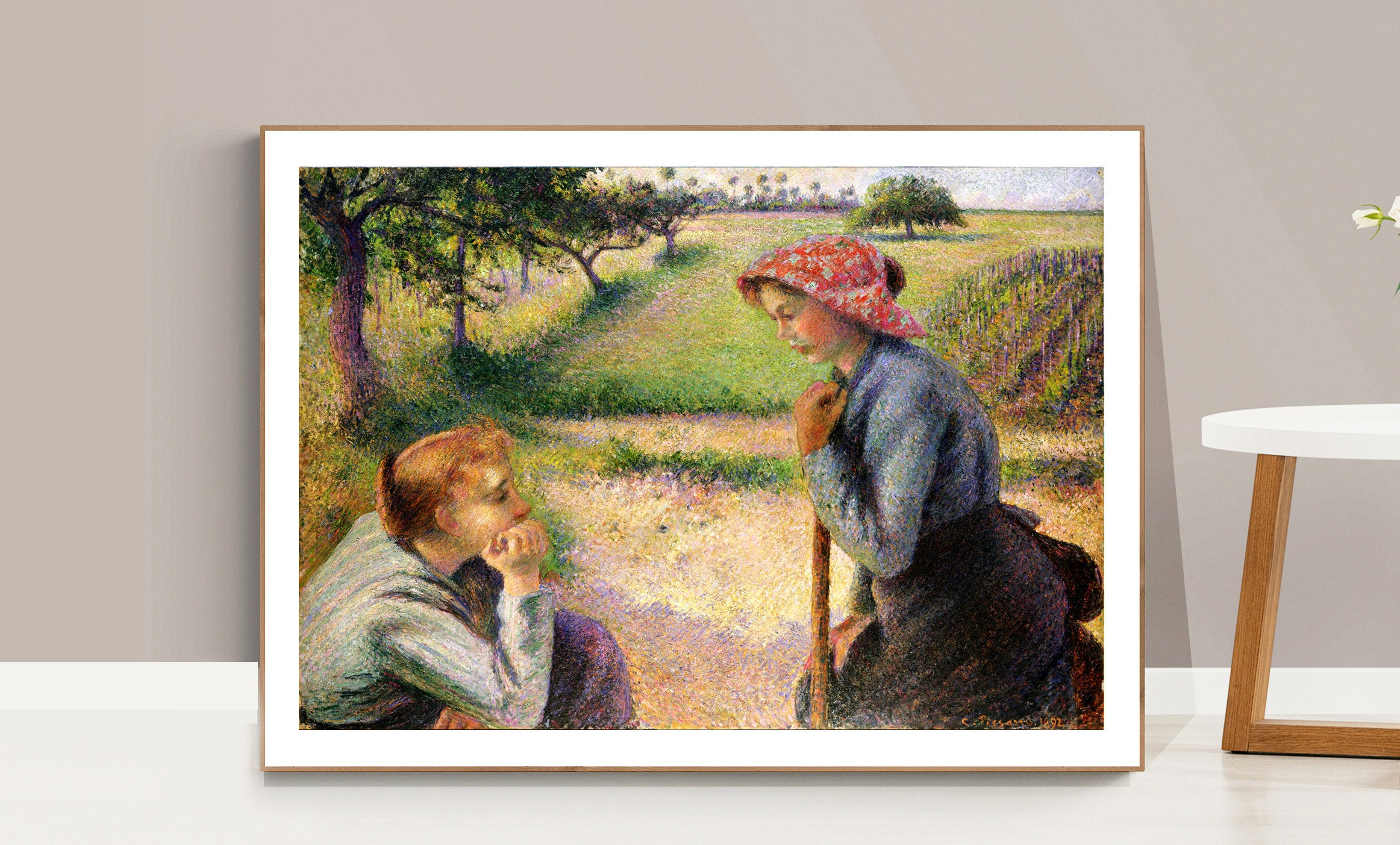 Two Young Peasant Women by Camille Pissarro - Poster Paper or Canvas Print