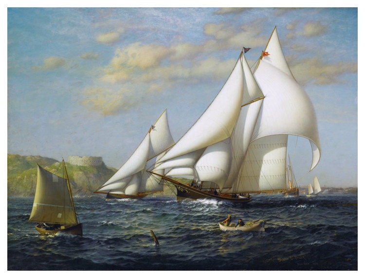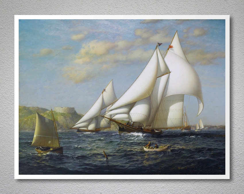 New York Yacht Club Racing Boats in New York Harbour by James Gale Tyler, 1884 - Poster Paper or Canvas Print