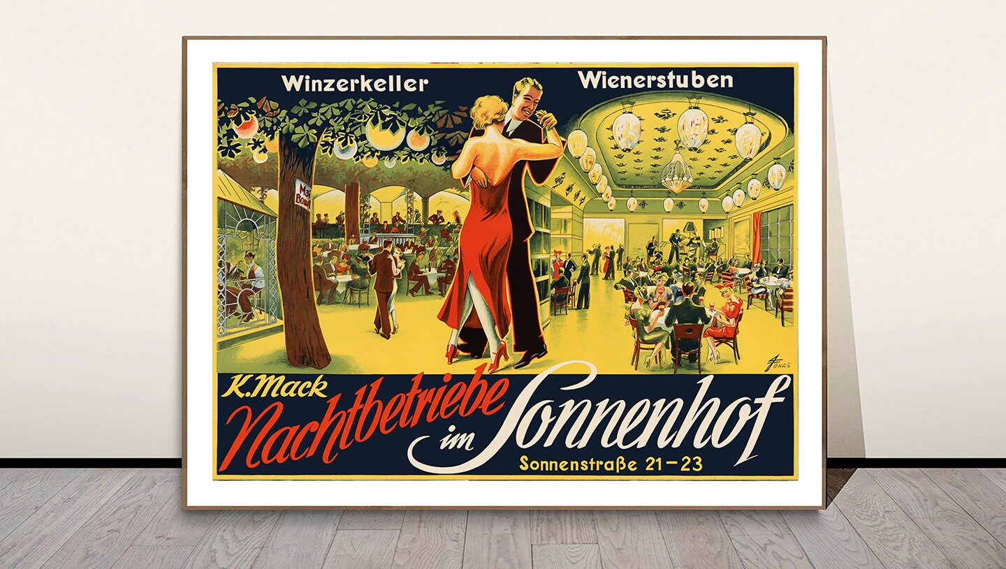 K. Mack Nachtbetriebe im Sonnenhof Vintage Wall Art, Retro Wall Décor, Entertainment Poster, Advertisement Print, Dancing Artwork