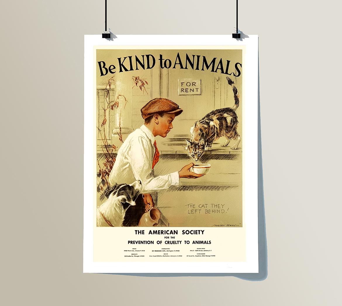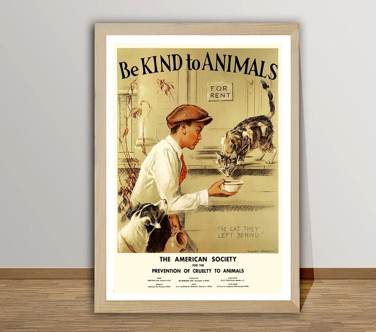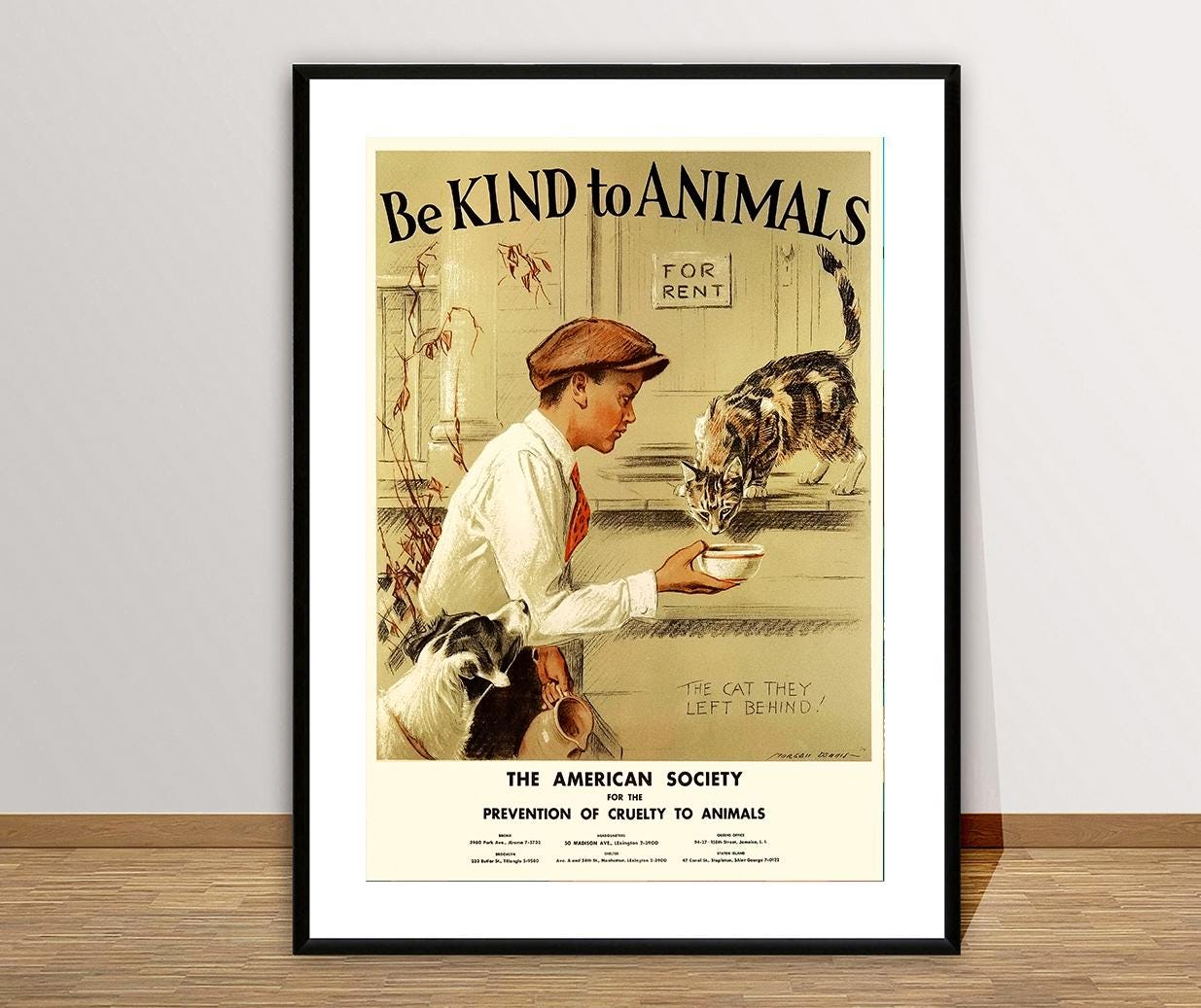 Be Kind to Animals Vintage Motivational Poster Animal Lover Gift