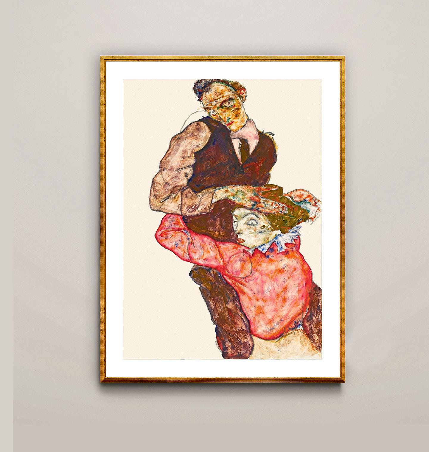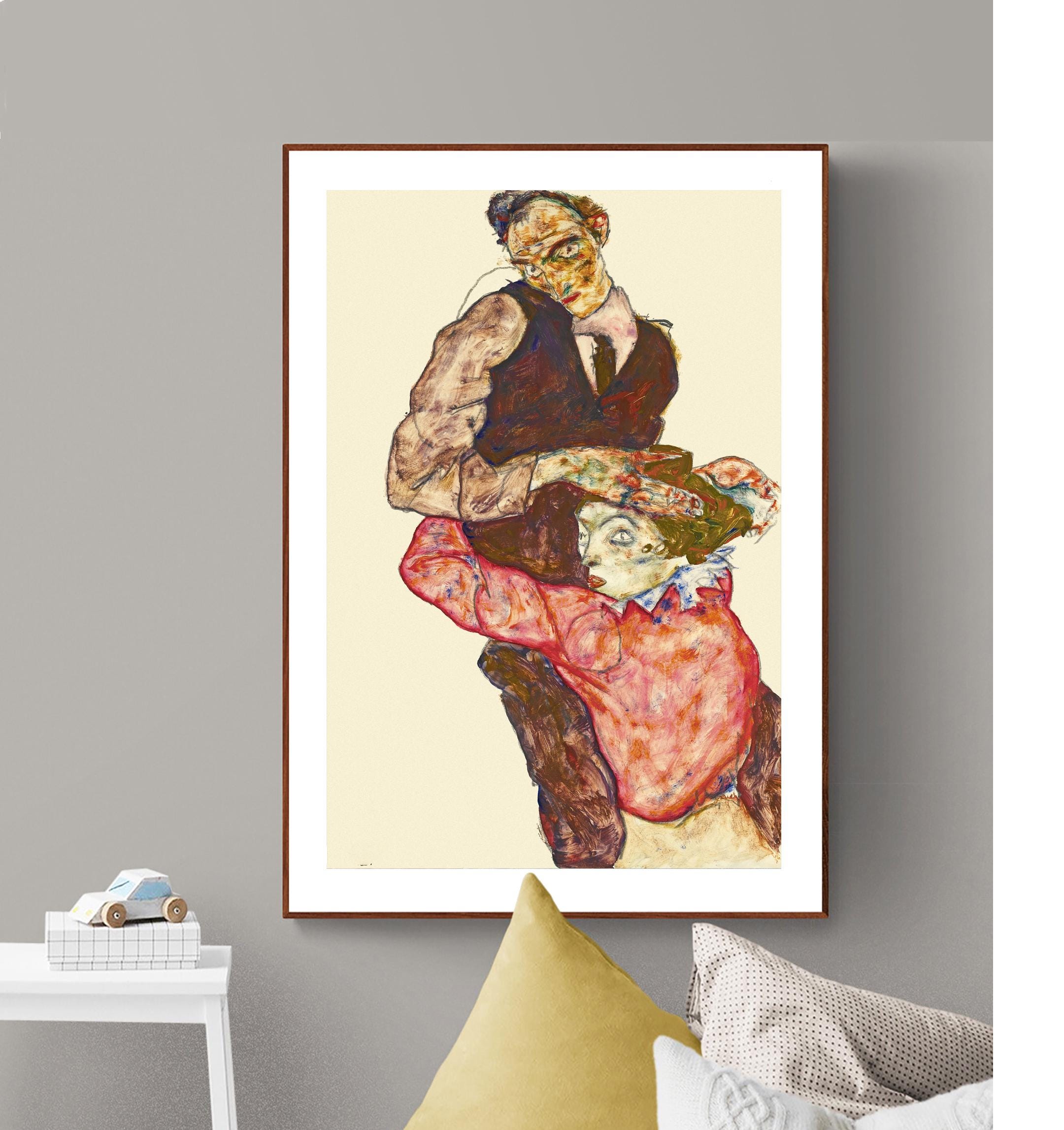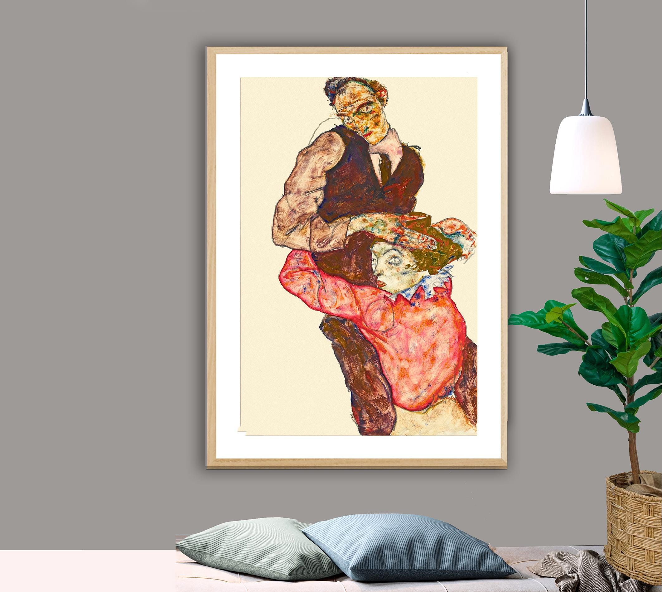 Egon Schiele Lovers Print: Figurative Art, Romantic Home Decor