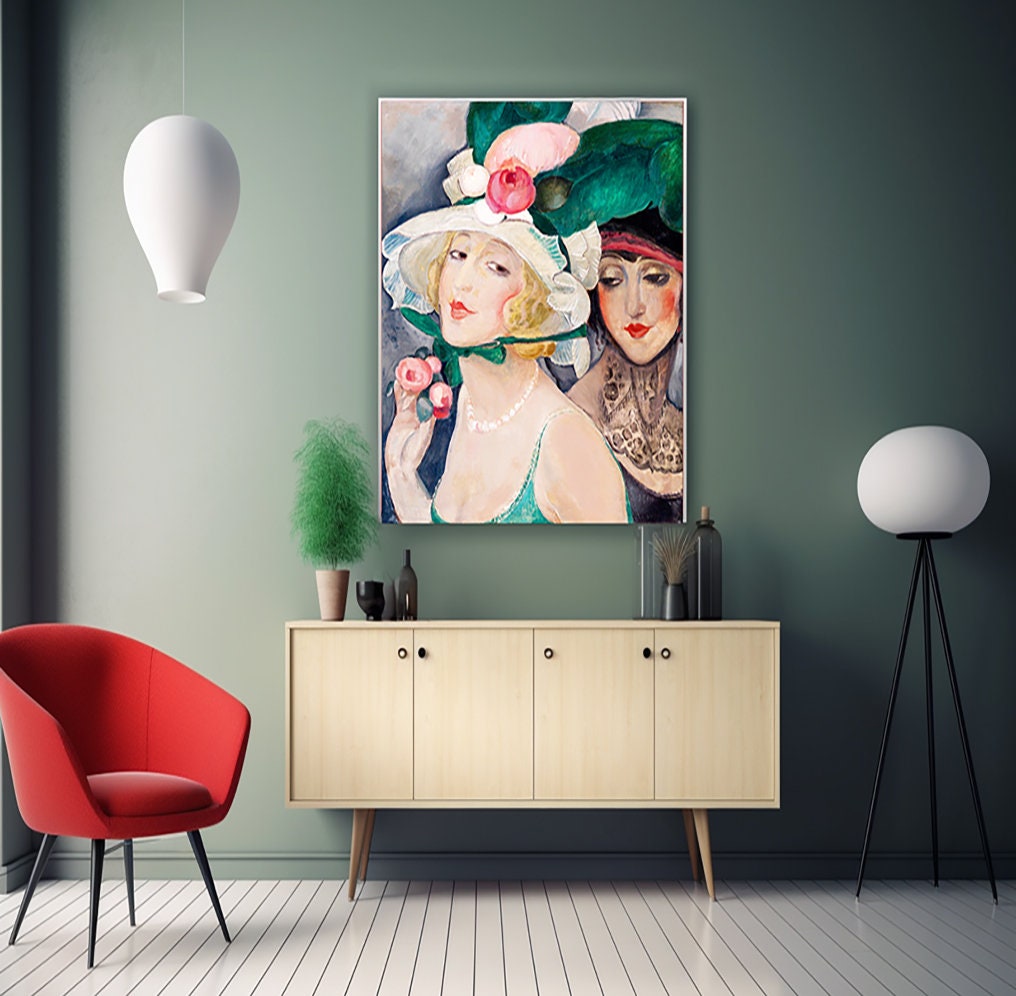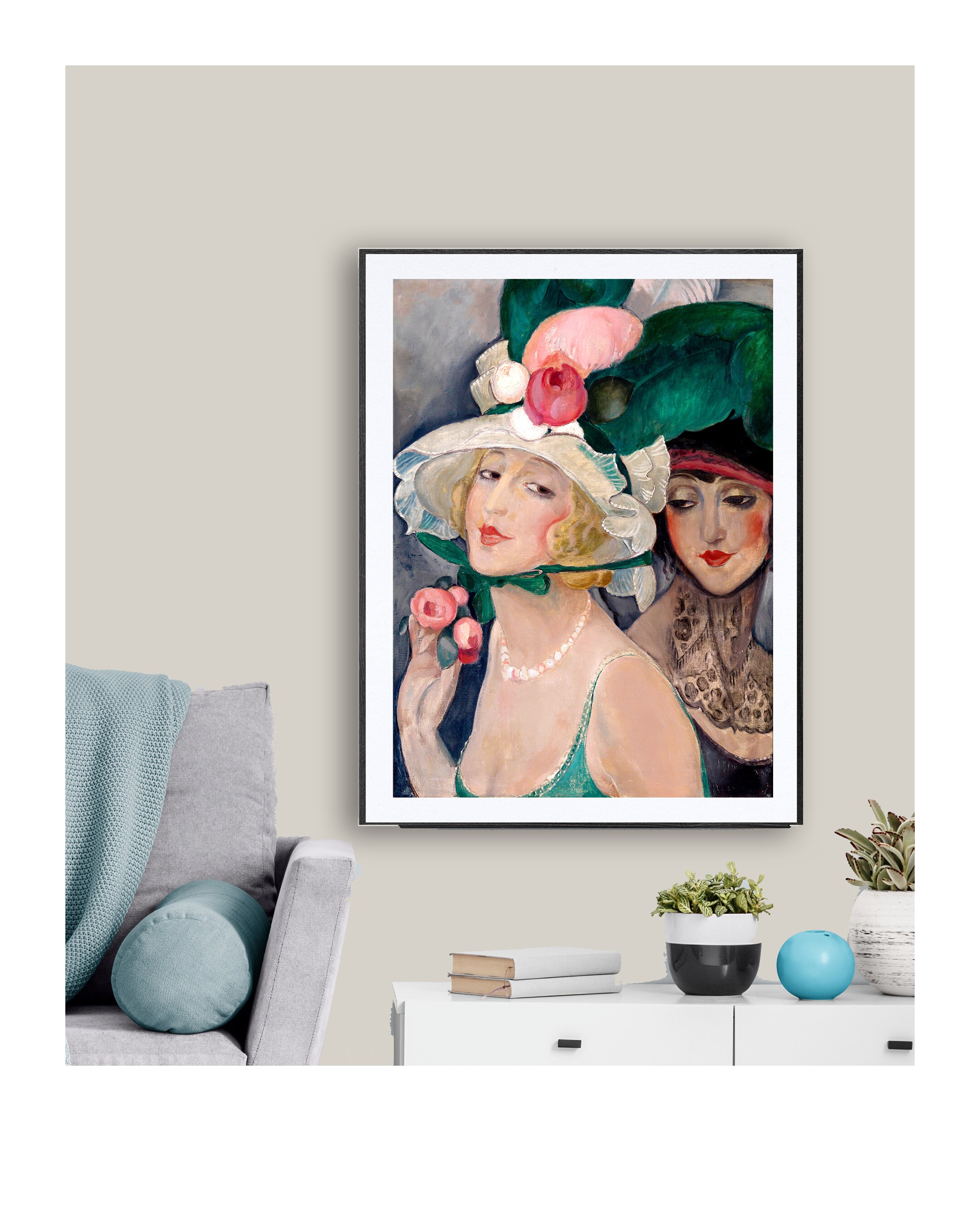 Gerda Wegener Art Print: Two Women with Hats, Vintage Portrait