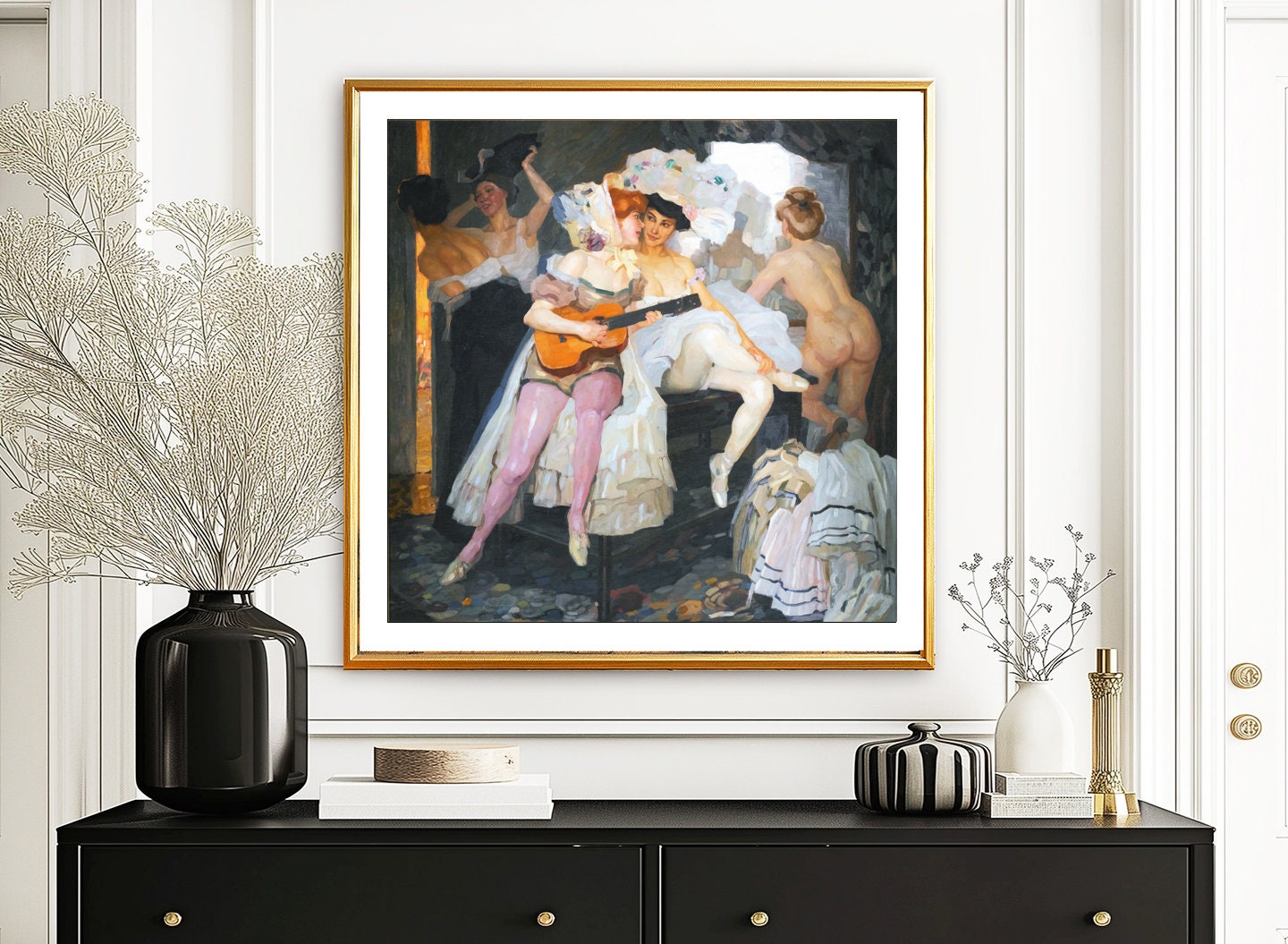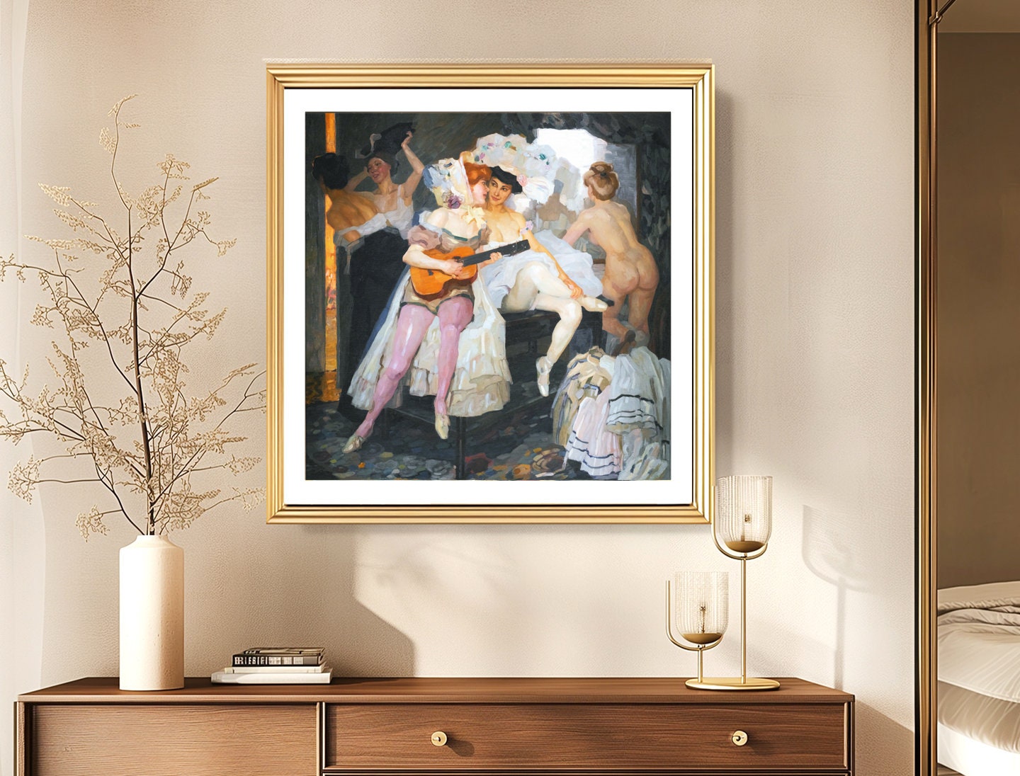 Printed on high quality paper, cotton canvas or adhesive sticker paper. A high quality reproduction of painting by Leo Putz. Professional packaging for safe shipping. Natural white border will be added to the image for mounting and framing.