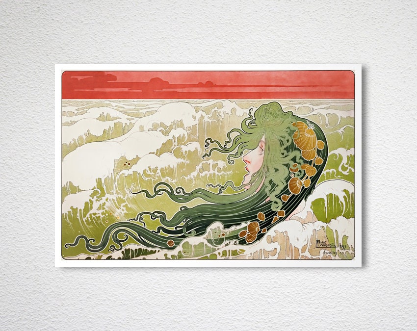 La Vague, The Wave by Henri Privat Livemont Fine Art Print - Poster Paper or Canvas Print