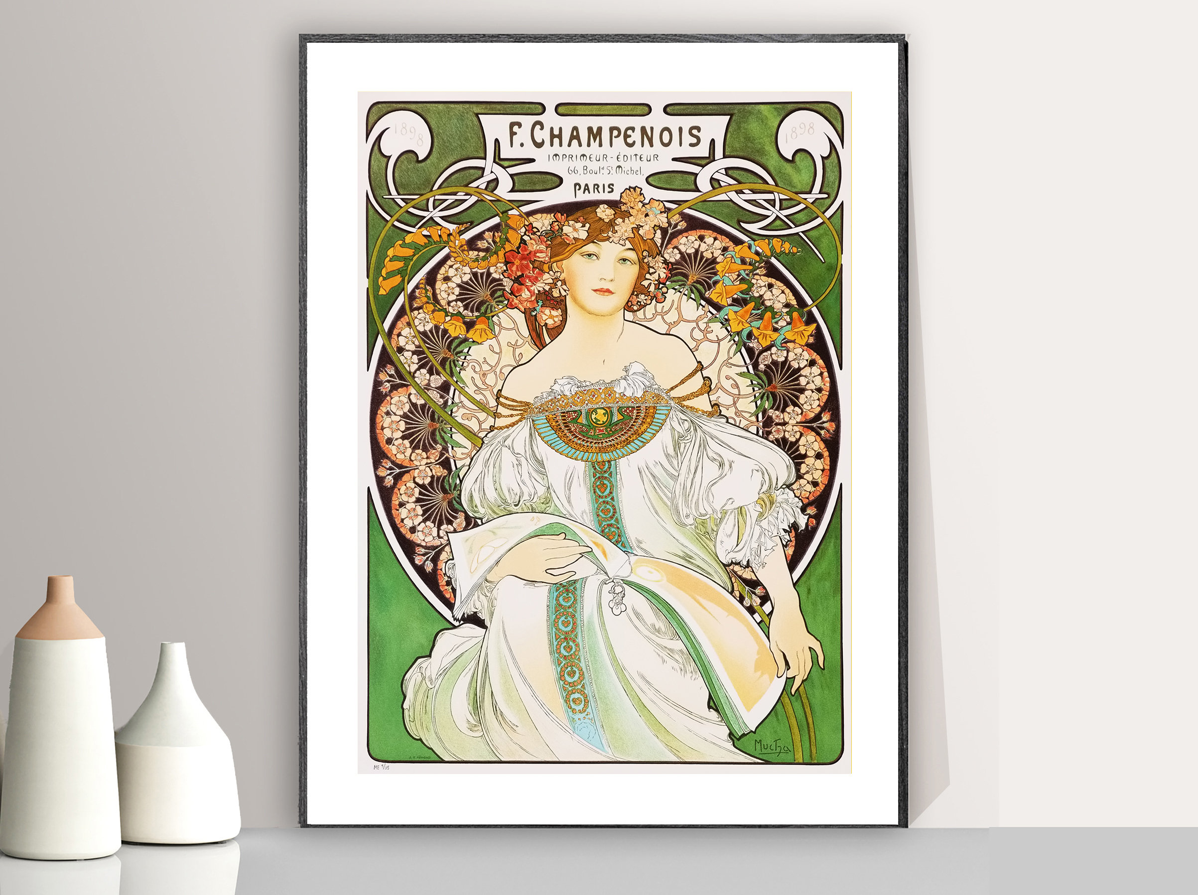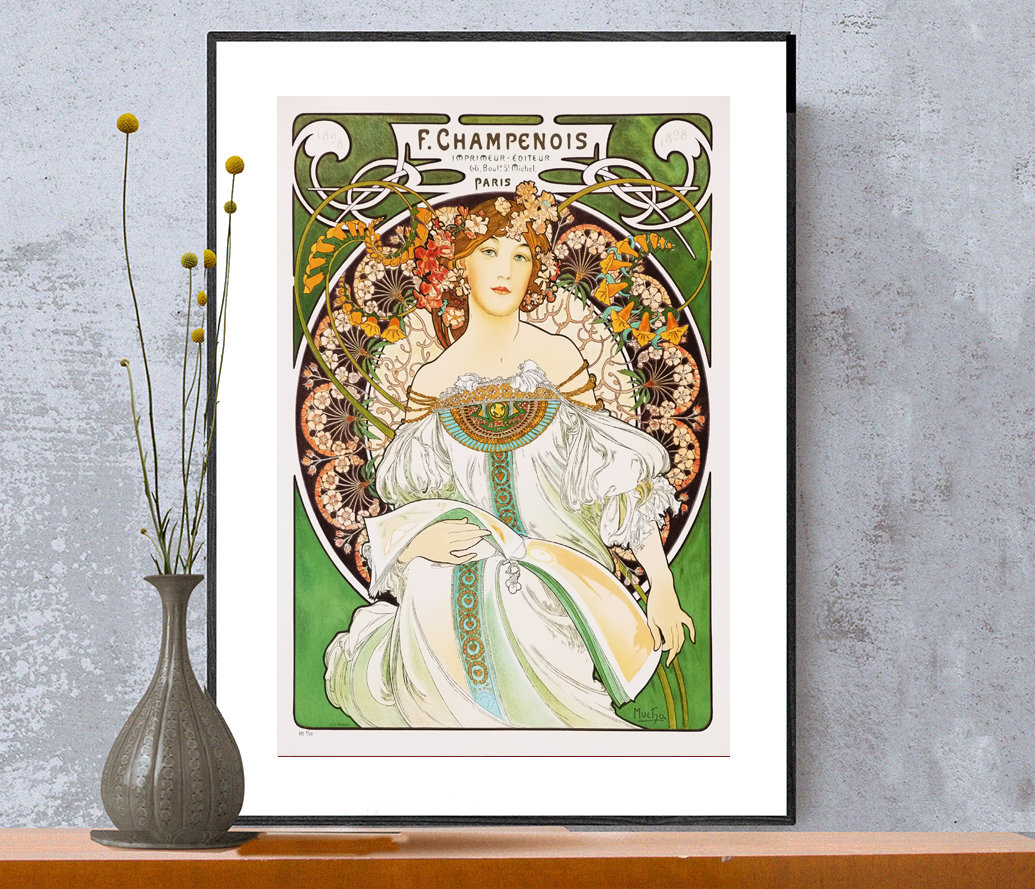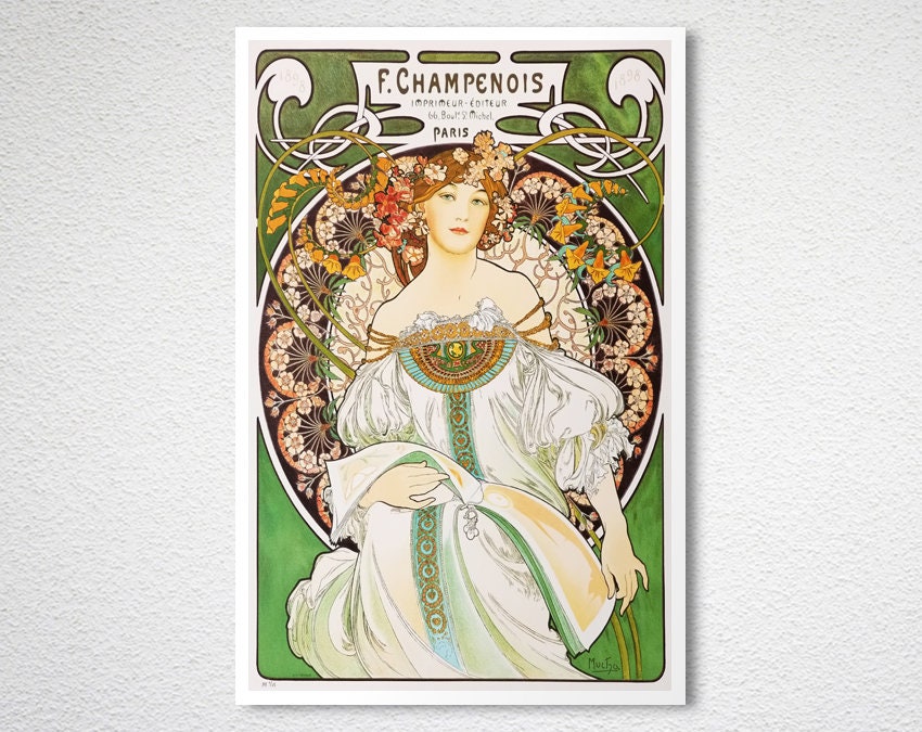 F. Champenois by Alphonse Mucha, Fine Art Print, Vintage Poster, Decorative Artwork, Figurative Décor, Art Nouveau Poster, Café Wall Décor
