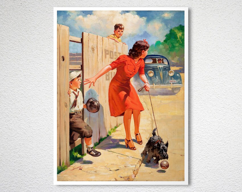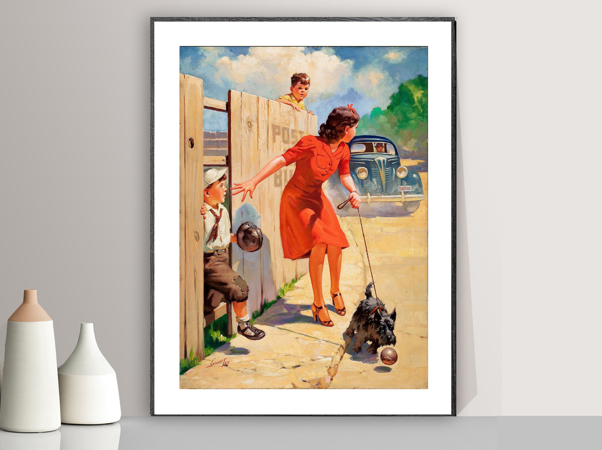 Car Approaching by Raymond James Stuart, Fine Art Print, Figurative Poster, American Wall Art, Woman Painting, Children Wall Décor