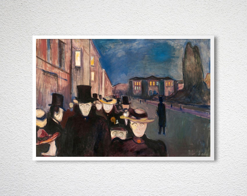 Evening on Karl Johan Street by Edvard Munch Fine Art Print - Poster Paper or Canvas Print