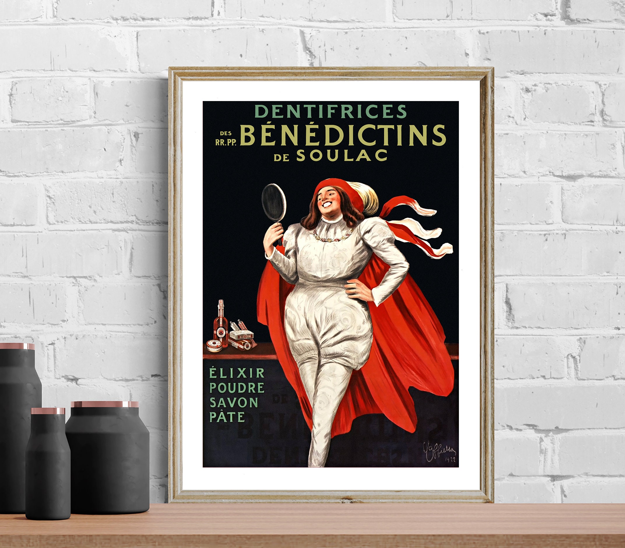 Vintage Dentifrices Benedictins de Soulac Advertisement (1920) Art Print - Reproduction of a Retro Artwork, Decorative Purposes Wall Decor - Poster Paper or Canvas Print
