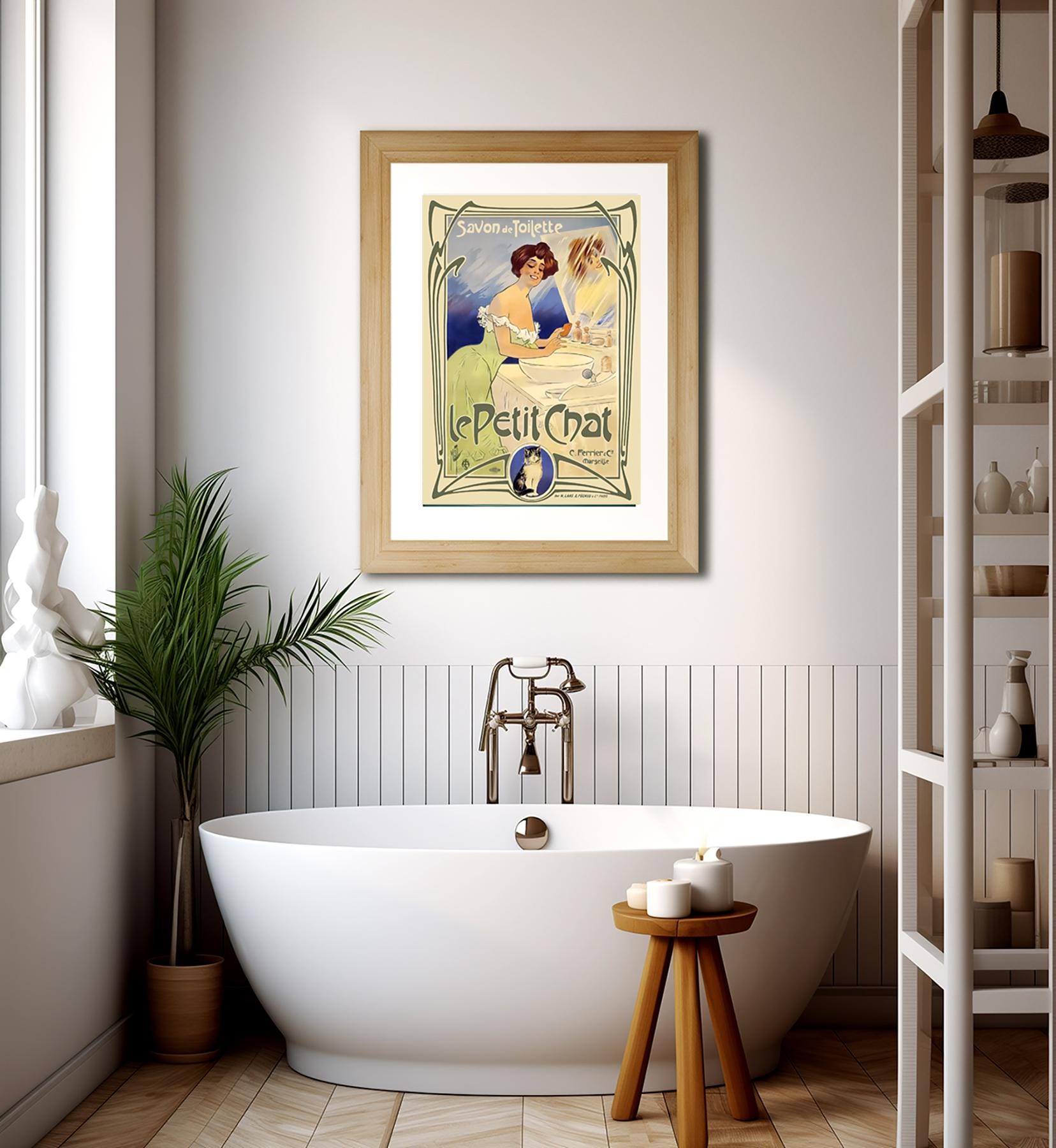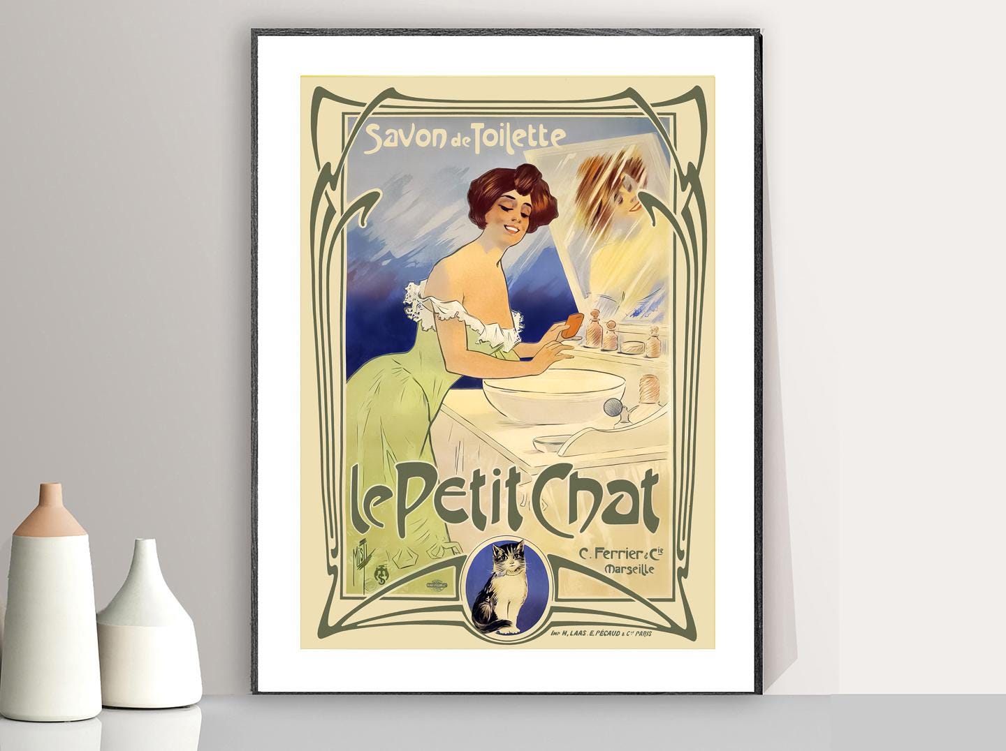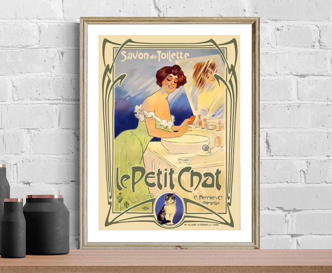 Vintage French Cat Poster: Le Petit Chat Savon Print, Bathroom Decor