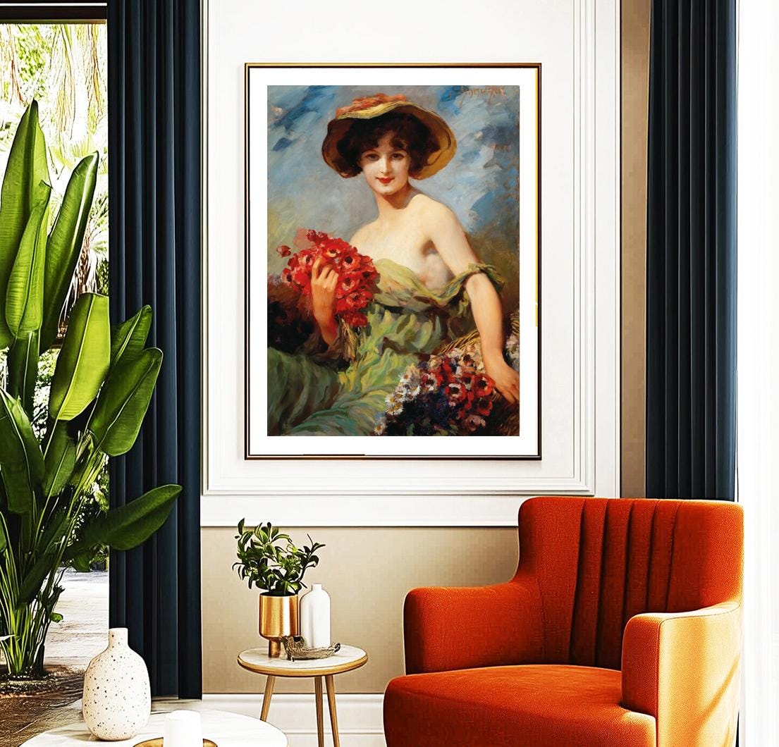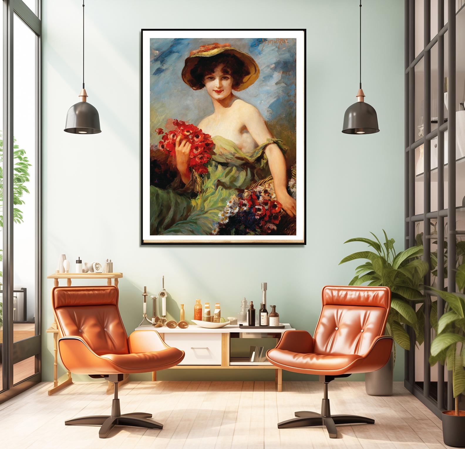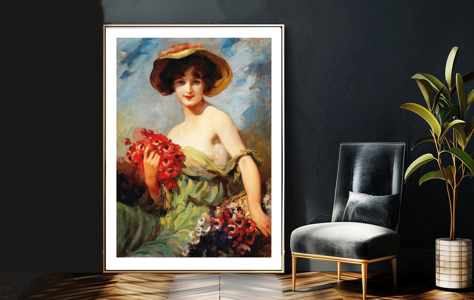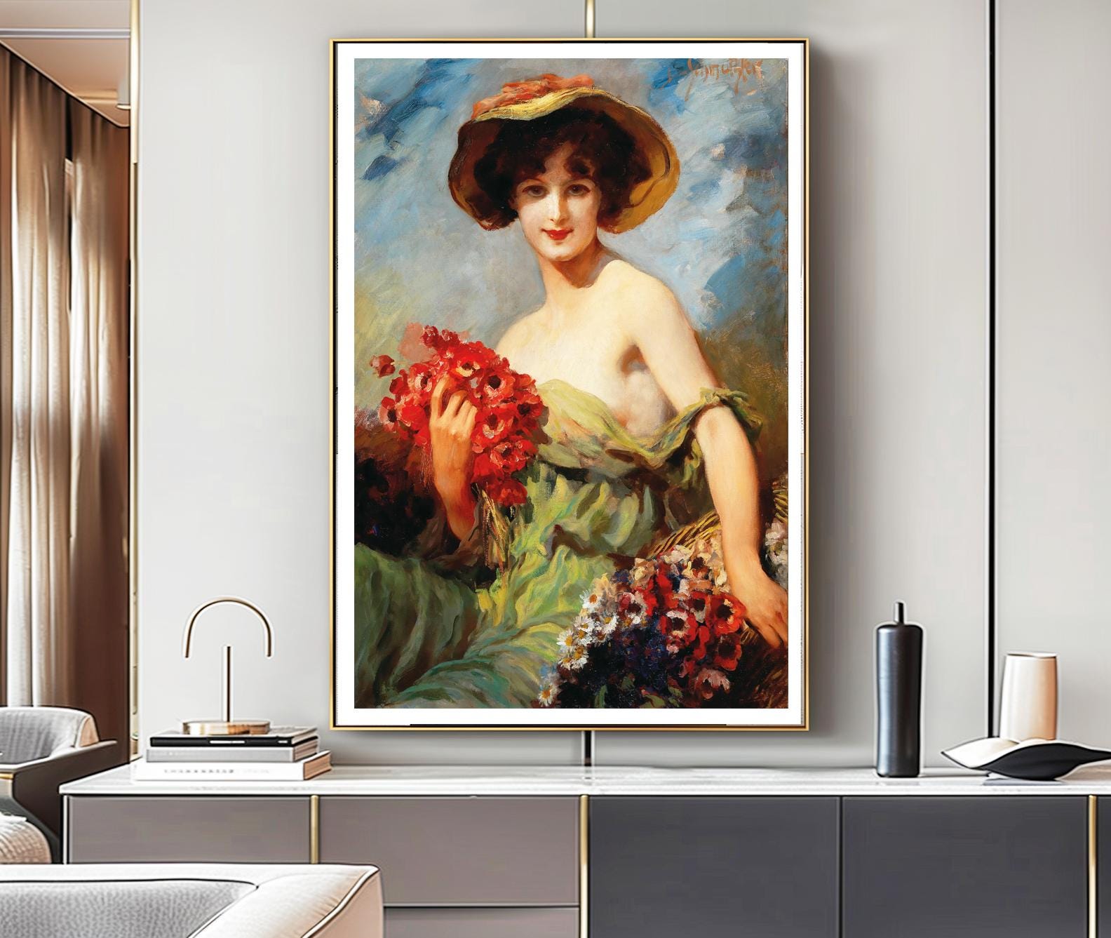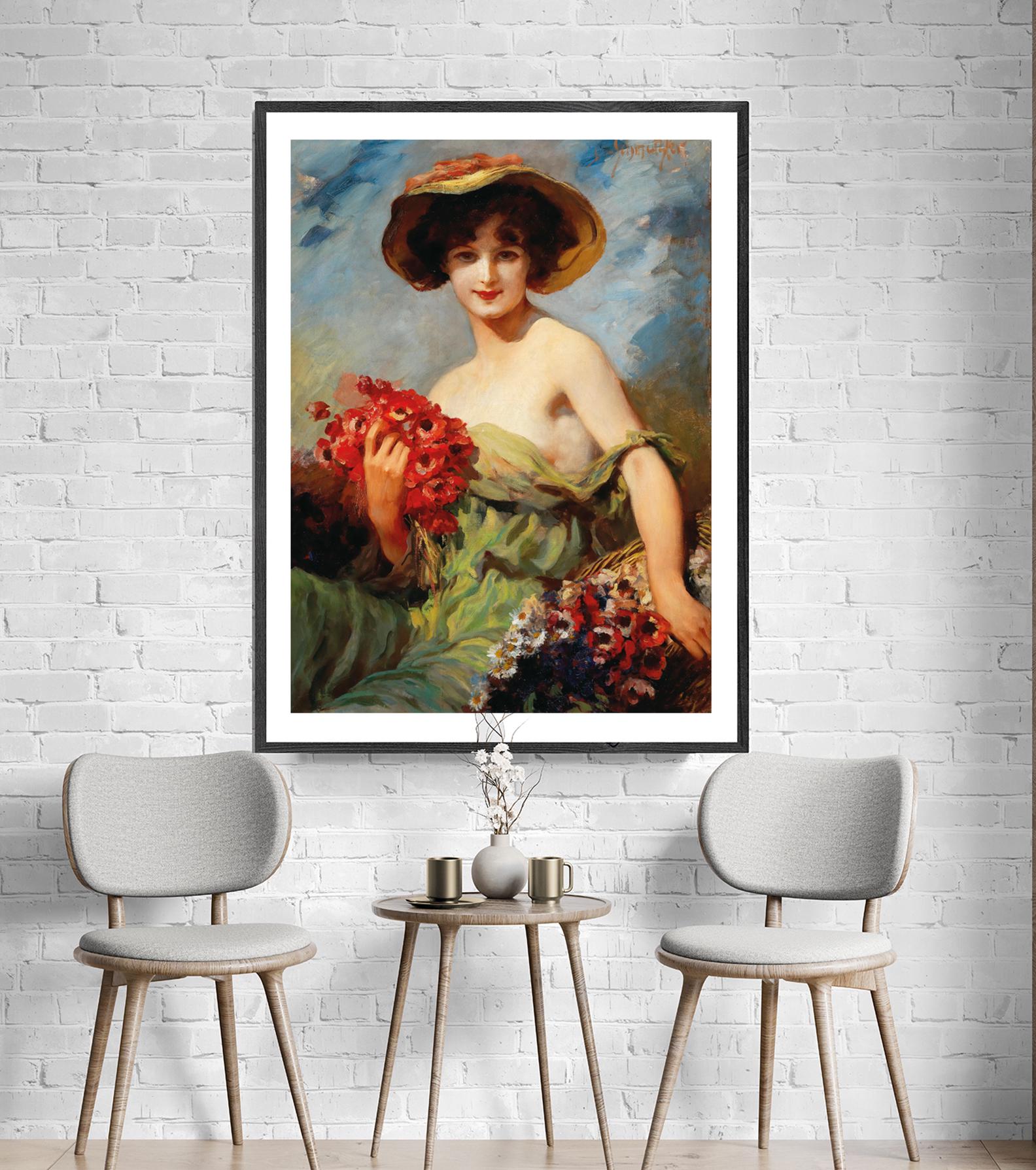 A Young Beauty with Poppies by Leopold Schmutzler Fine Art Print - Poster Paper or Canvas Print / Gift Idea / Wall Decor