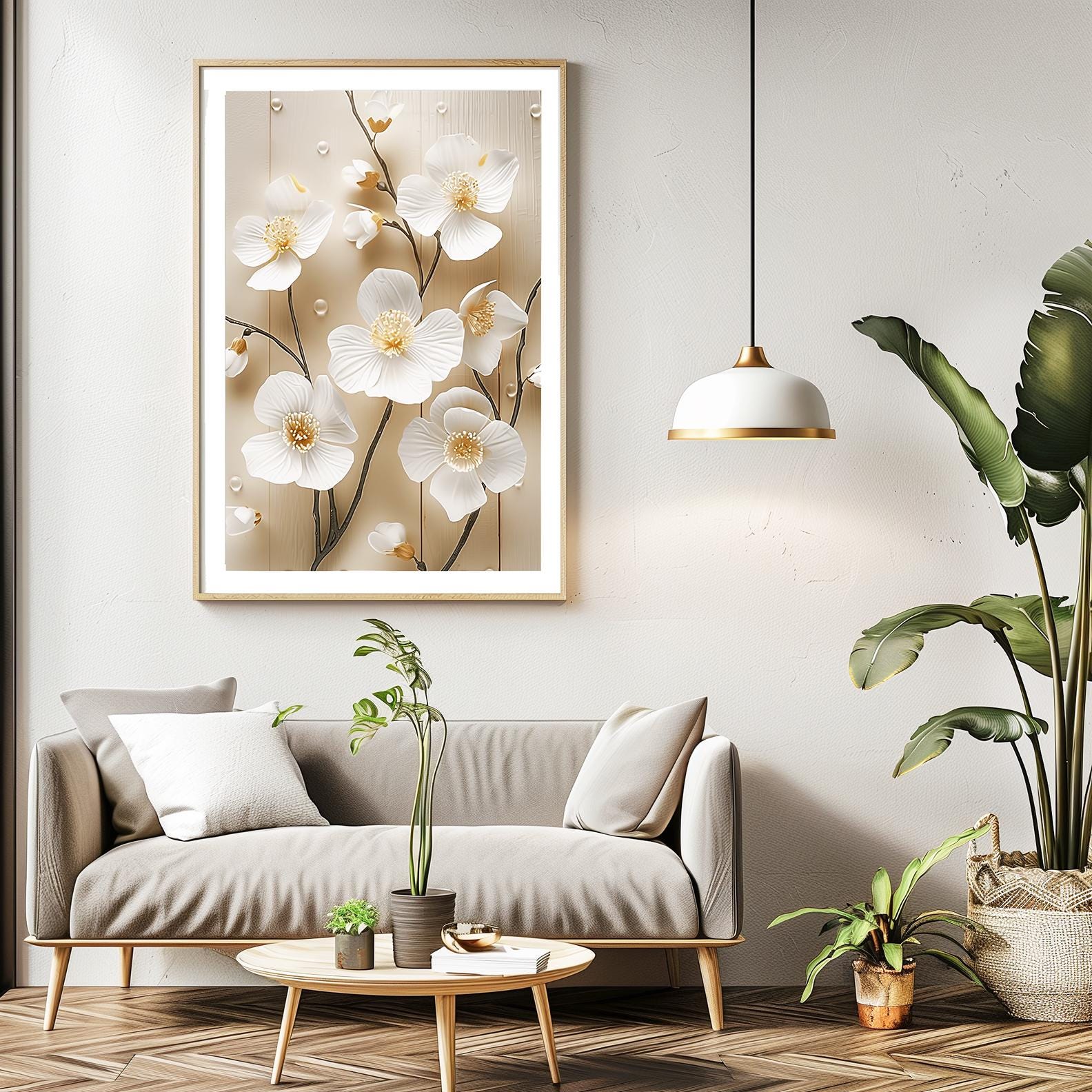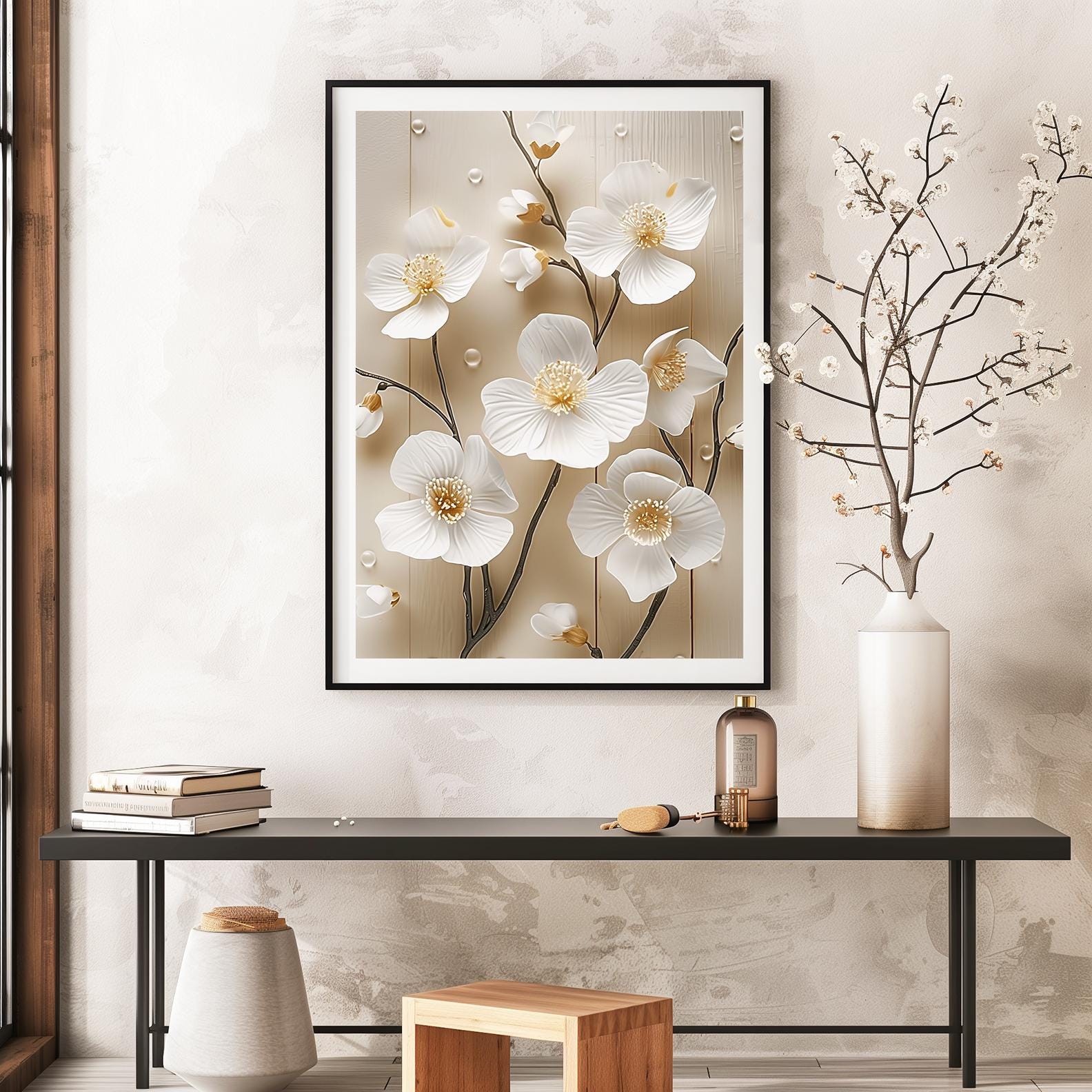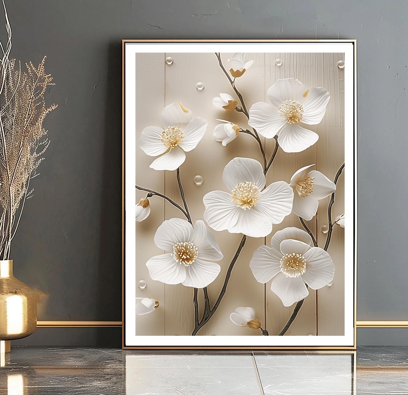 White Flowers Decorative Fine Art Print Fine Art Print - Poster Paper or Canvas Print / Gift Idea