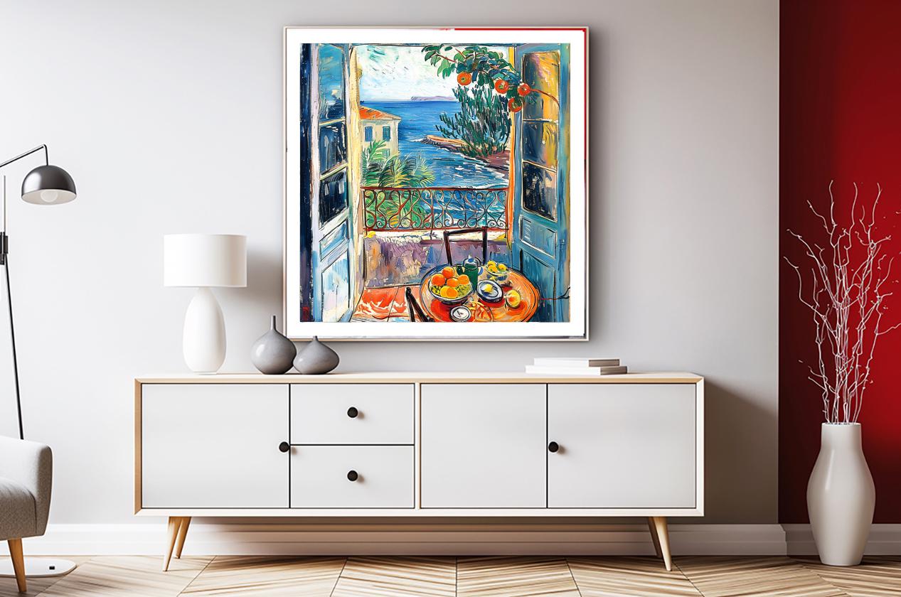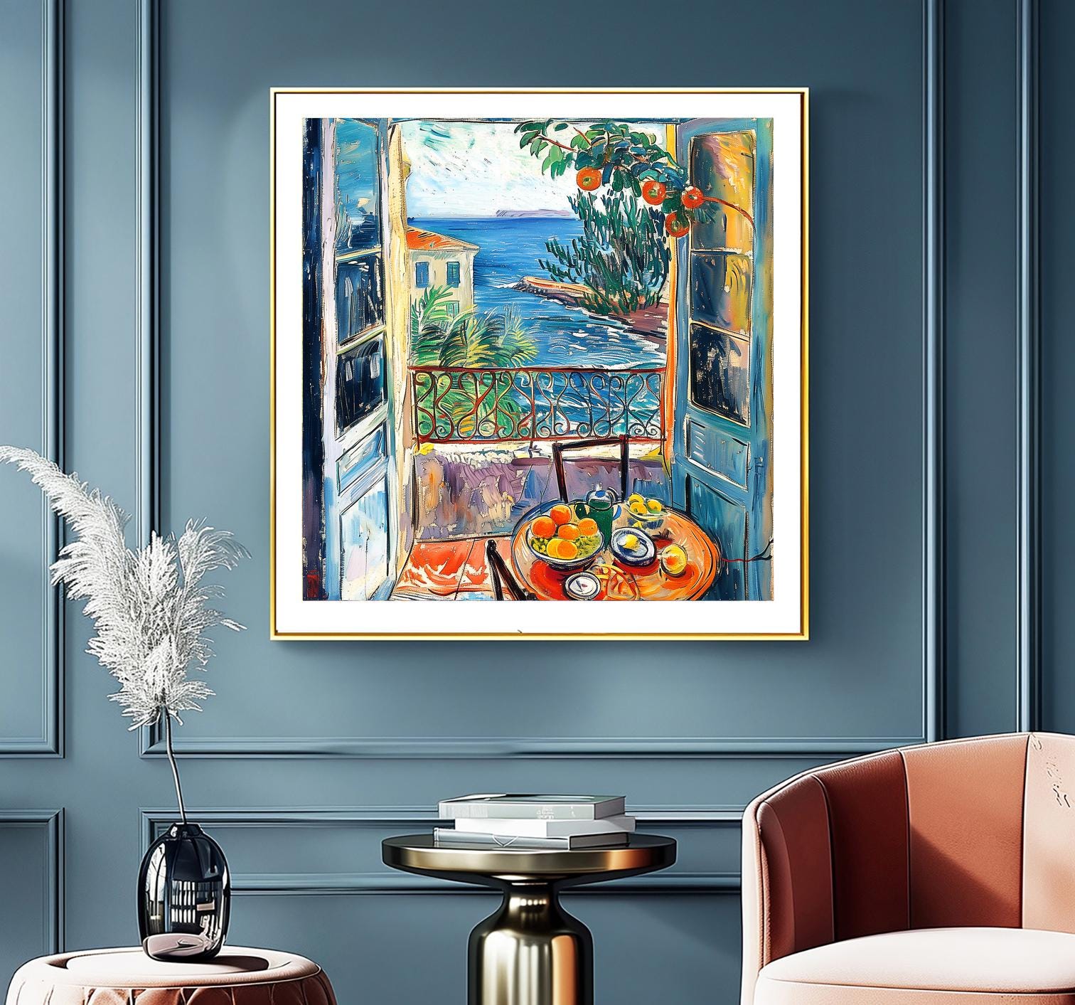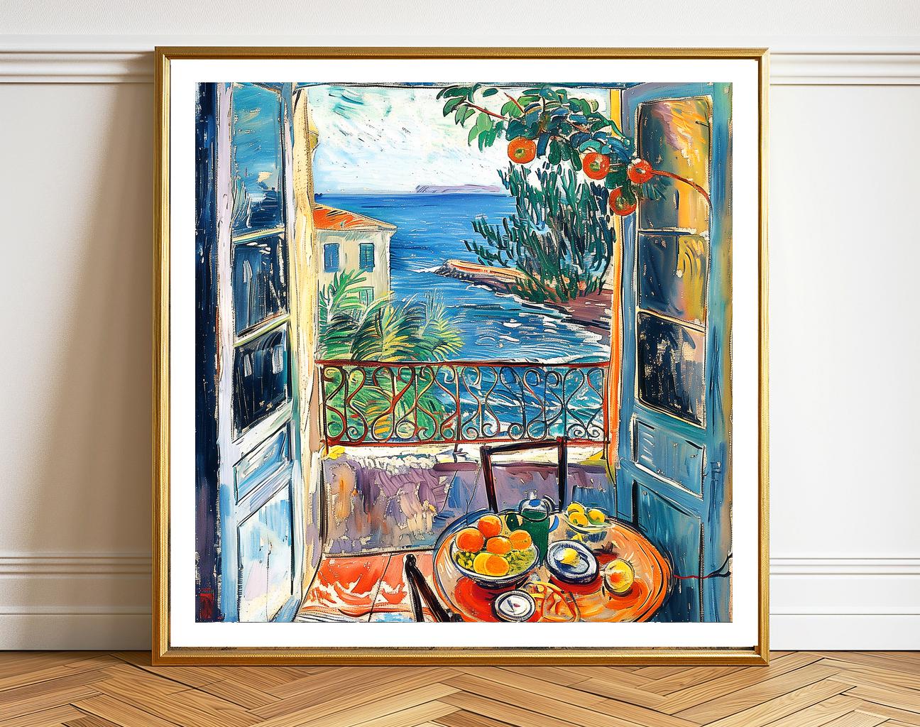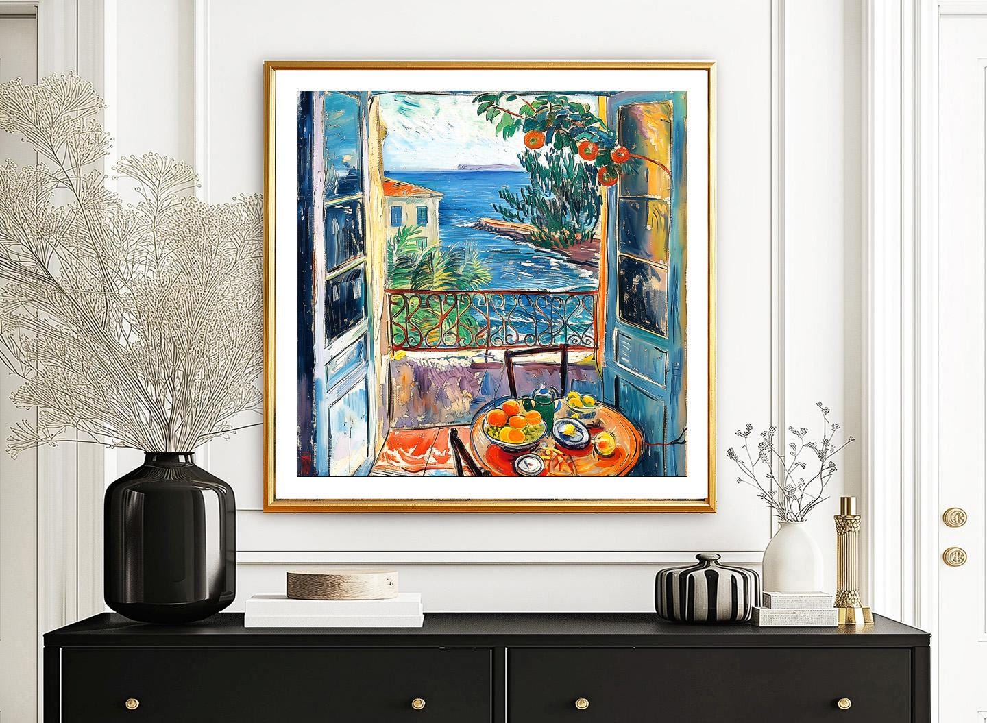 Mediterranean Balcony View Art Print: Coastal Wall Decor