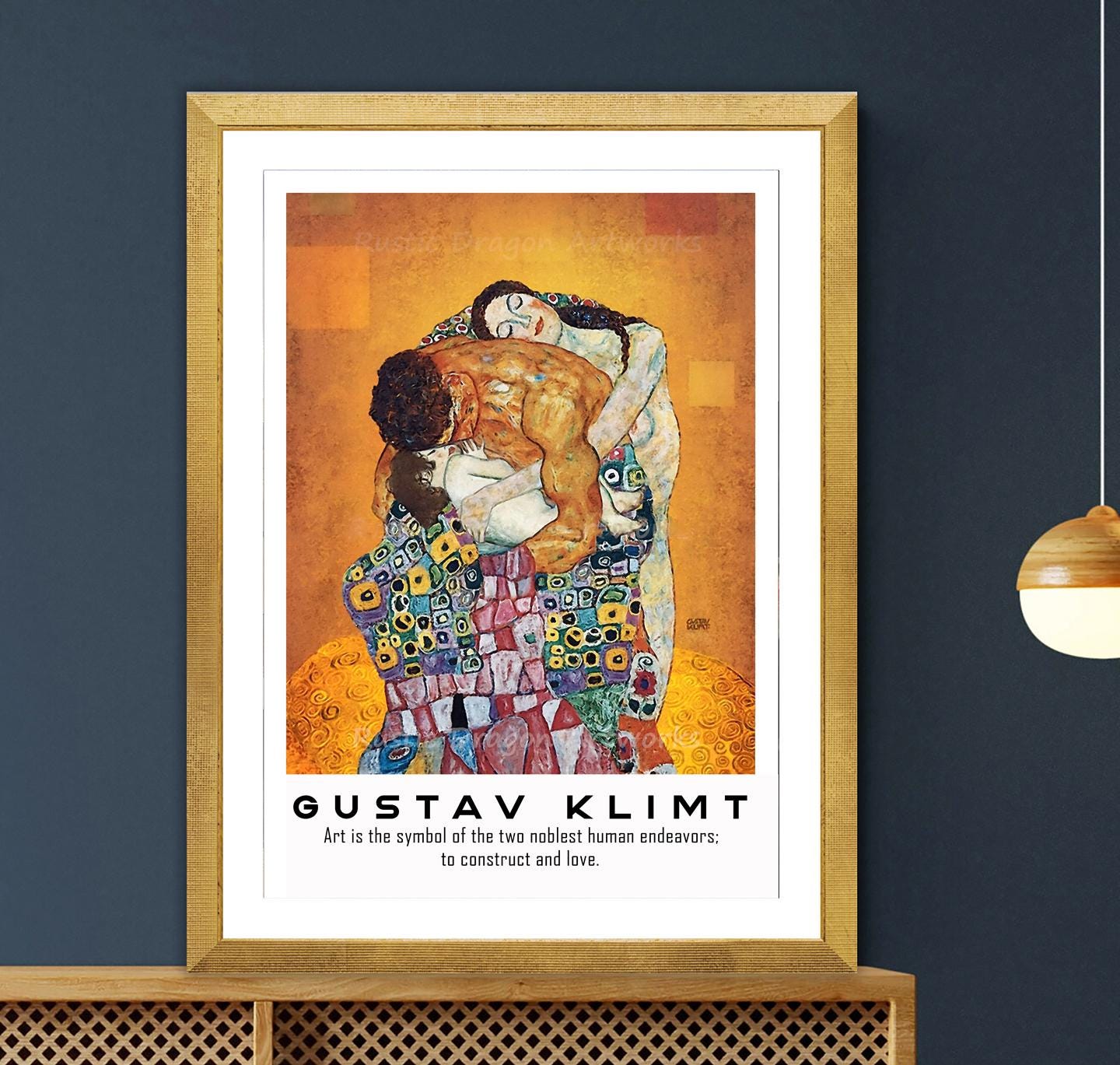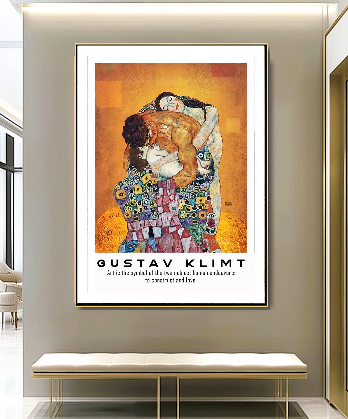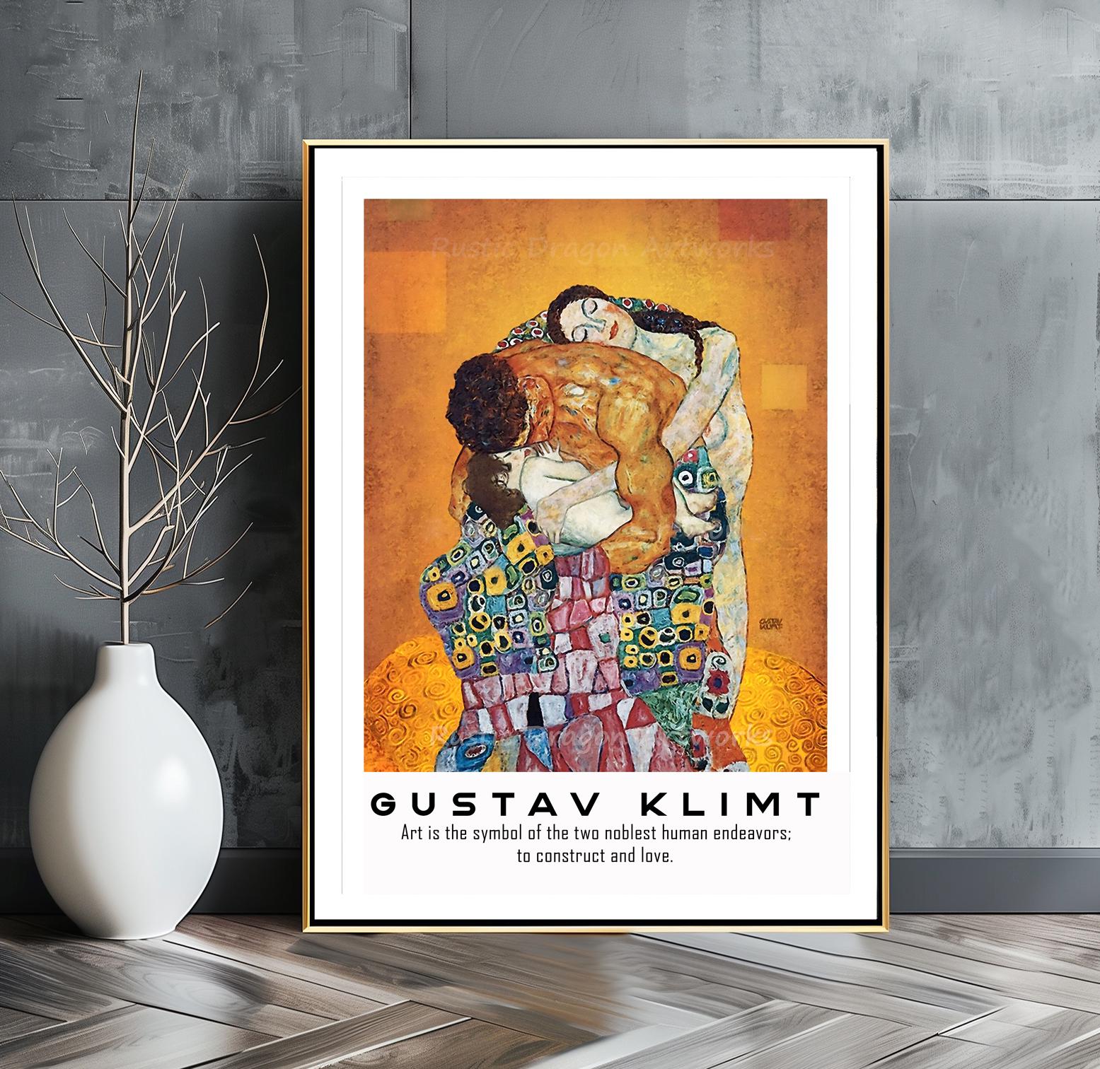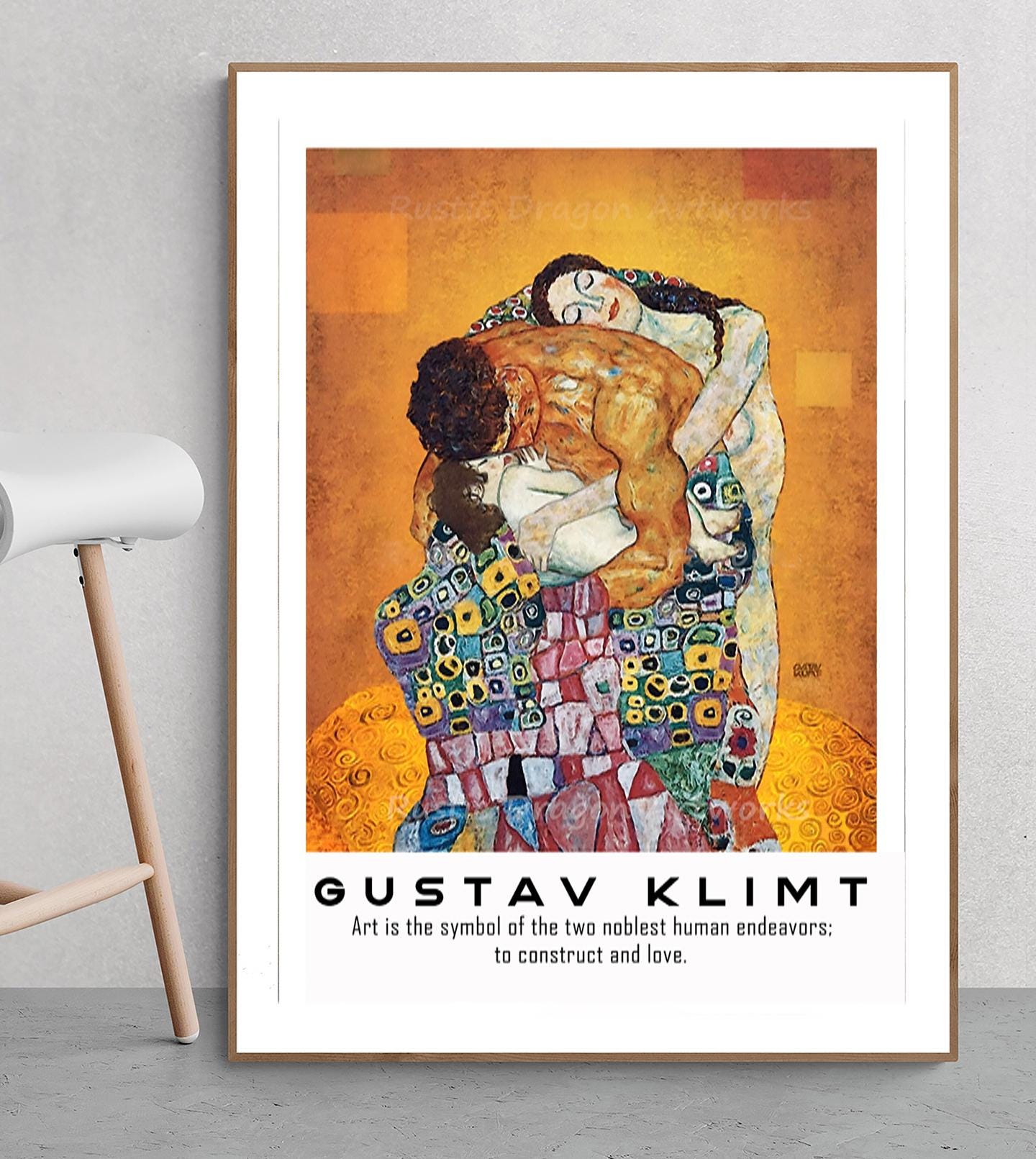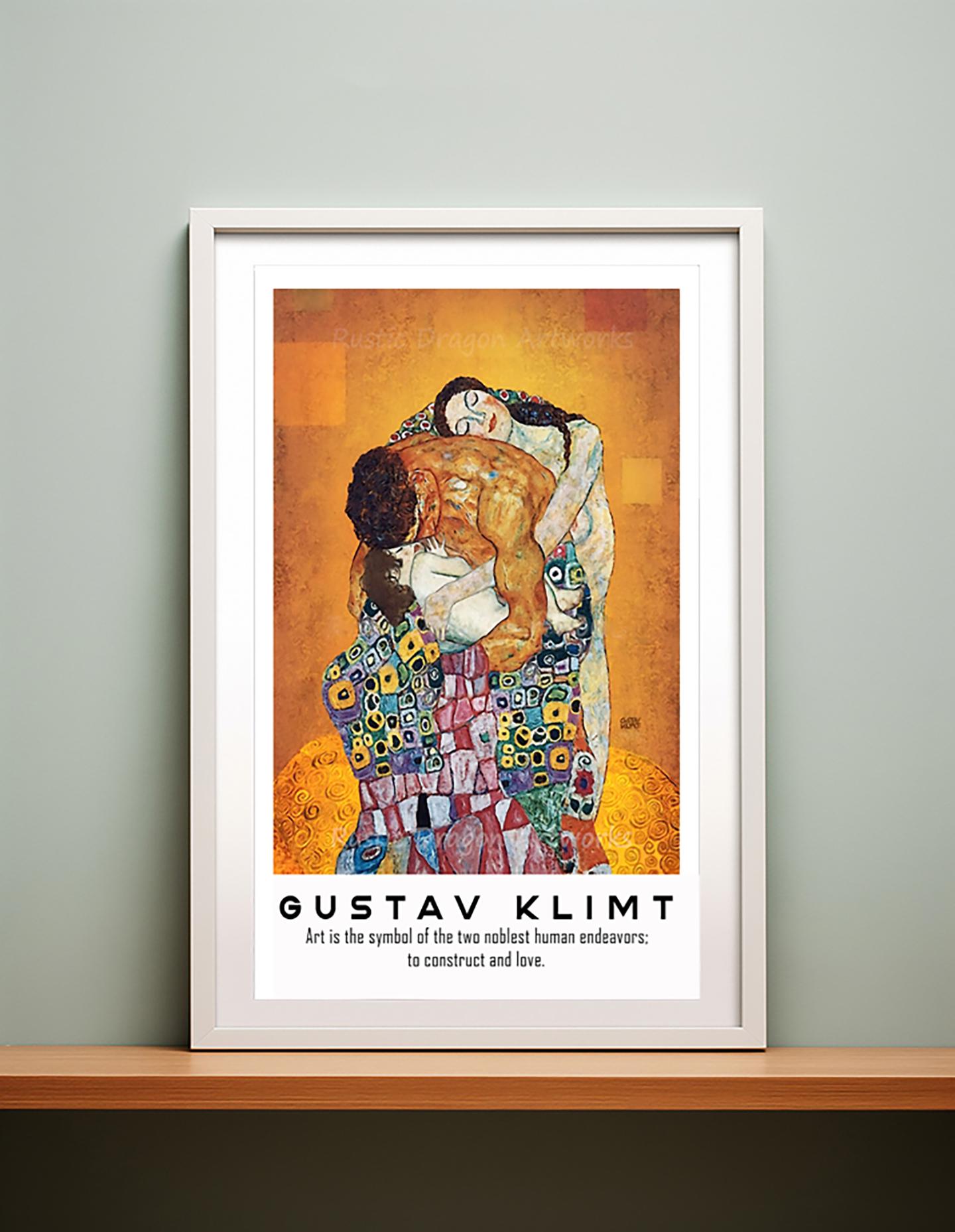 The Family by Gustav Klimt with Gustav Klimt Quote ( Art is the symbol of the two noblest human endeavors ; to construct and love) Fine Art Print - Family Love Artwork / Togetherness Gift Idea / Modern Wall Decor- Poster Paper, Canvas Premium Giclee Print