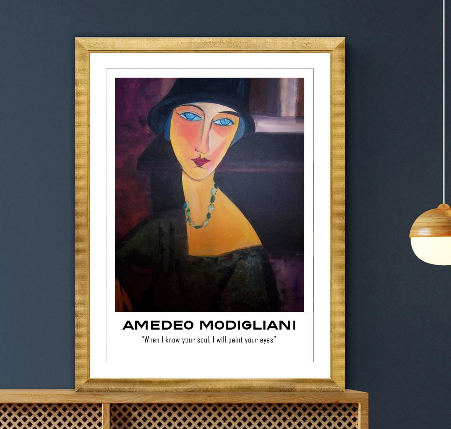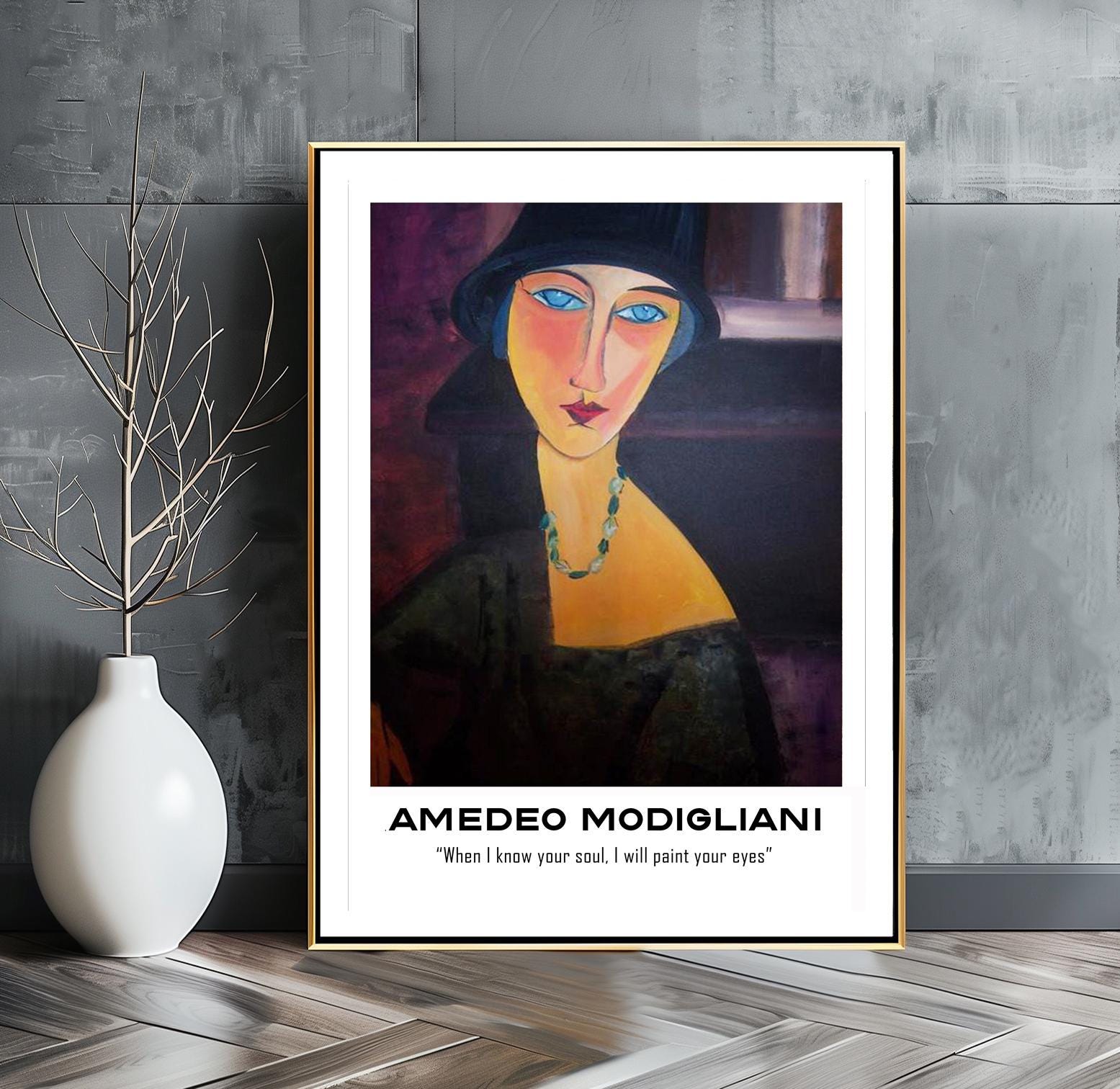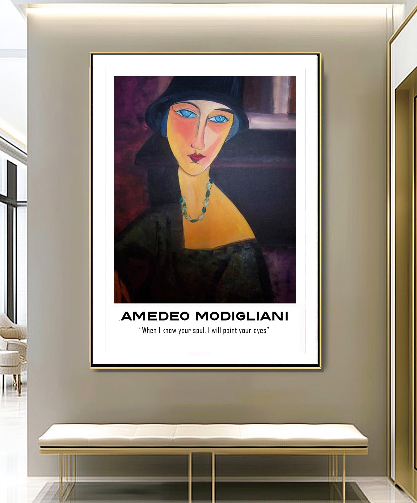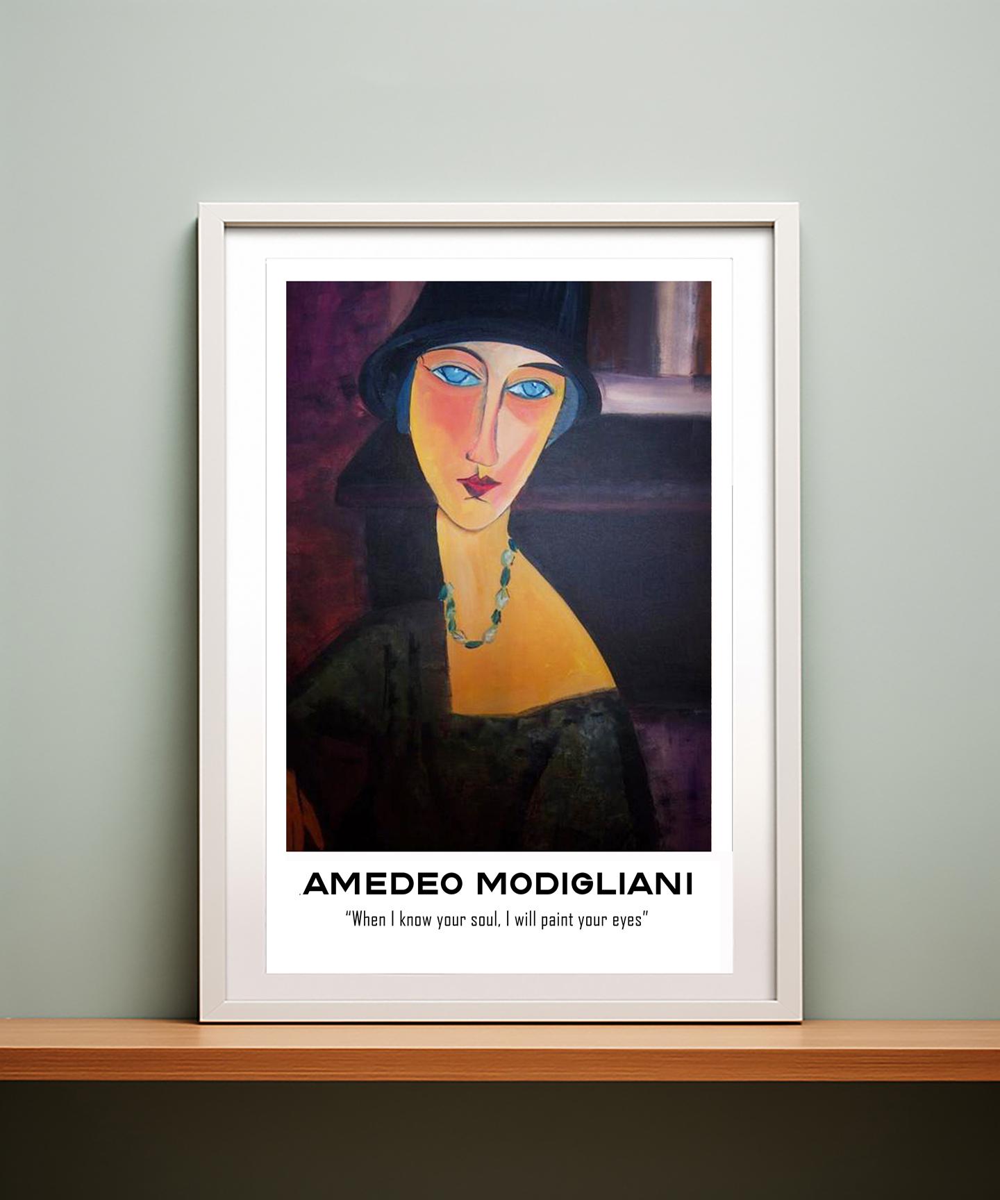 Woman with Blue Eyes by Amedeo Modigliani with Amedeo Modigliani Quote (When I know your soul, I will paint your eyes) Fine Art Print - Poster Paper or Canvas Print / Gift Idea / Wall Decor