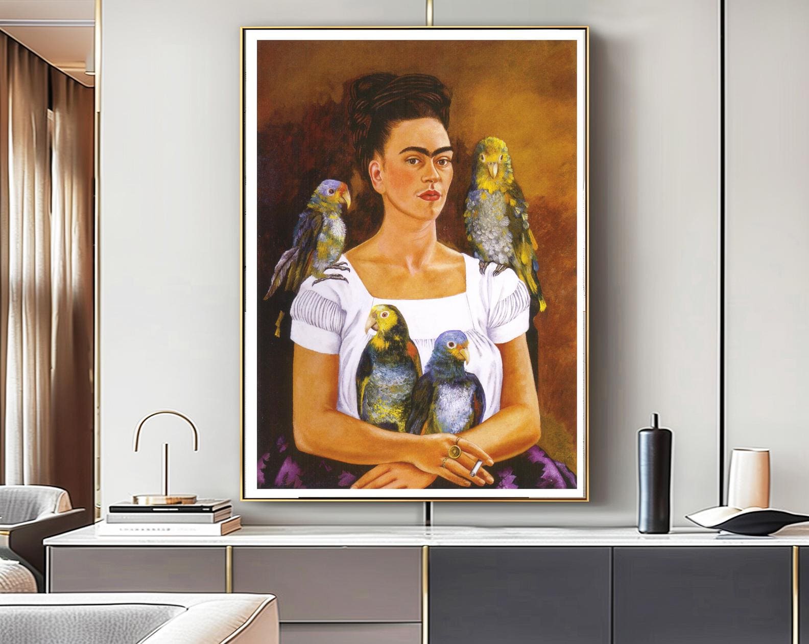 Frida Kahlo 'Me and My Parrots' Art Print: Mexican Modernism, Symbolic Wall Decor