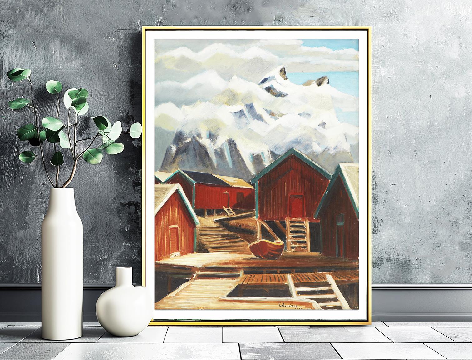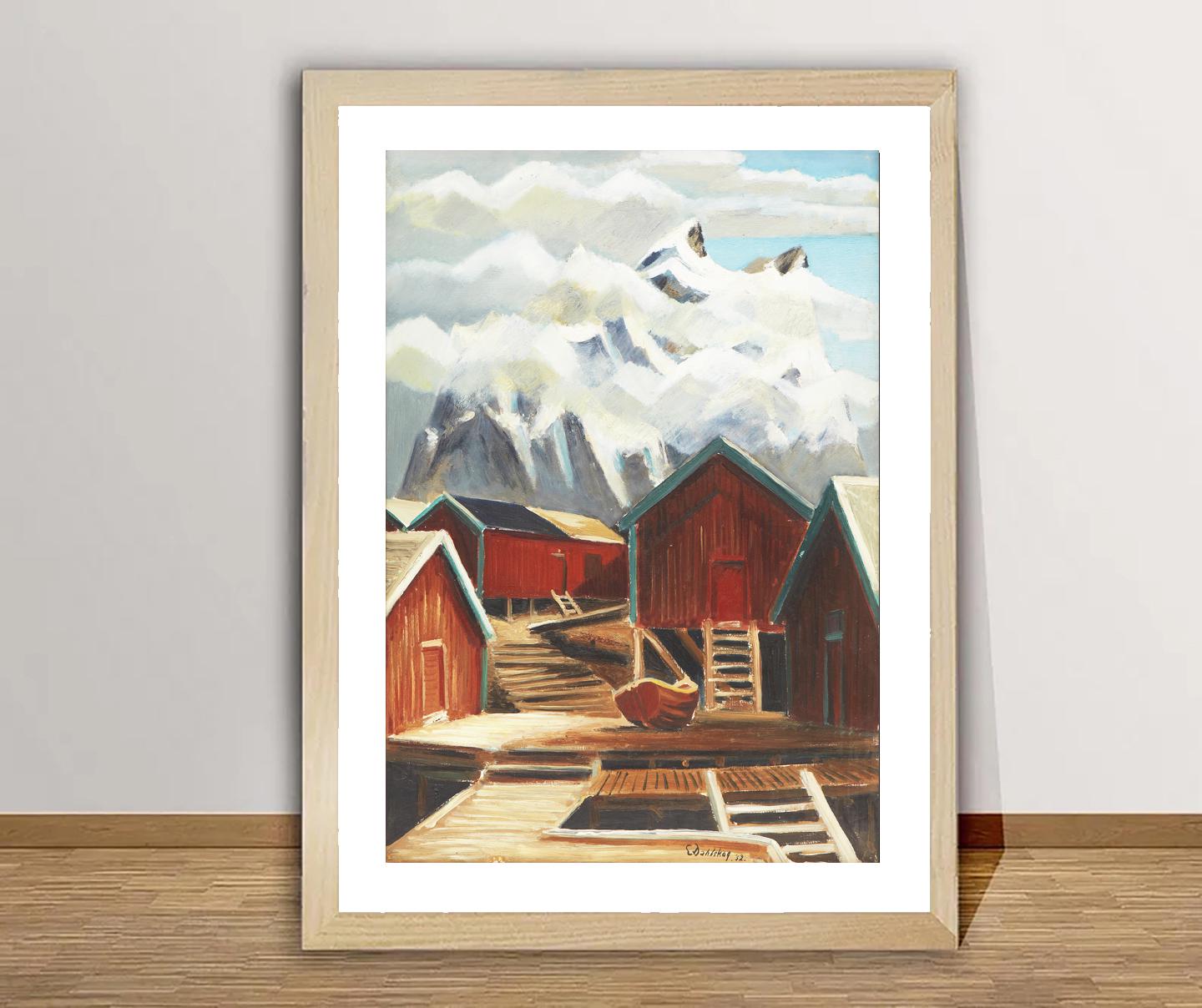 Sjöbodar by Ewald Dahlskog Fine Art Print - - Boathouses Painting / Gift Idea / Nautical Wall Art