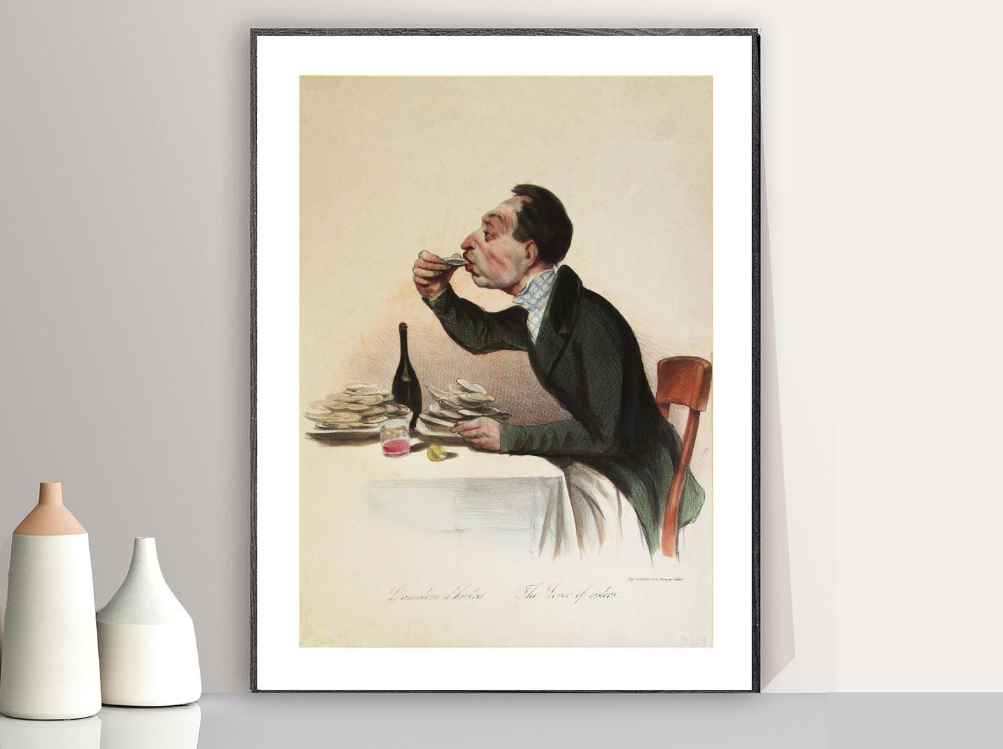 Daumier Oyster Eater Print: Humorous Food & Drink Satire