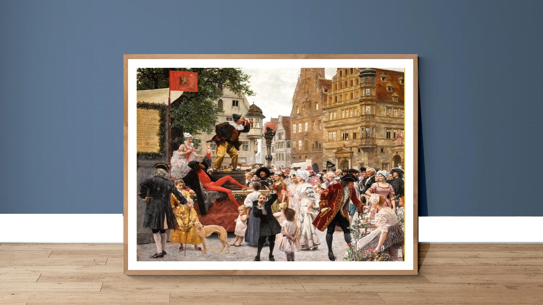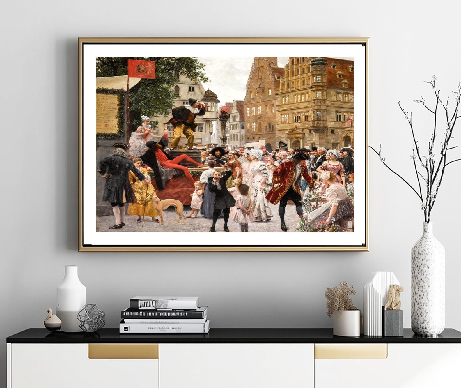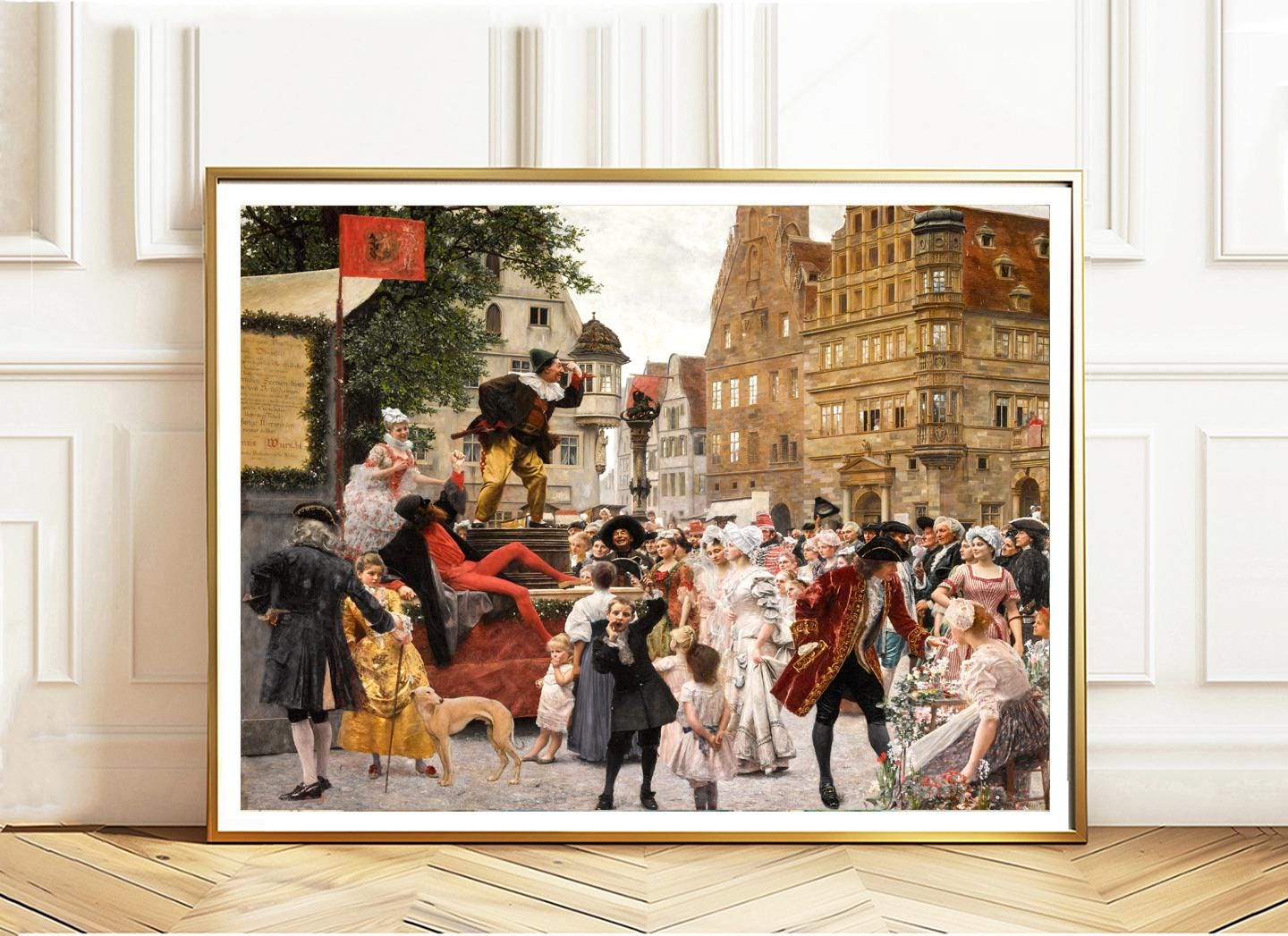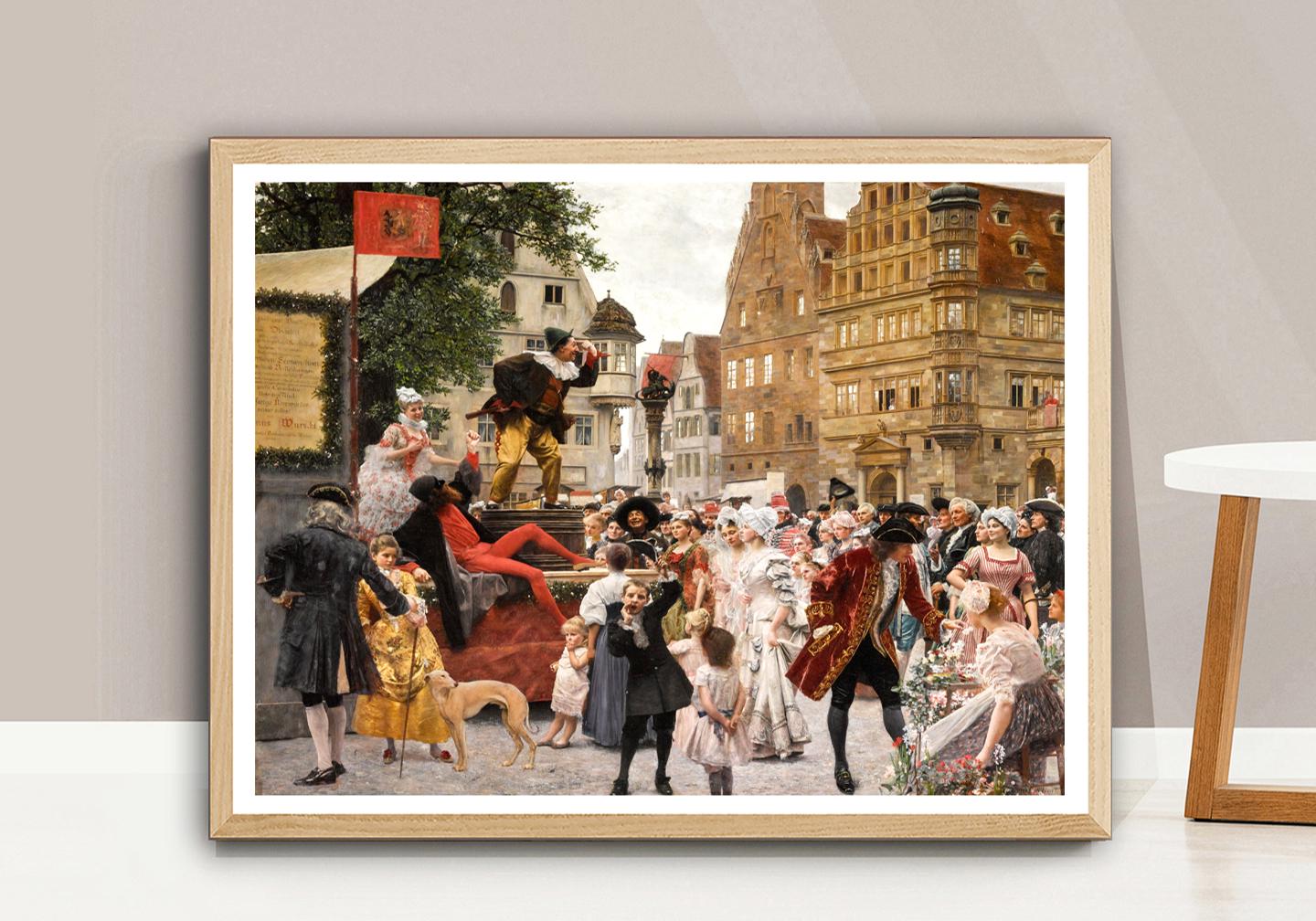 Hanswurst Delivering an Impromptu Performance in Rothenburg by Gustav and Ernst Klimt Fine Art Print - Poster Paper, Canvas Print