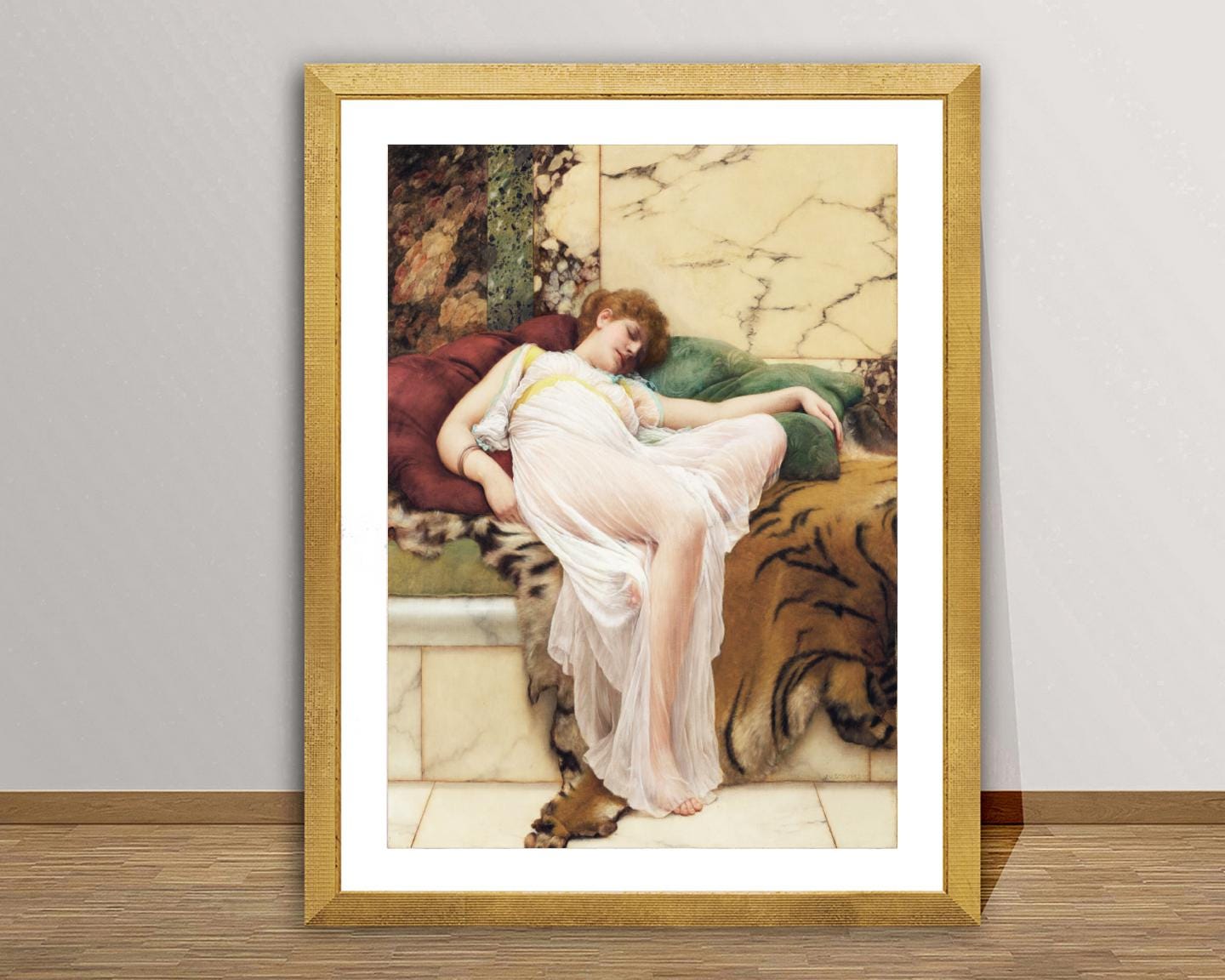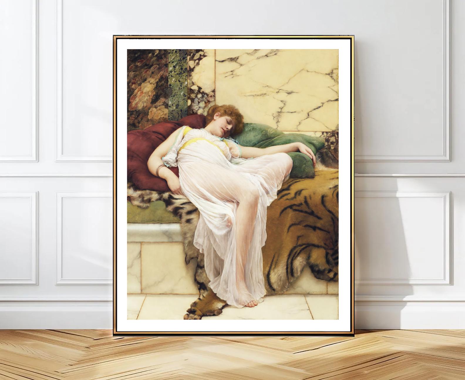 A Siesta by John William Godward Fine Art Print - Figurative Art, Neo Classical Wall Decor