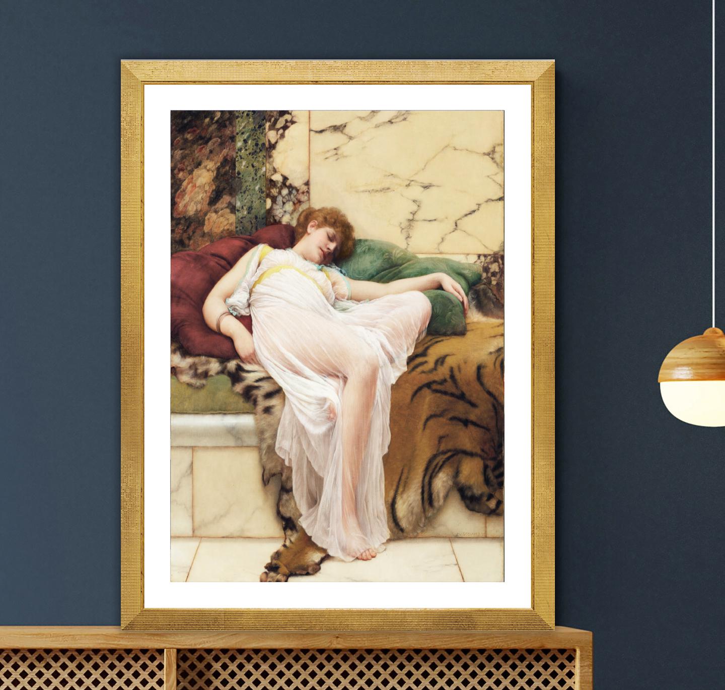 A Siesta by John William Godward Fine Art Print - Poster Paper or Canvas Print