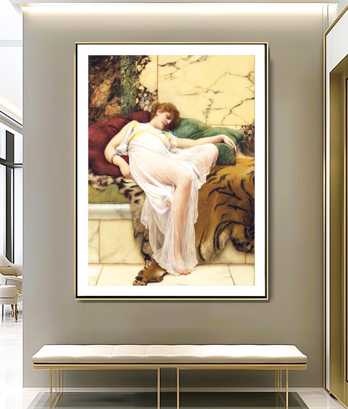 Printed on high quality paper, cotton canvas or adhesive sticker paper. A high quality reproduction of painting of John William Godward. Professional packaging for safe shipping. Natural white border will be added to the image for mounting and framing.