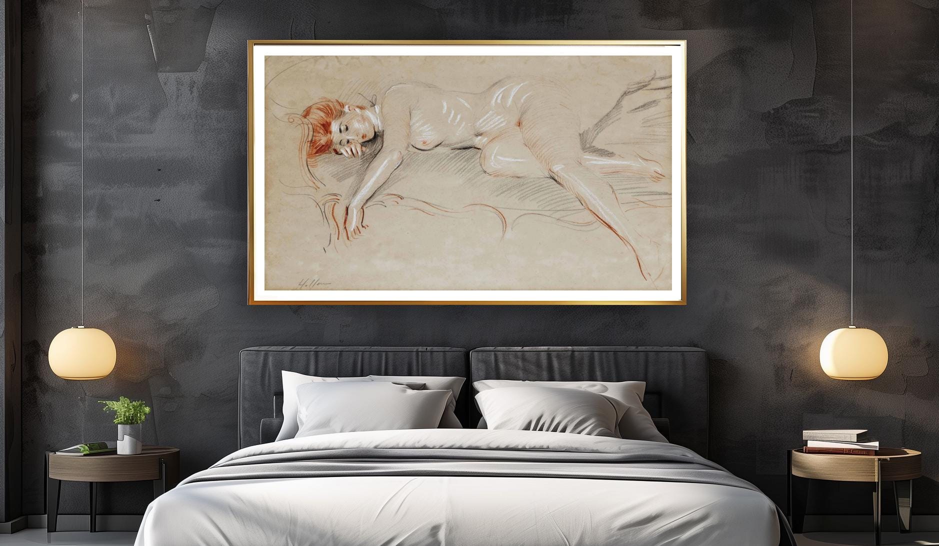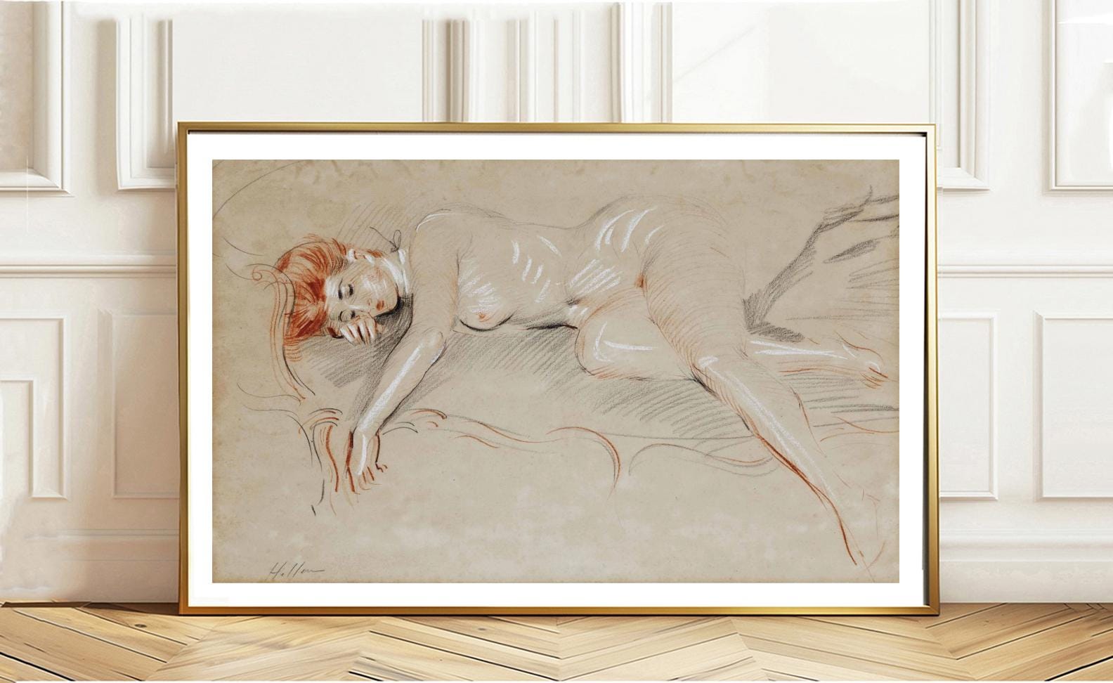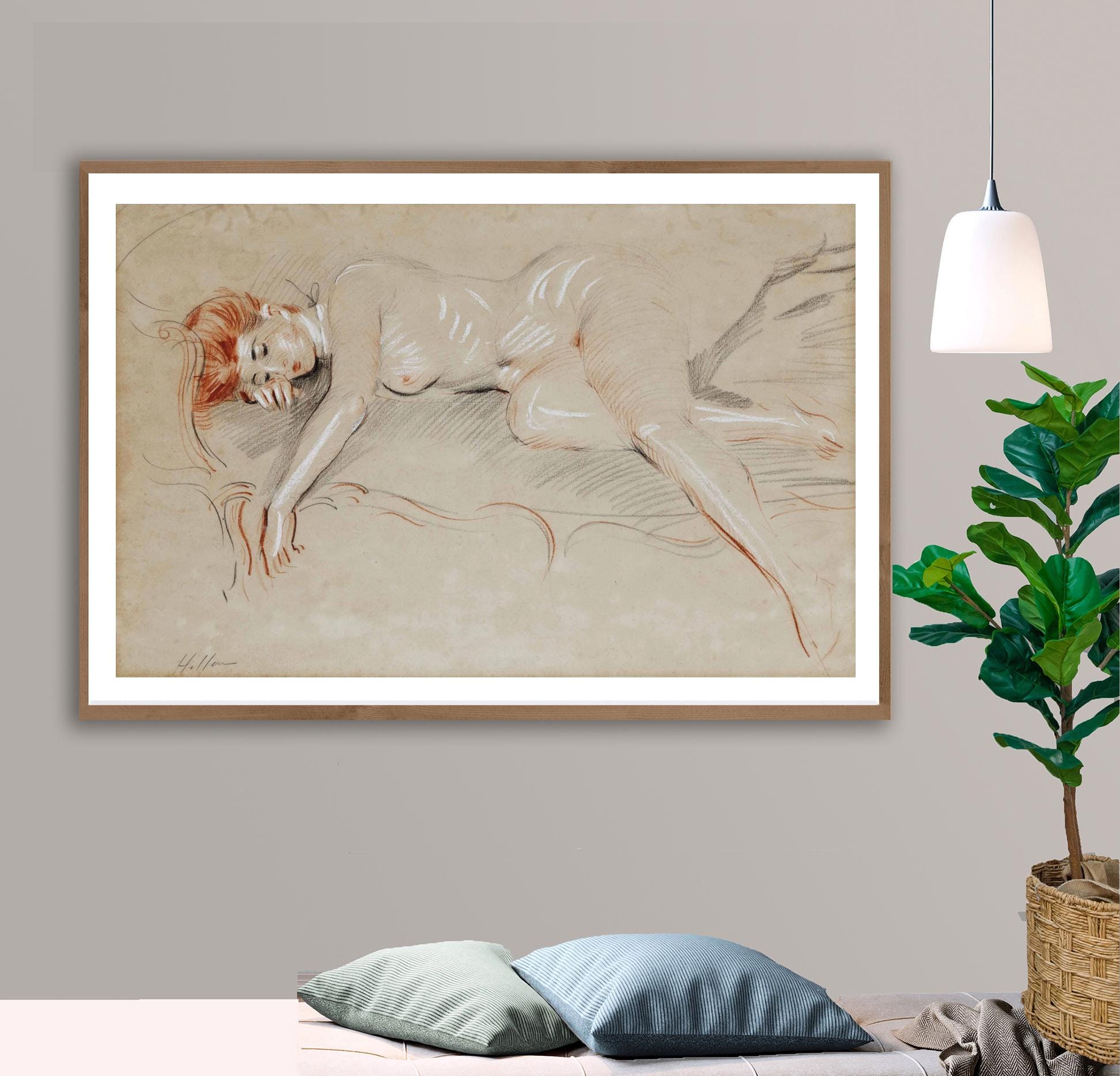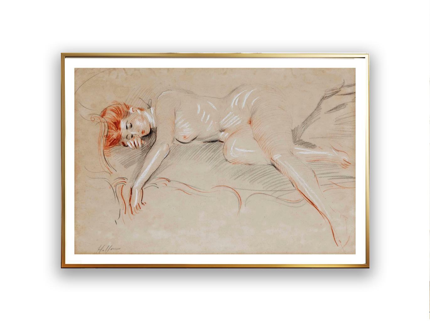 Reclining Woman by Paul Cesar Helleu Fine Art Print - Nude Figurative Painting / Gift Idea / Wall Decor