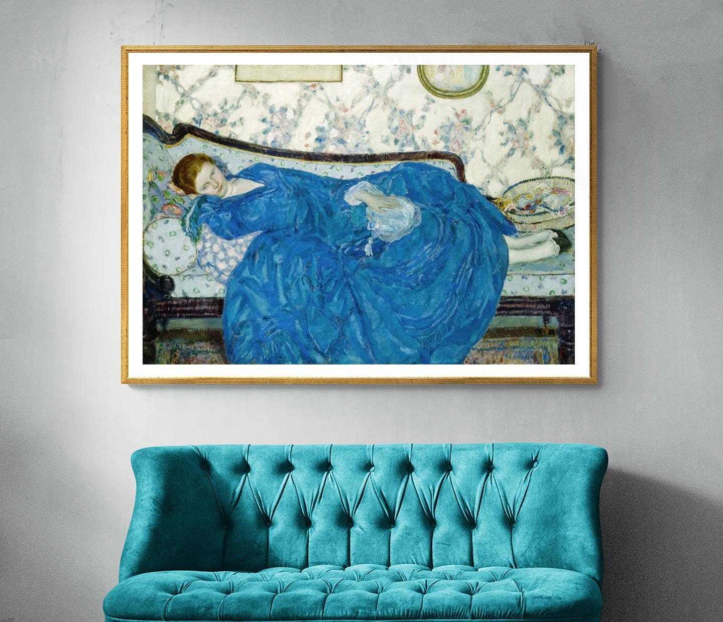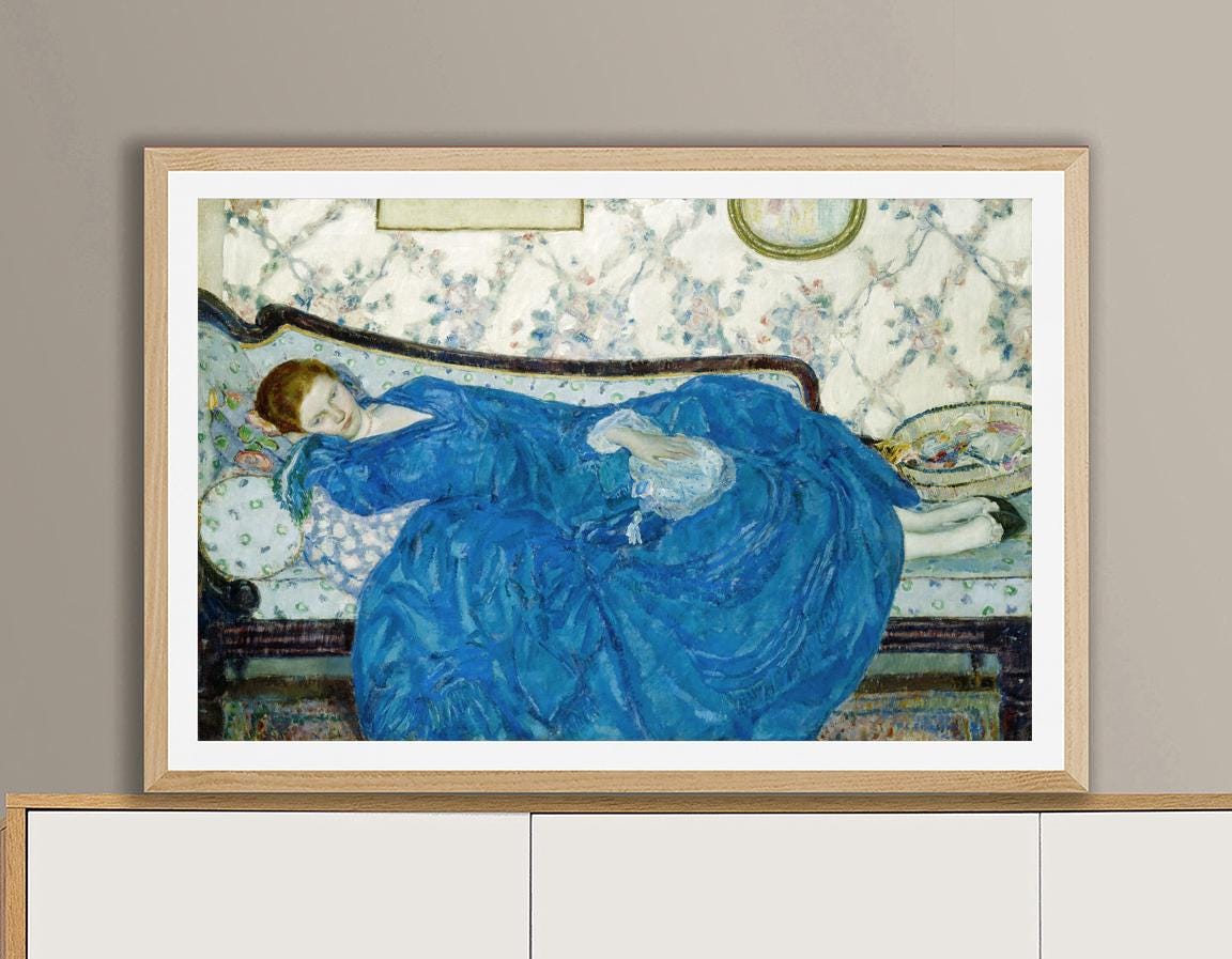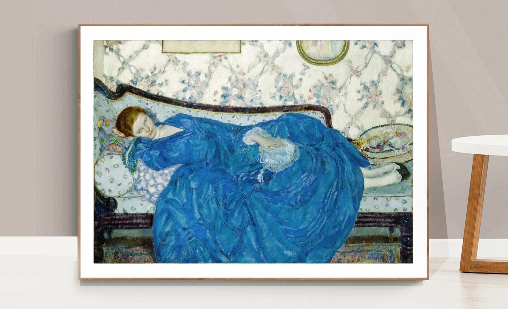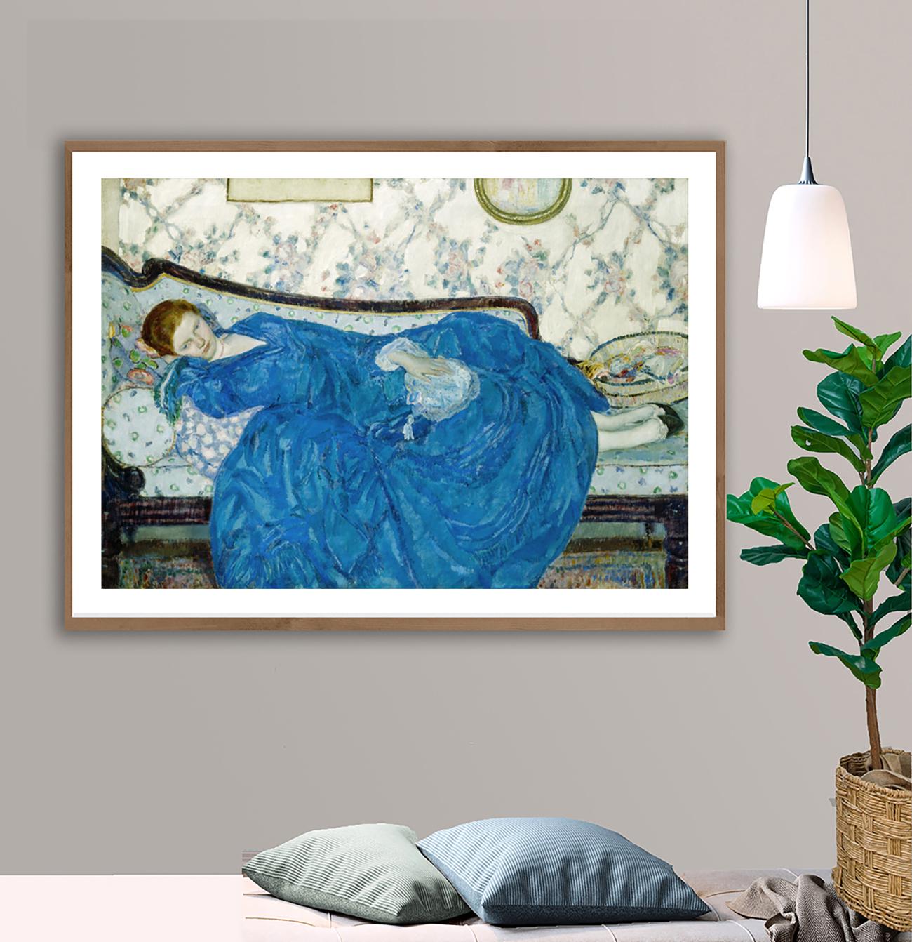The Blue Gown by Frederick Carl Frieseke Fine Art Print - Poster Paper, Canvas Print