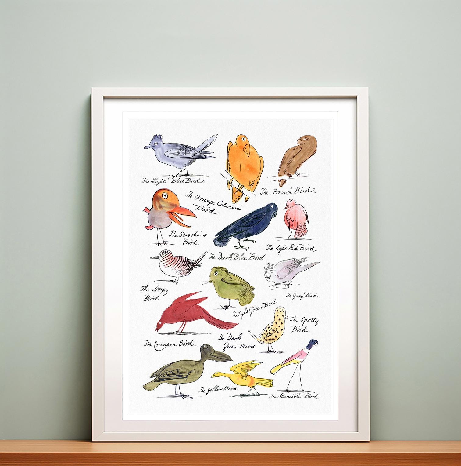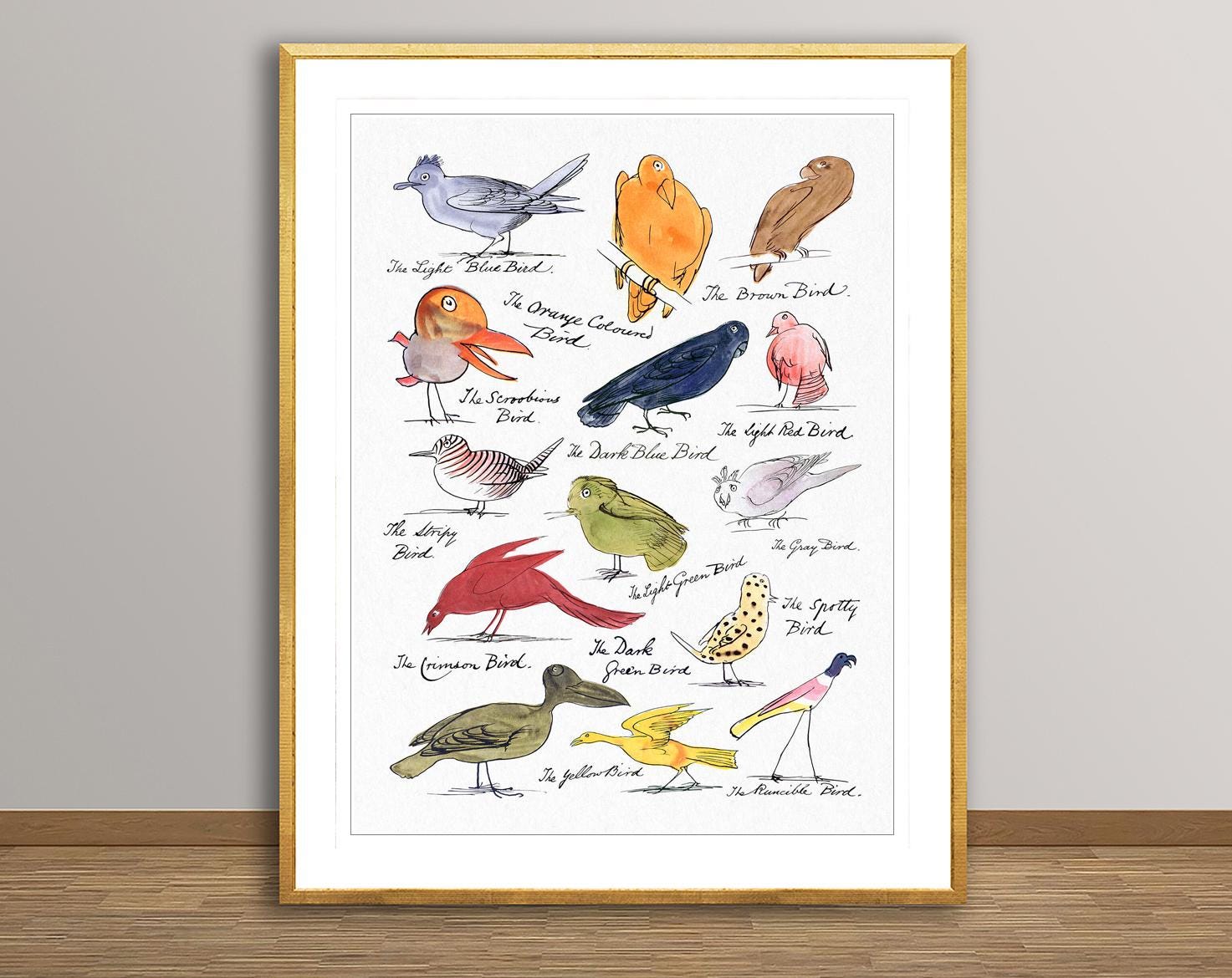 Edward Lear Bird Art Print: Vintage Coloured Birds Compilation