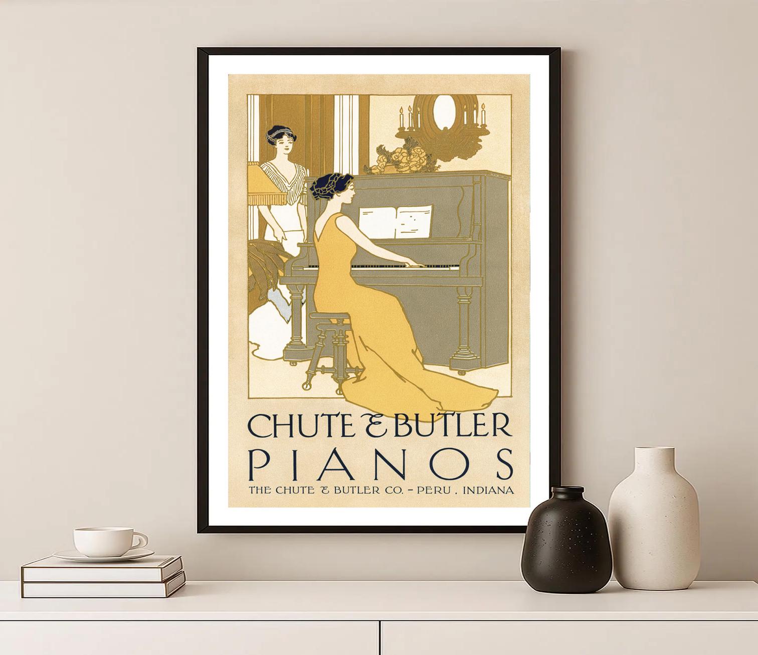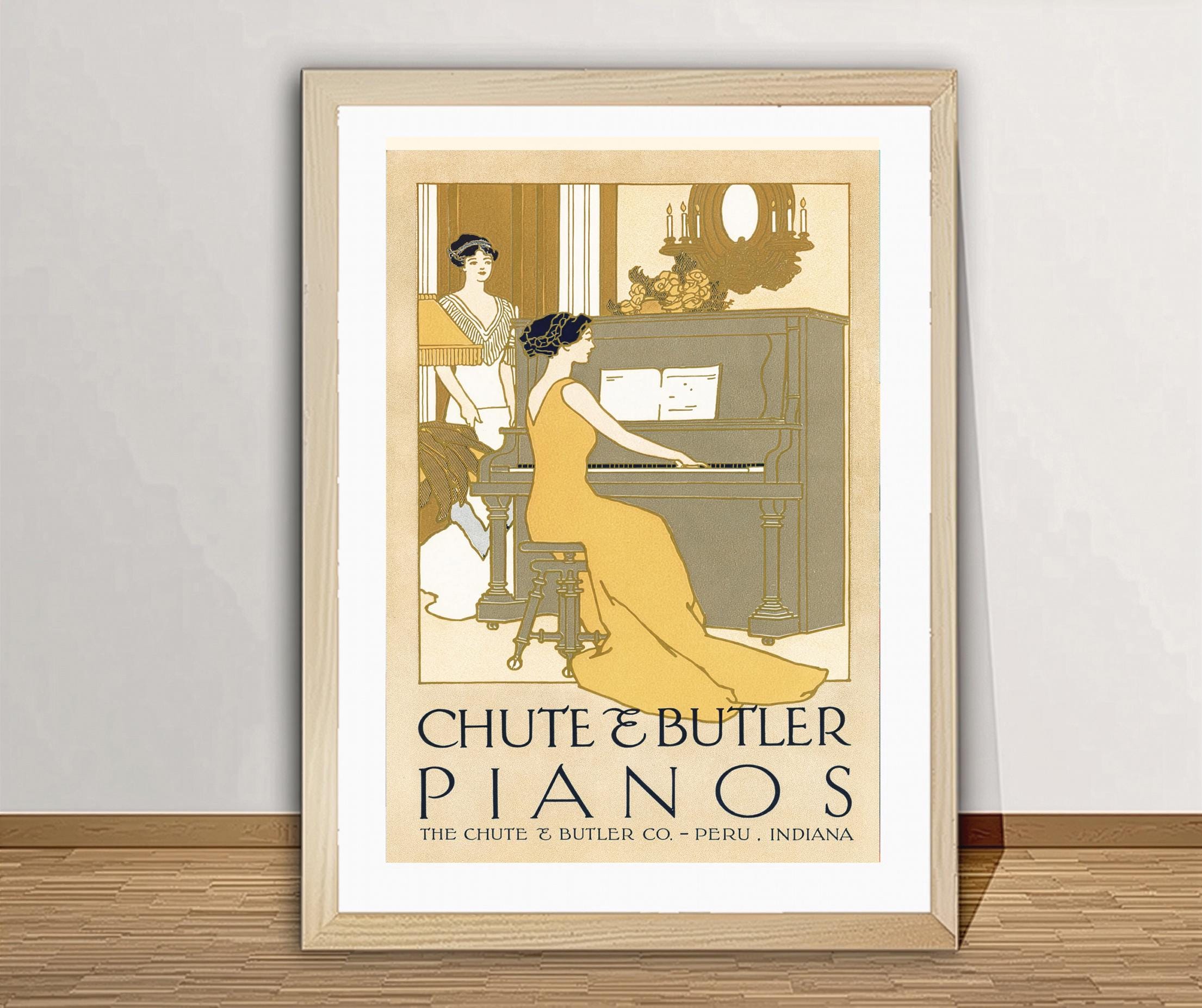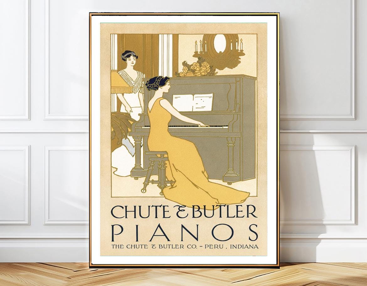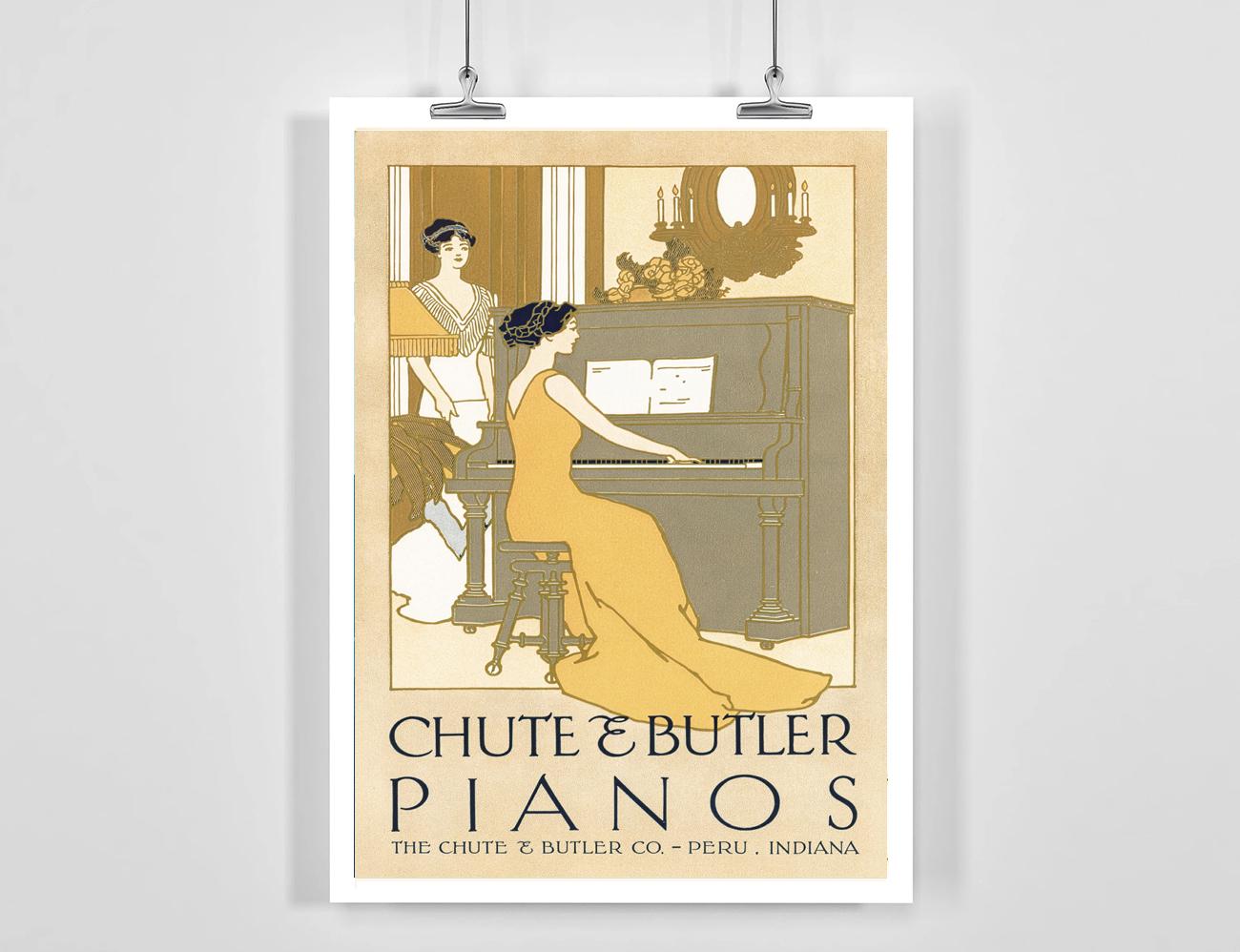 Chute Butler Pianos, Peru Indiana Vintage Piano Poster - Poster Paper or Canvas Print