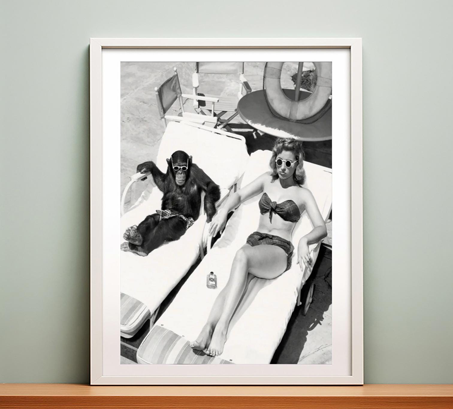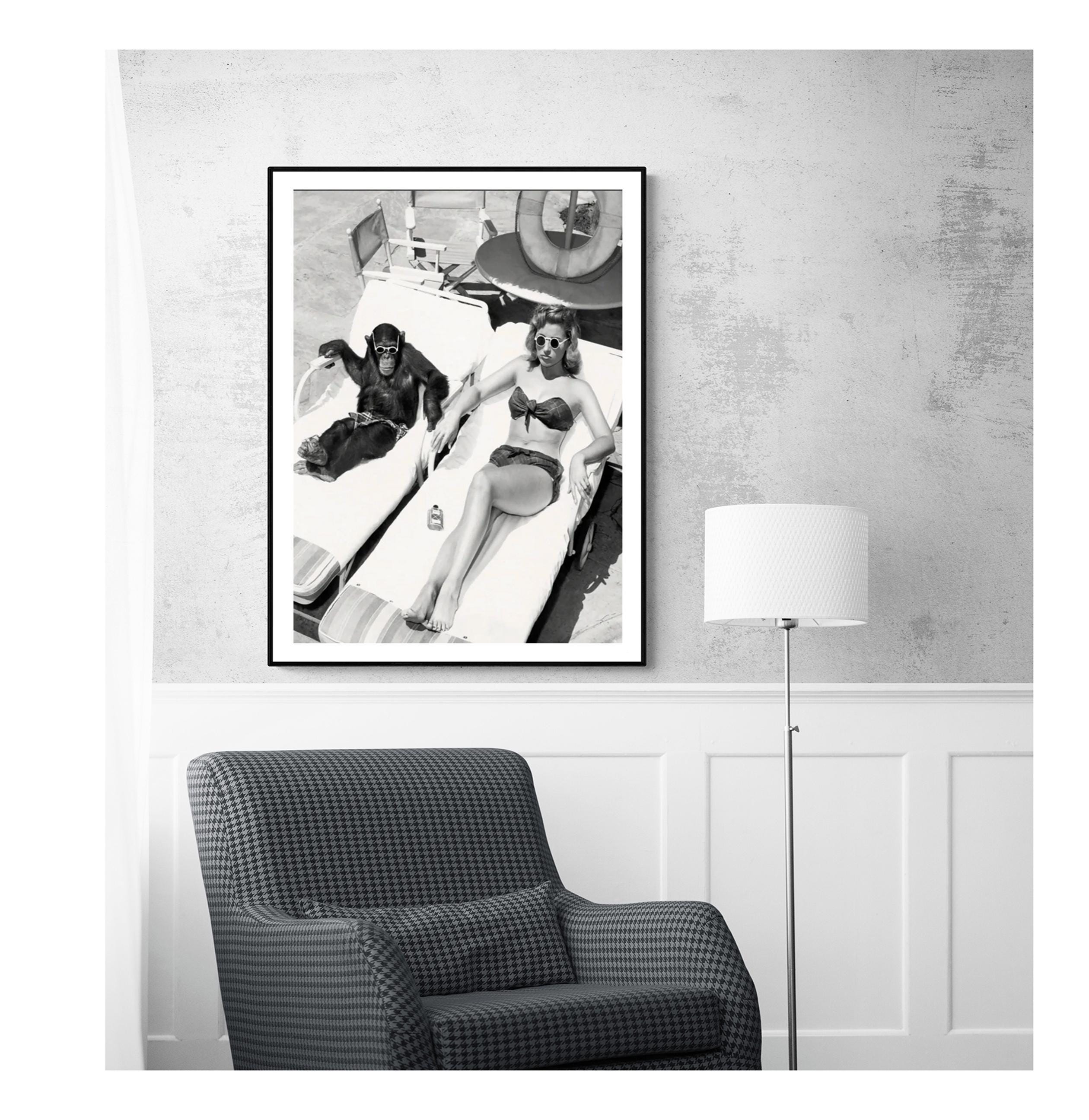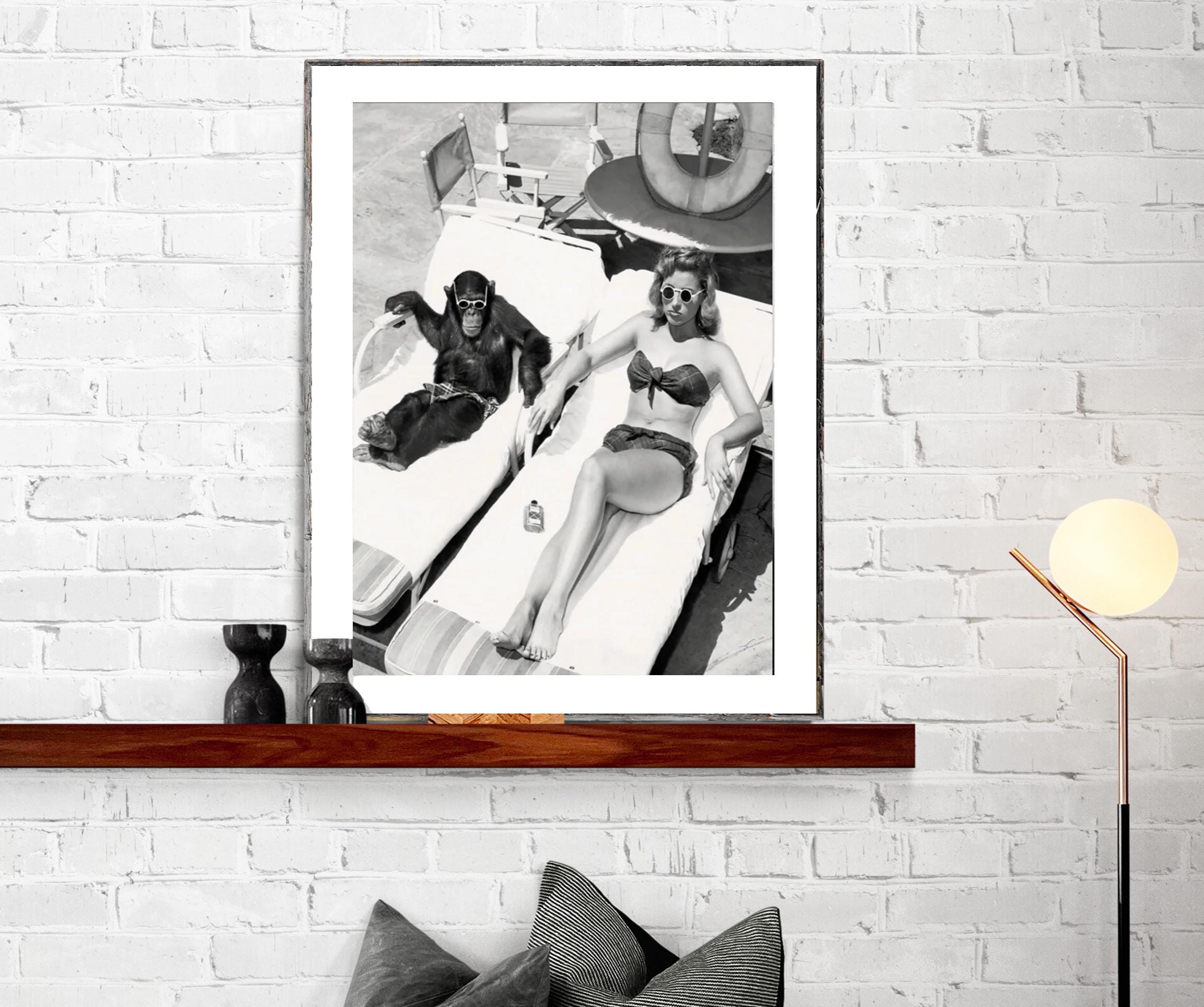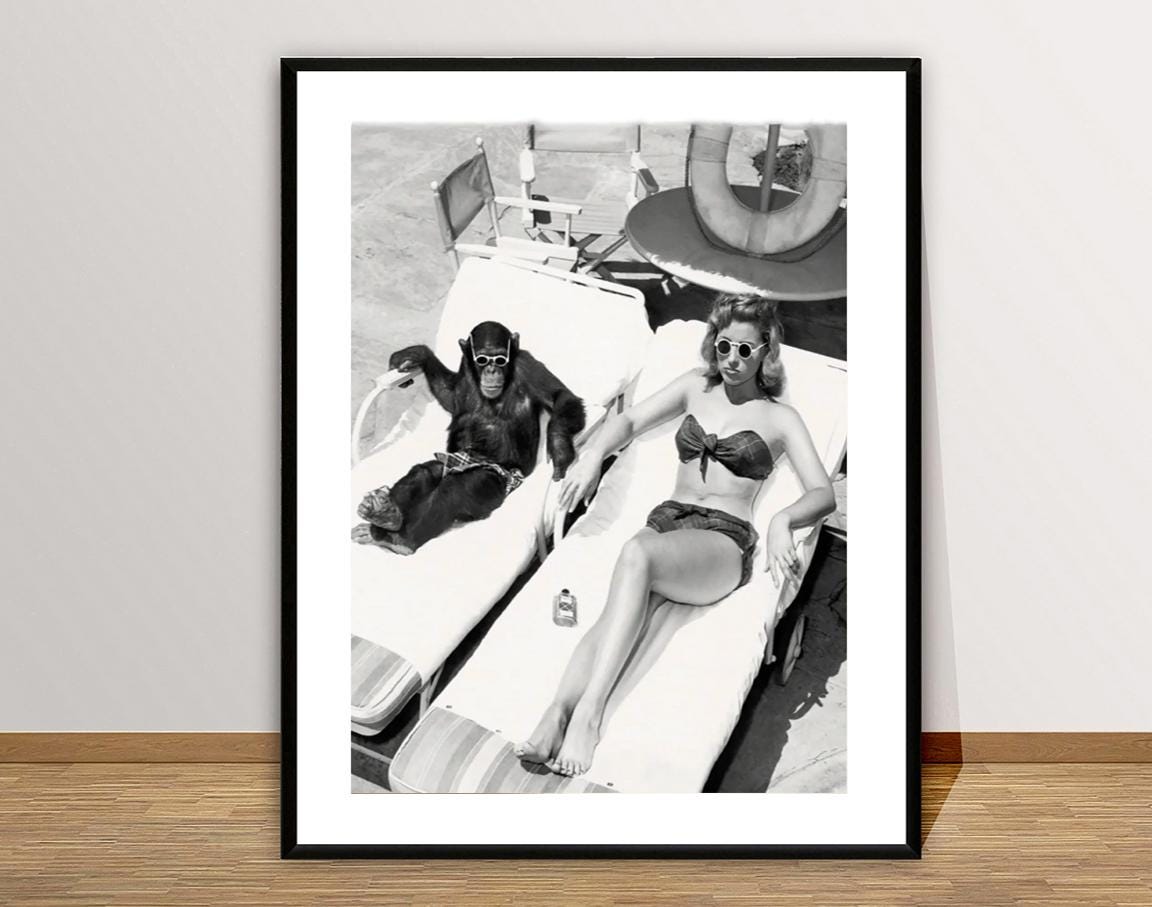 Chimpanzee and a Woman Sunbathing Vintage Photo Print - Poster Paper or Canvas Print / Gift Idea / Wall Decor