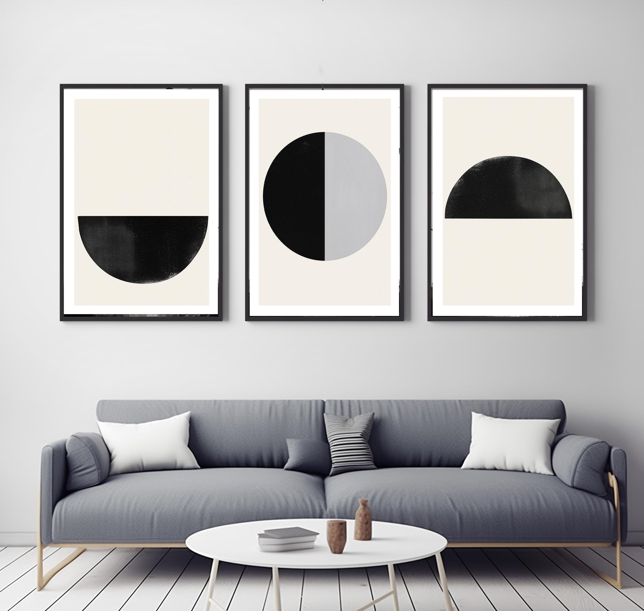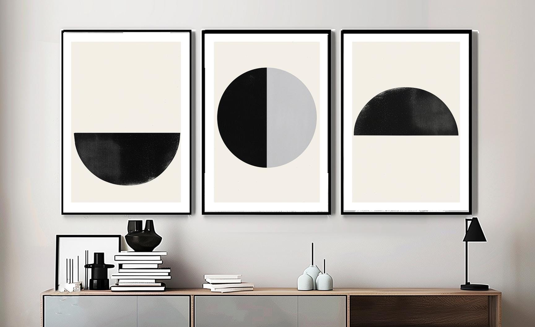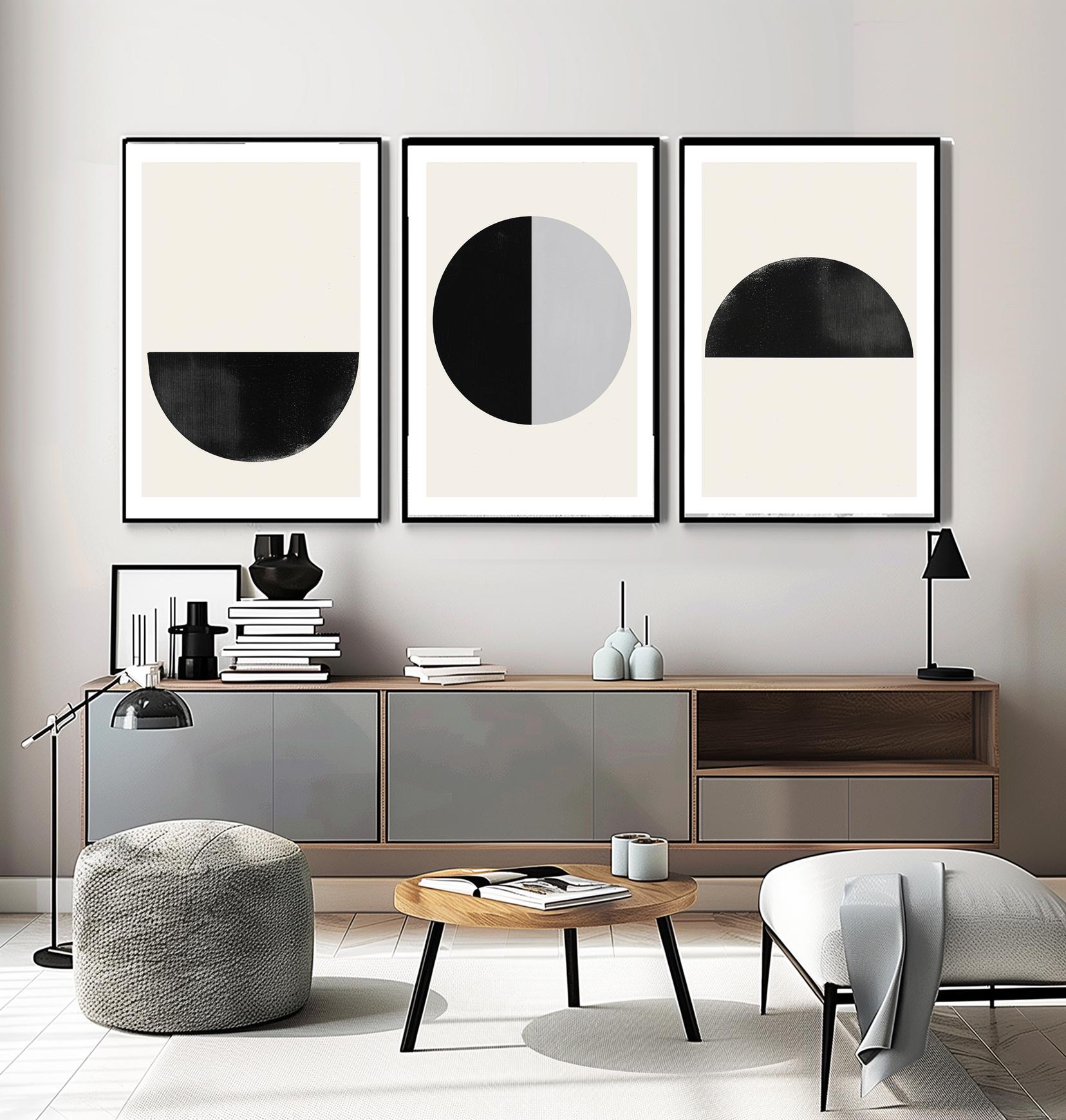 Geometric Abstract Black and White Art Prints - Set of 3 Minimalist Posters