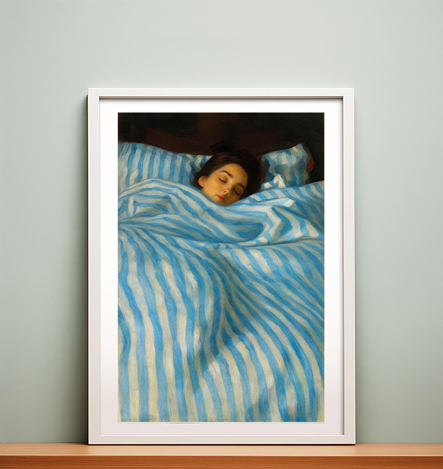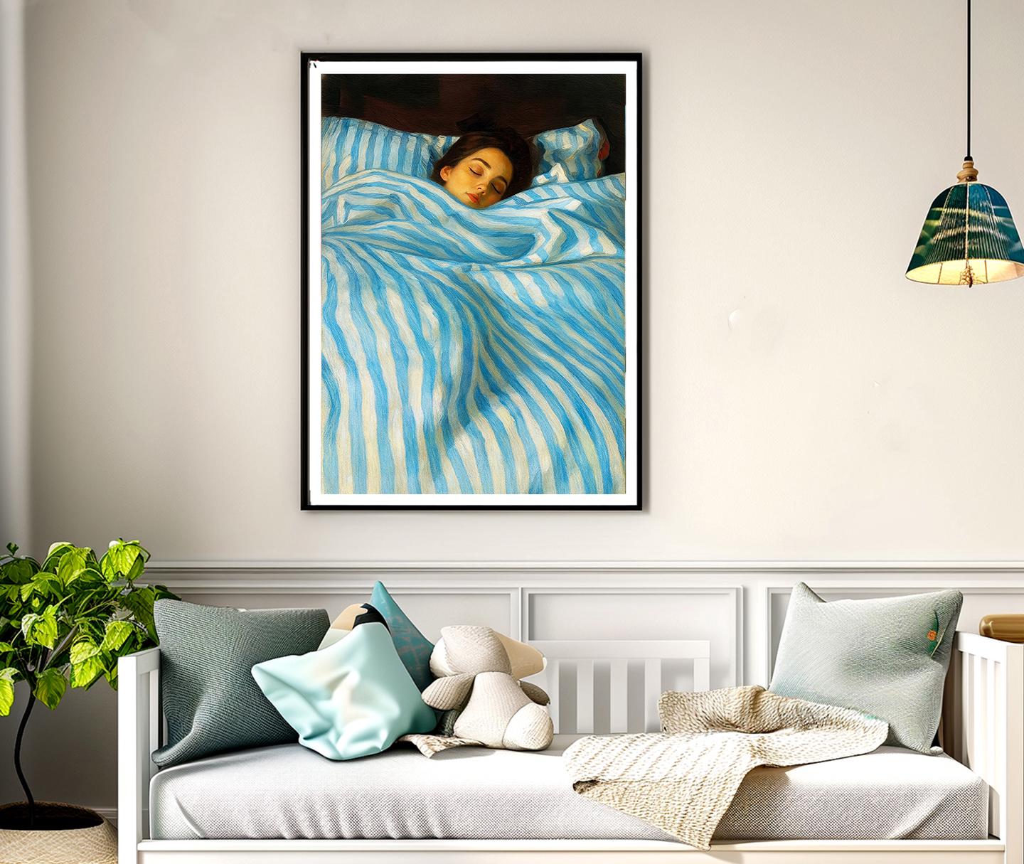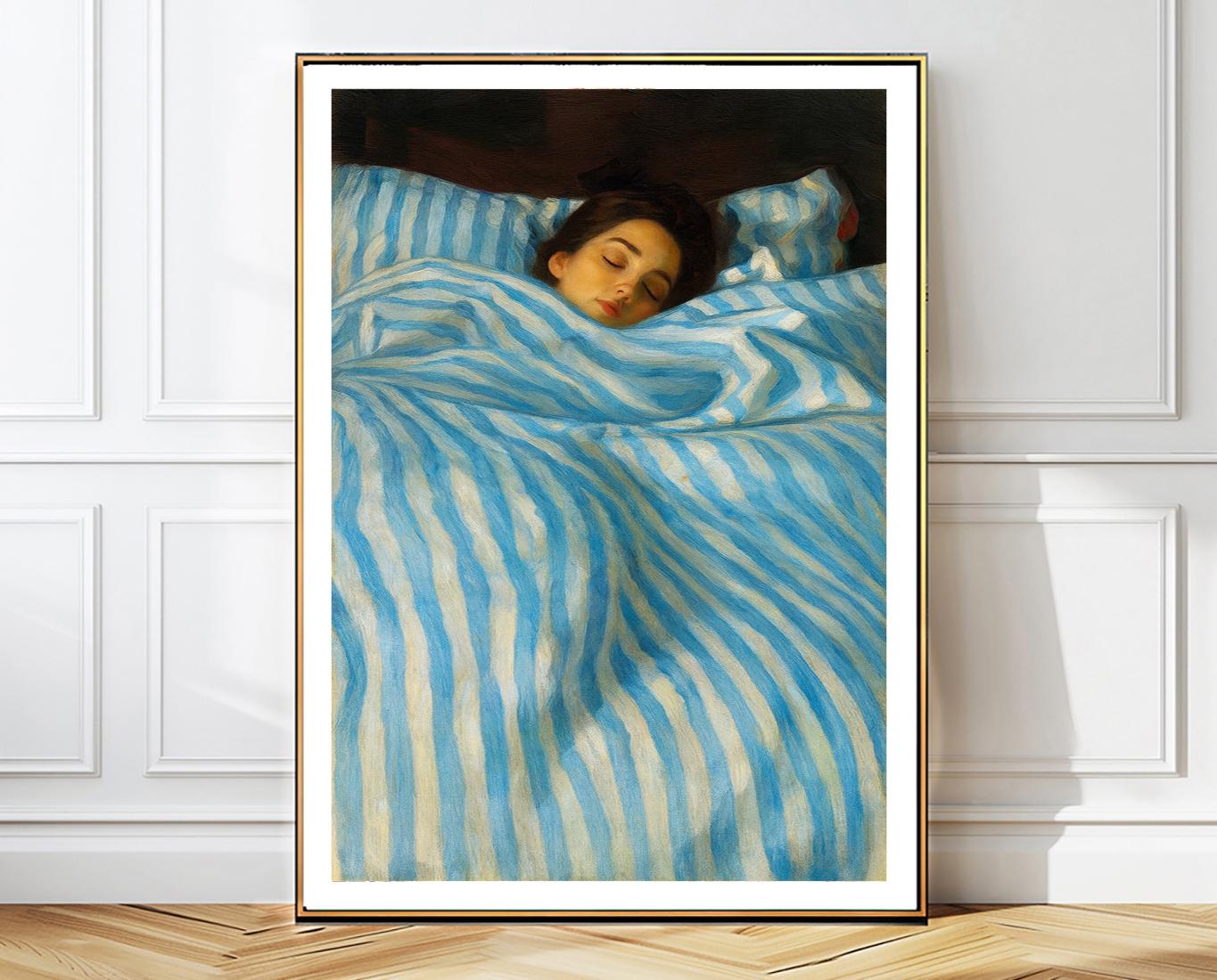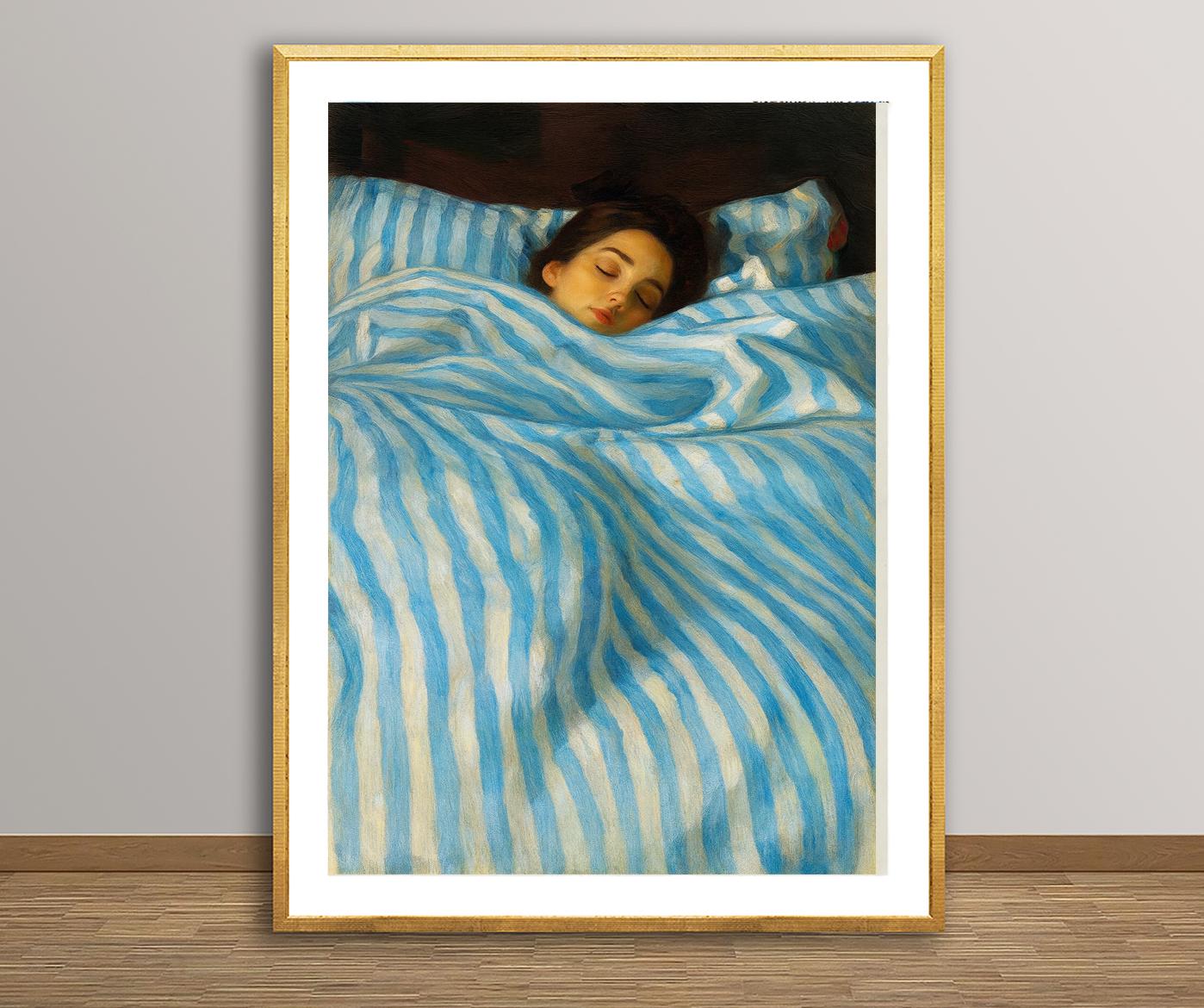 Printed on high quality paper, cotton canvas or adhesive sticker paper. A high quality reproduction of sleeping painting. Professional packaging for safe shipping. Natural white border will be added to the image for mounting and framing.