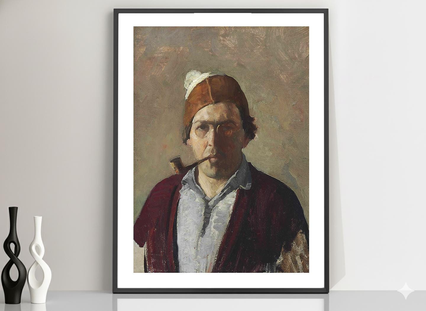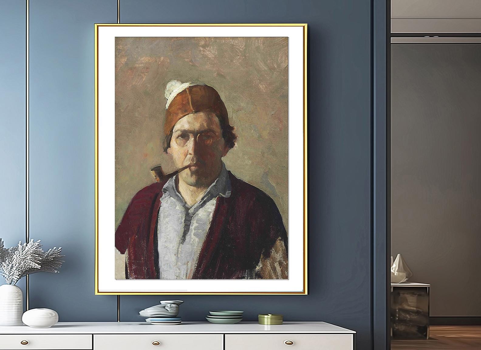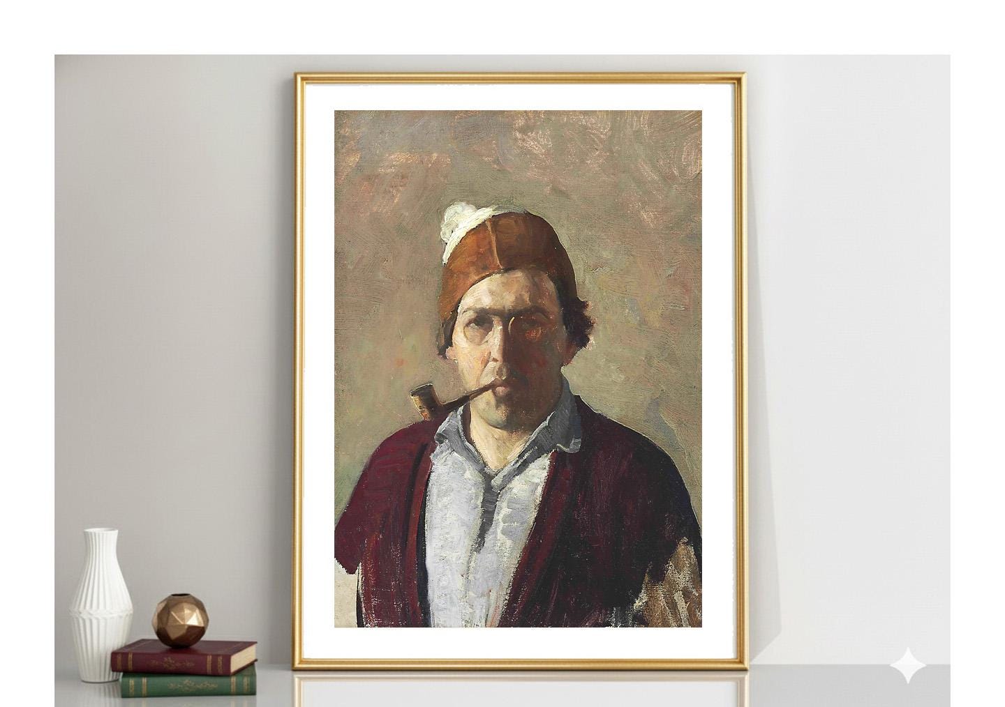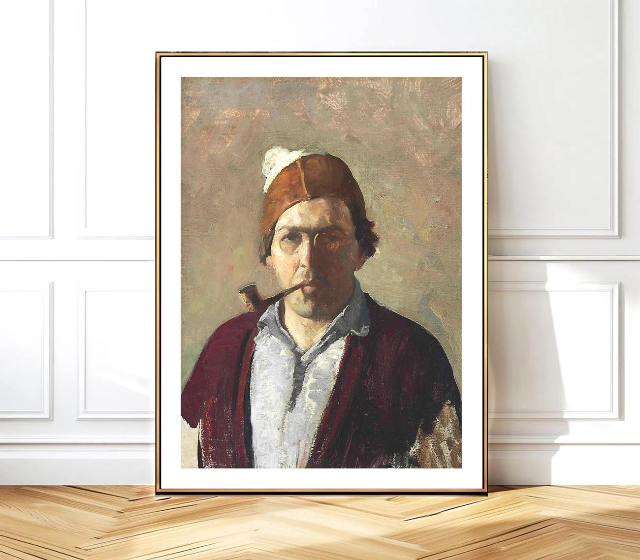 Newell Convers Wyeth Self Portrait with Pipe Fine Art - Poster Paper or Canvas Print / Gift Idea / Wall Decor