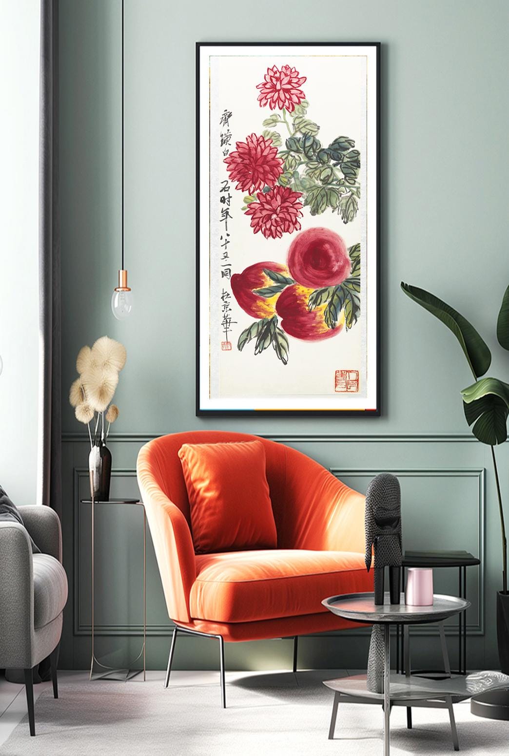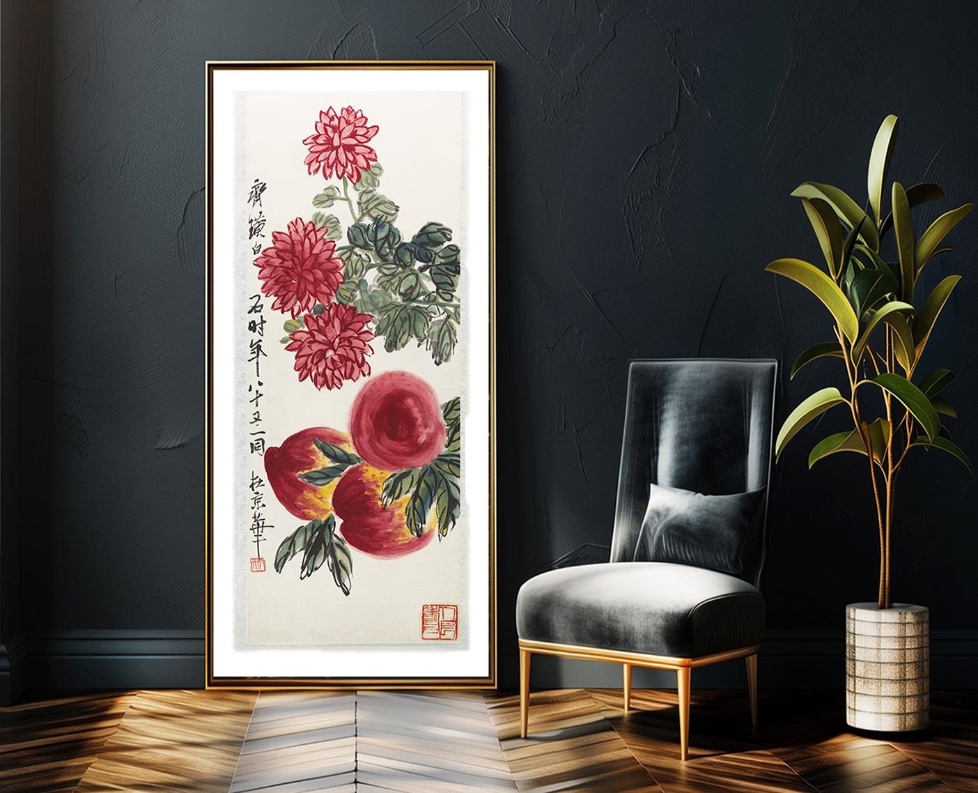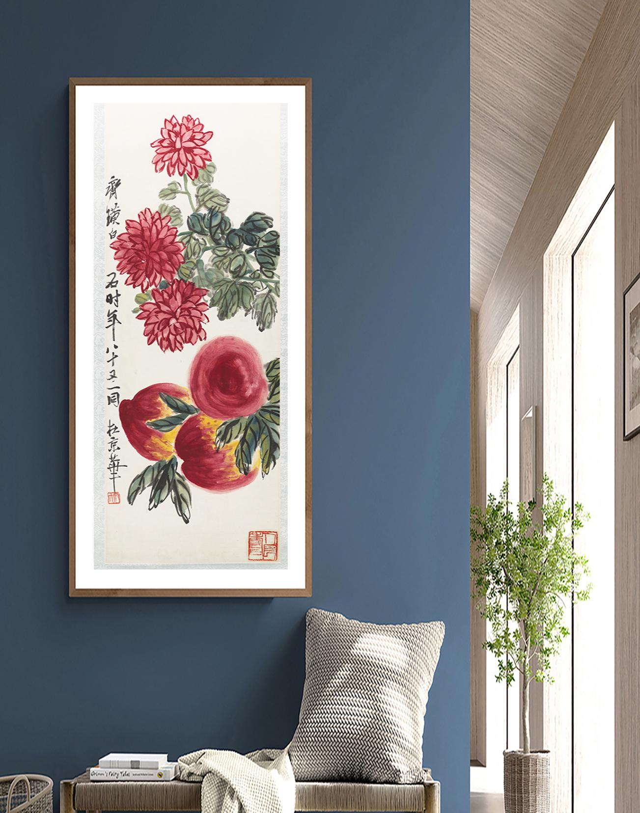 Peaches and Chrysanthemums by Qi Baishi_Fine Art Print - Poster Paper, Canvas Print / Gift Idea / Wall Decor