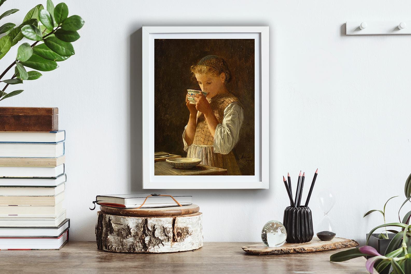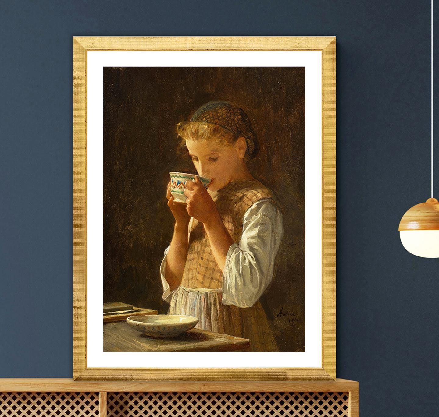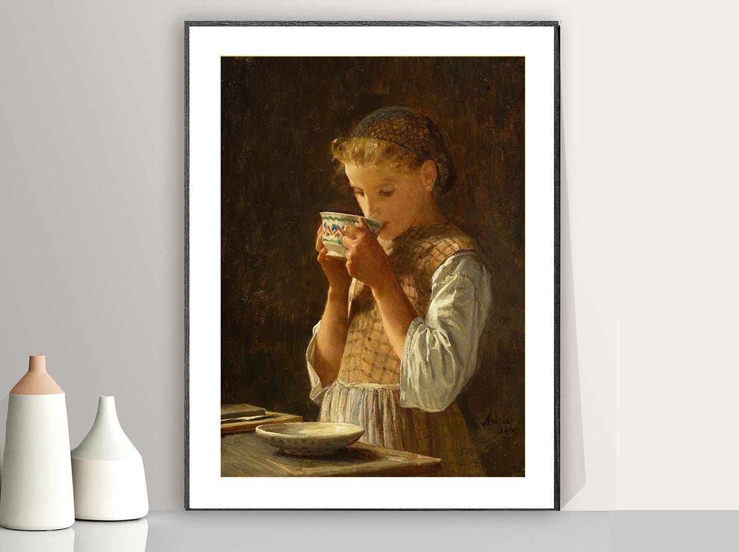 Albert Anker Girl Drinking Coffee Art Print - Poster Paper or Canvas Print