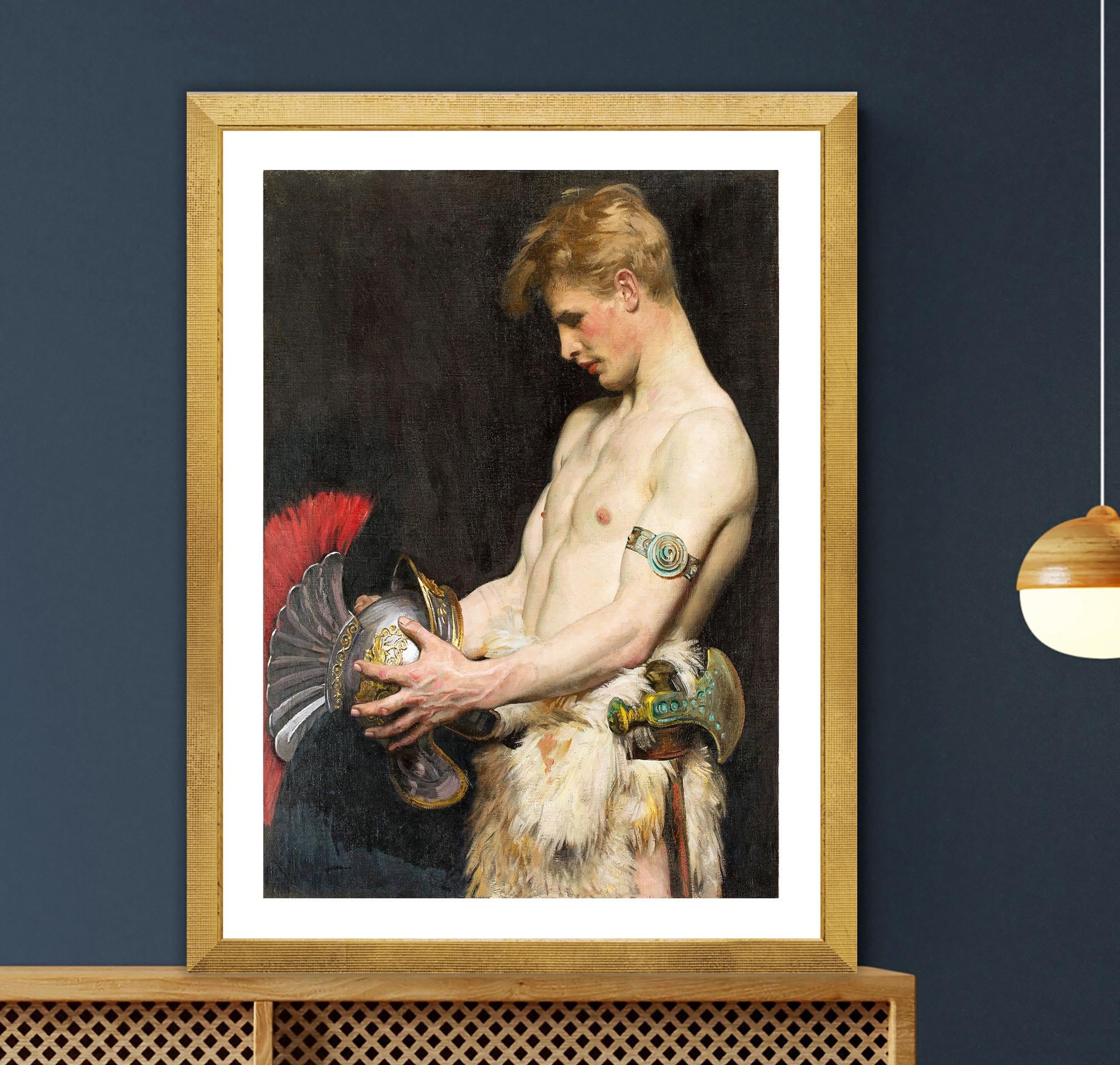 Germanic Warrior with Helmet by Osmar Schindler Art Print : Classical Warrior Portrait