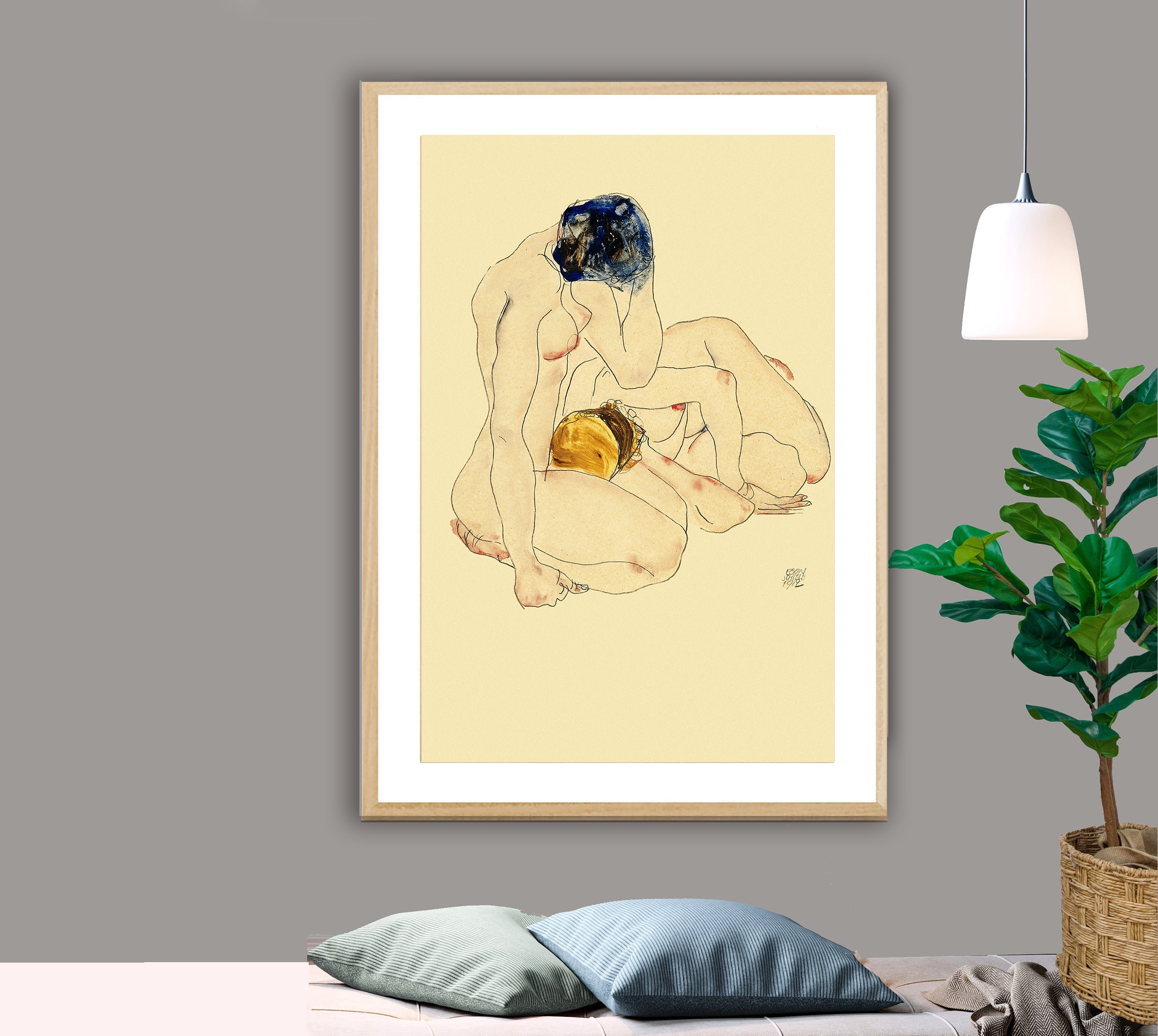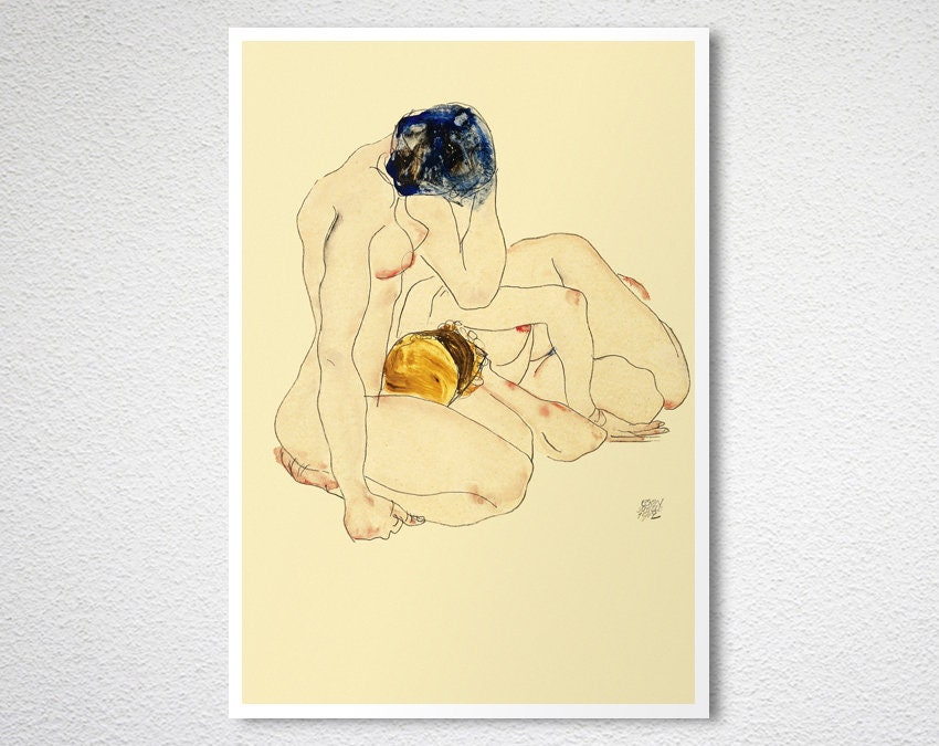 Two Friends (Zwei Freundinnen) by Egon Schiele - Poster Paper or Canvas Print