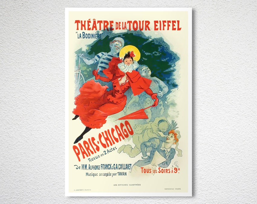 Theatre de la Tour Eiffel by Jules Cheret Vintage Entertainment Poster - Poster Paper or Canvas Print / Gift Idea / Christmas Gift