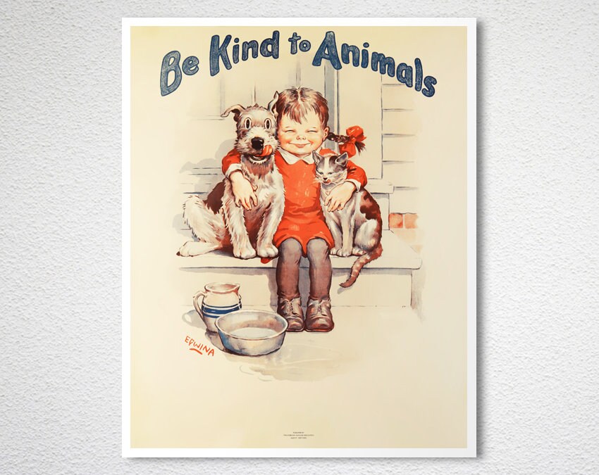 Be Kind to Animals Vintage Poster - Art Print - Poster Paper or Canvas Print