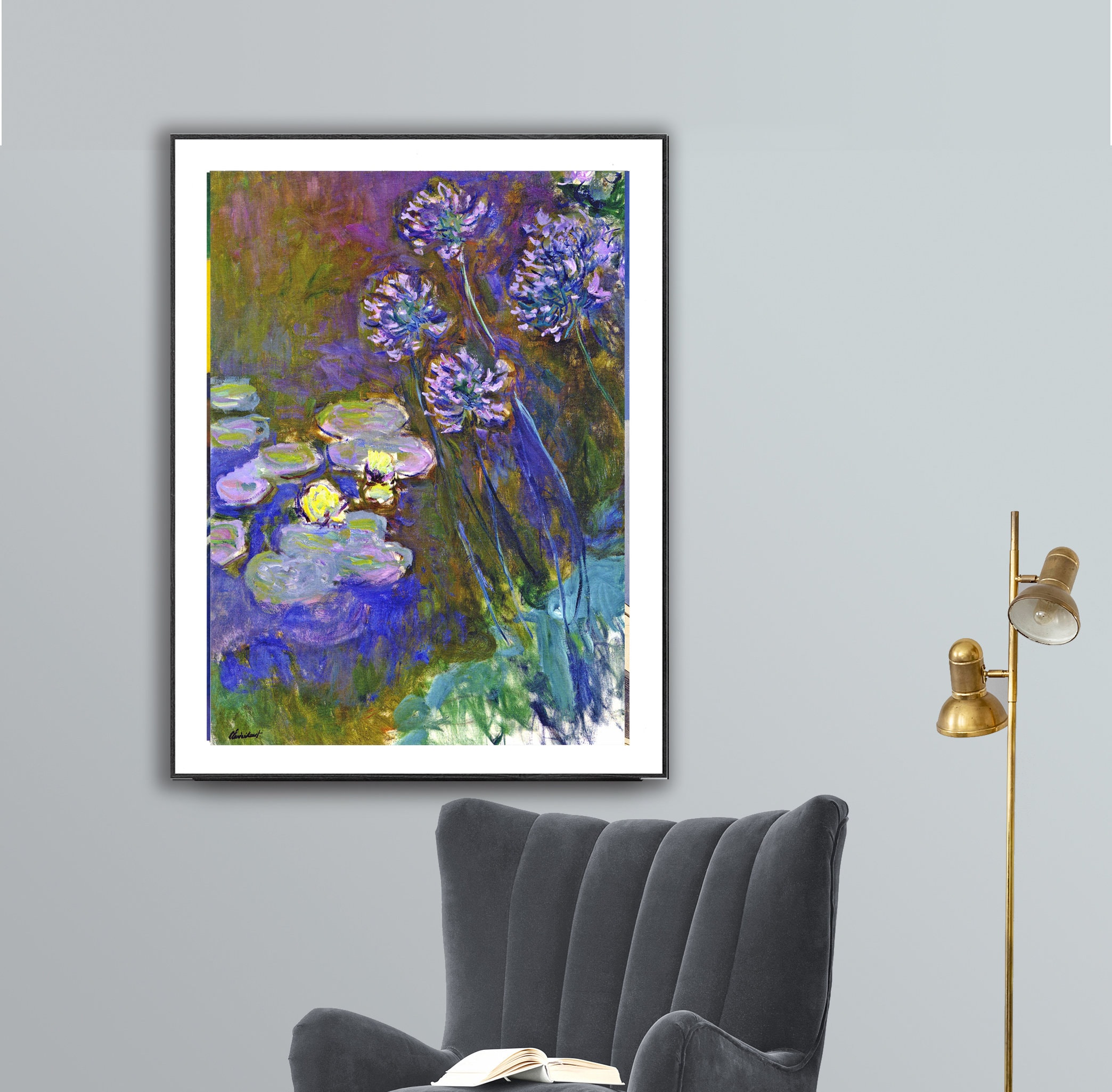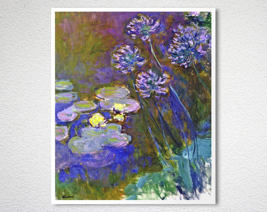 Water Lilies and Agapanthus by Claude Monet Fine Art Print - Poster Paper or Canvas Print / Wall Decor