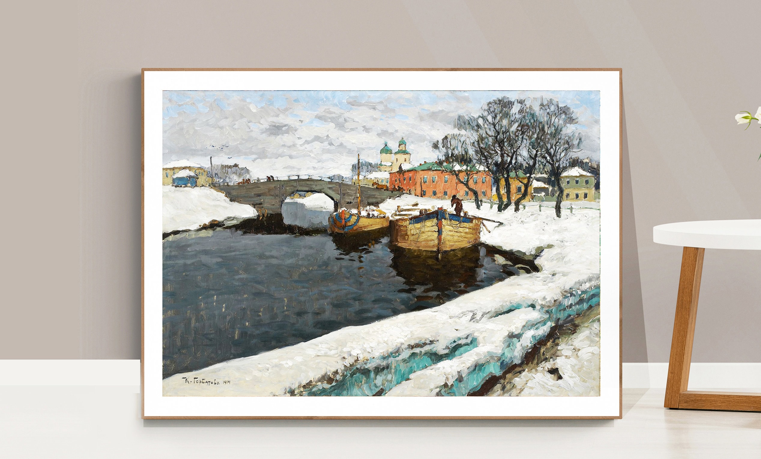 Printed on high quality paper, cotton canvas or adhesive sticker paper. A high quality reproduction of painting by Konstantin Gorbatov. Professional packaging for safe shipping. Natural white border will be added to the image for mounting and framing.