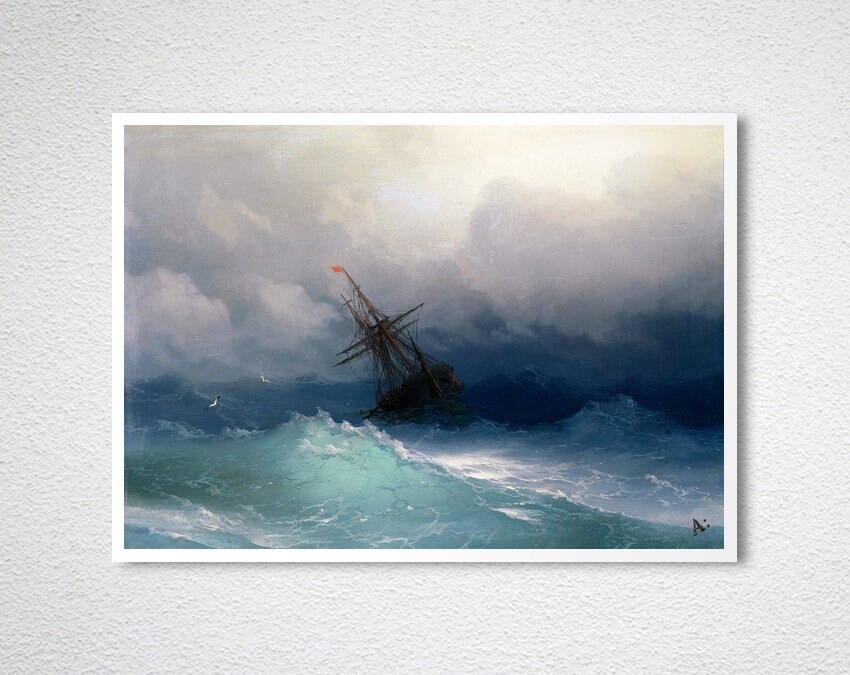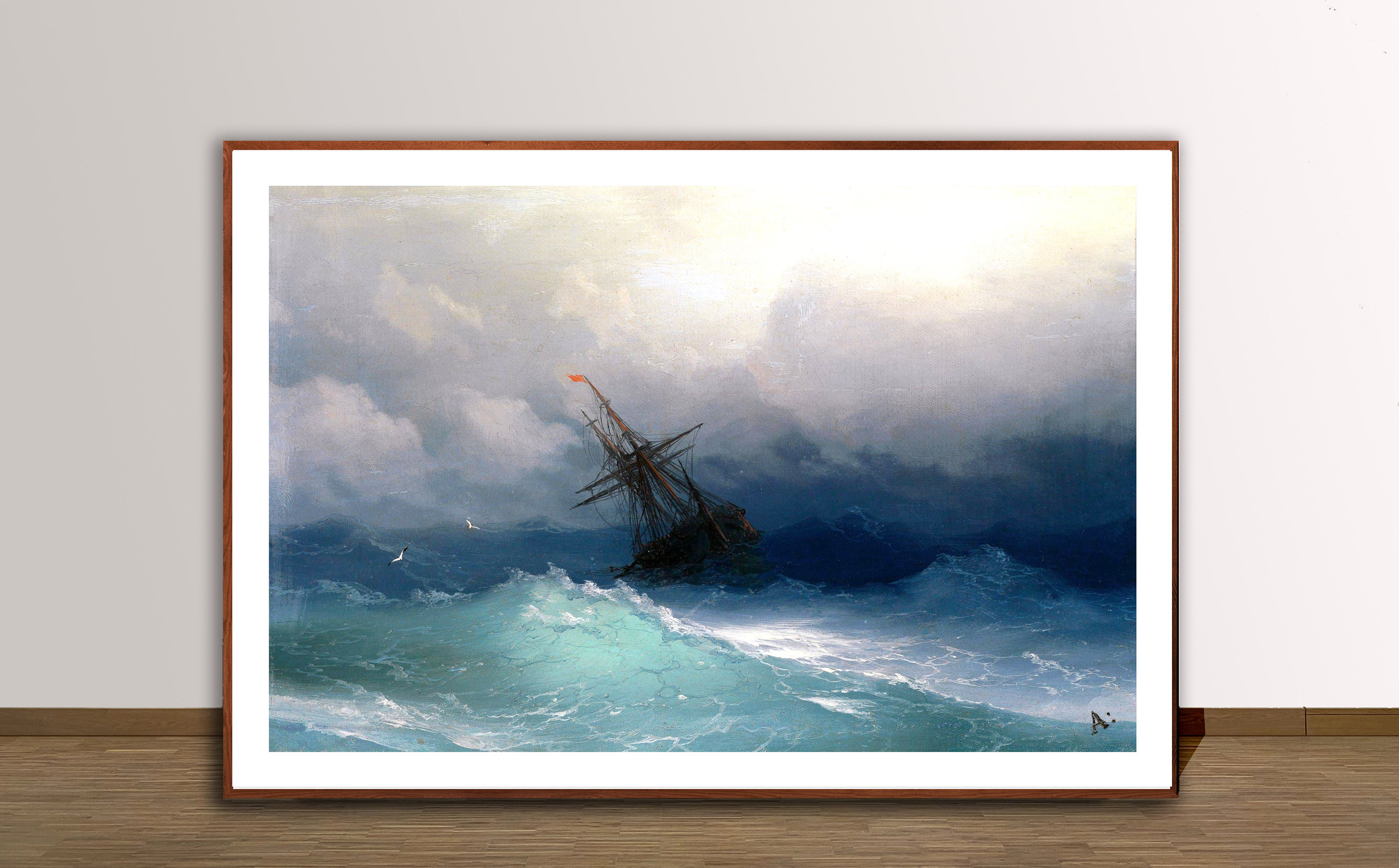 Ship on Stormy Seas by Ivan Konstantinovich Aivazovsky Fine Art Print - Poster Paper or Canvas Print / Gift Idea / Wall Decor