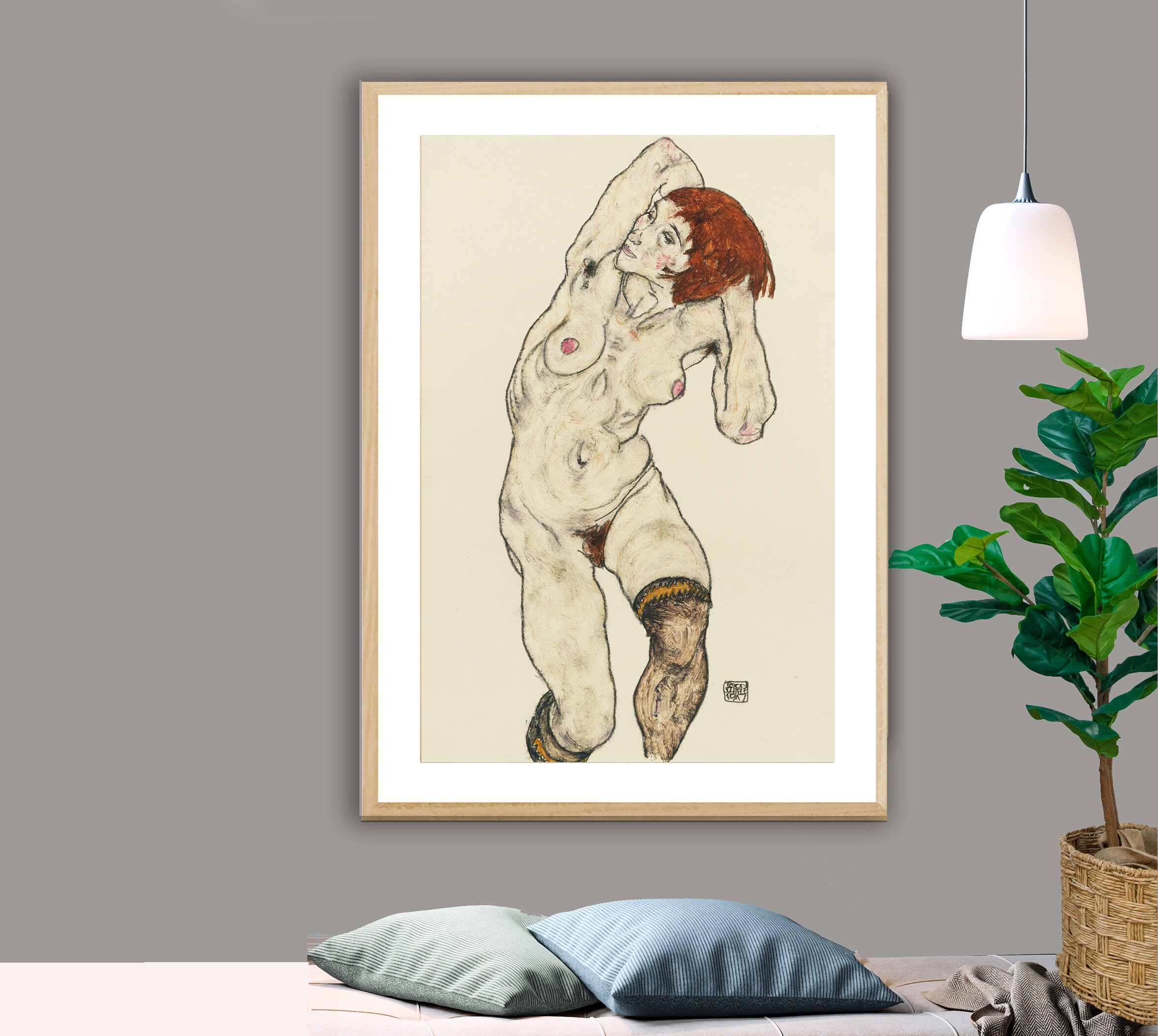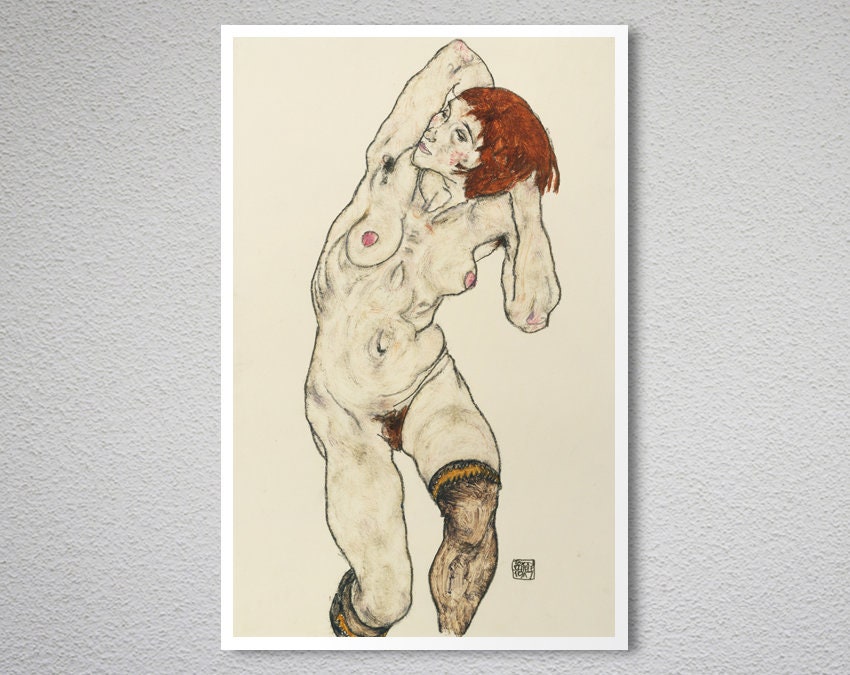 Standing Nude with Black Stockings by Egon Schiele Fine Art Print - Poster Paper or Canvas Print / Gift Idea / Wall Decor