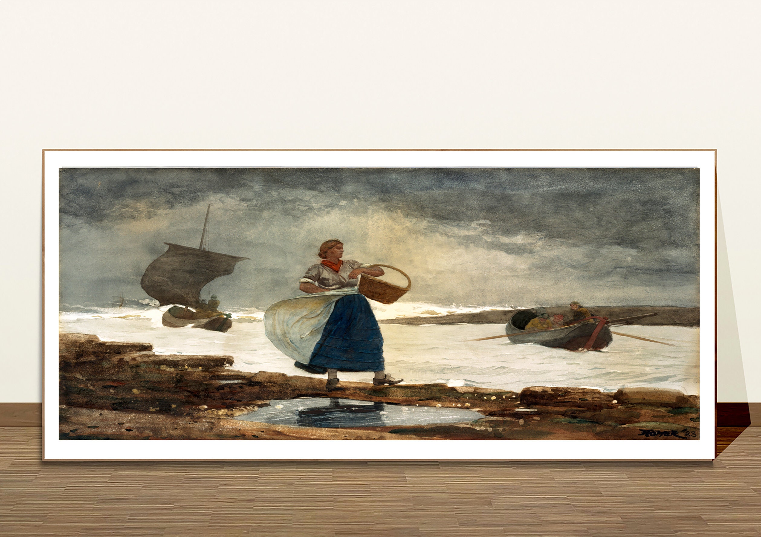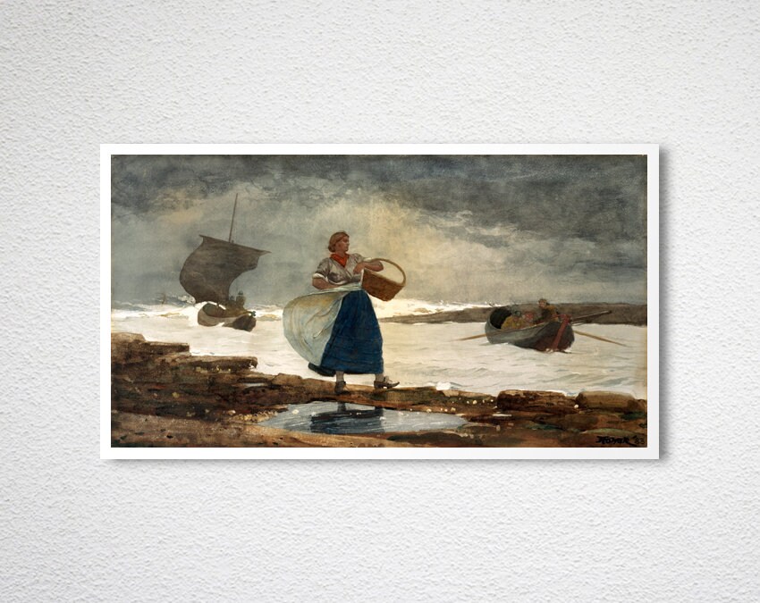 GICLEE printed on high quality paper, cotton canvas or adhesive sticker paper. A high quality reproduction of painting by Winslow Homer. Professional packaging for safe shipping. Natural white border will be added to the image for mounting and framing.