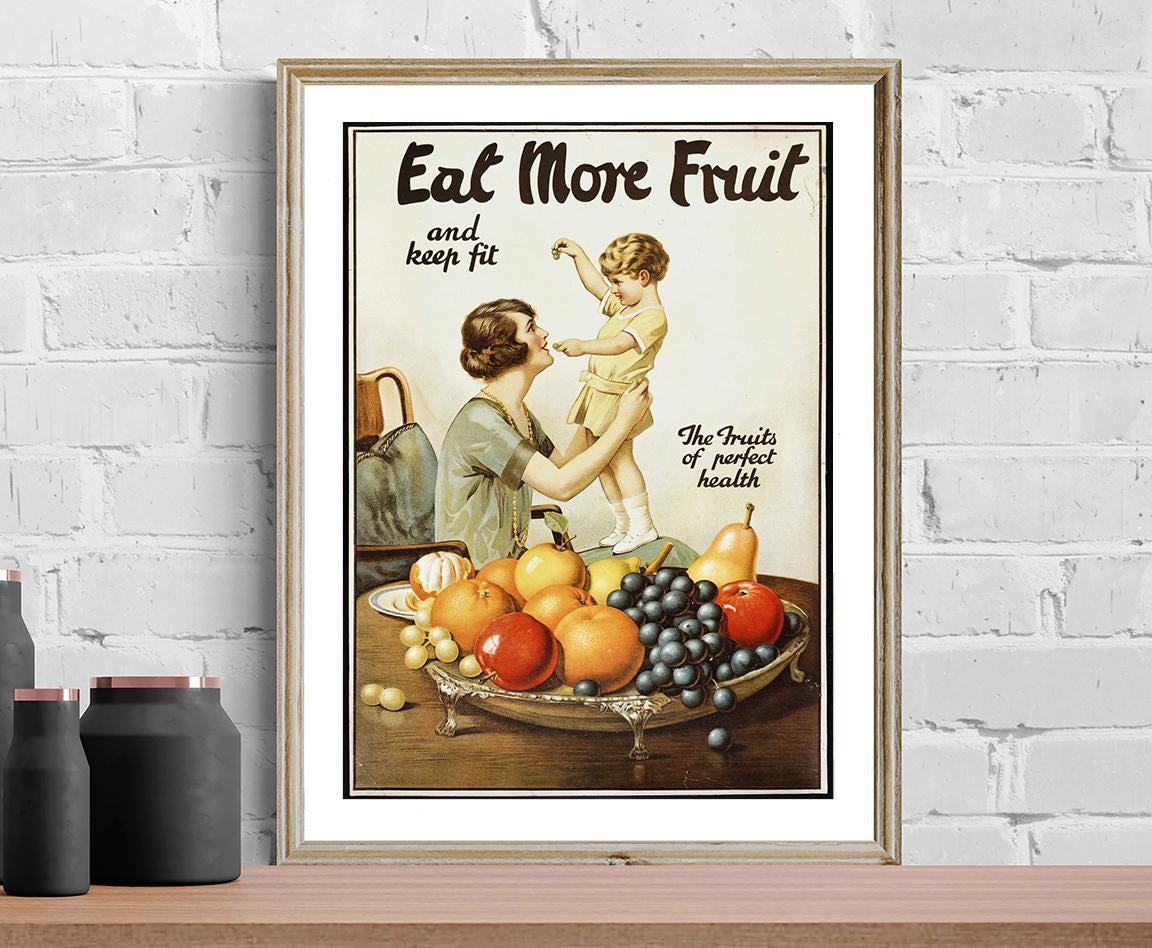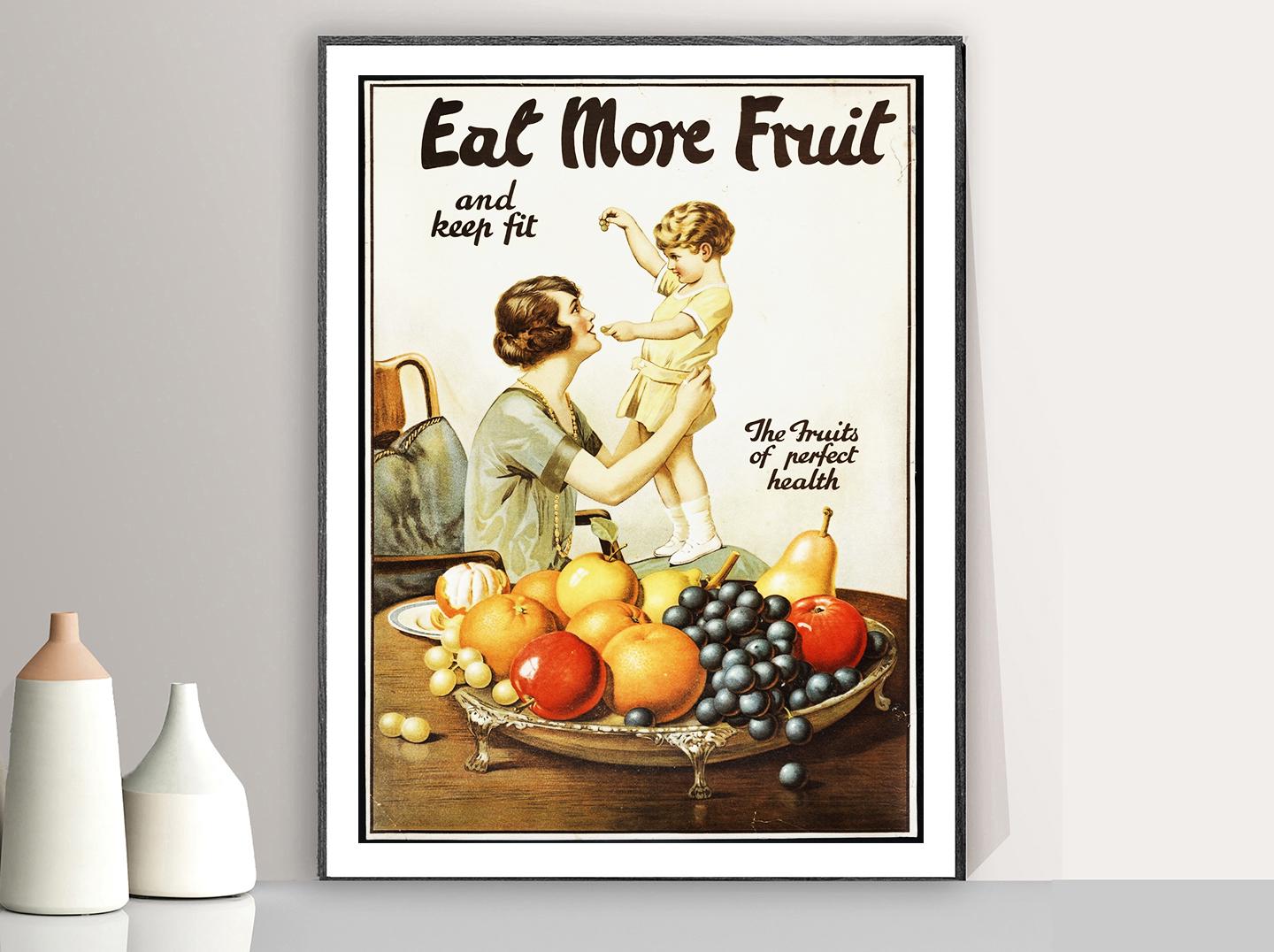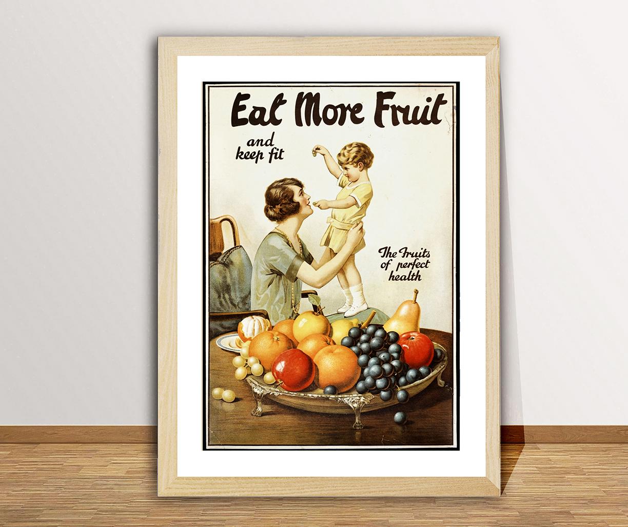 Eat More Fruit Vintage Print: Kitchen Food Poster, Café Wall Art