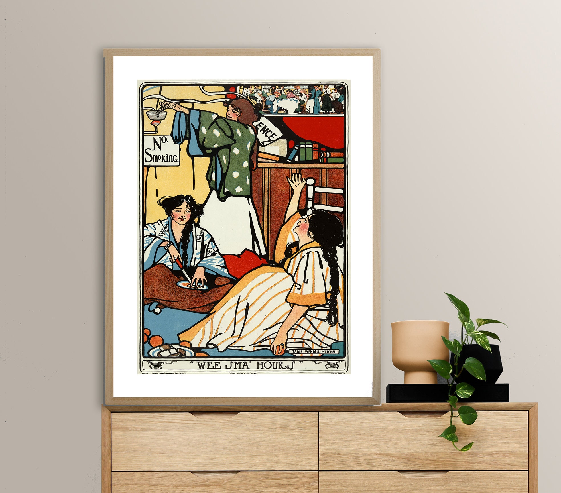 Wee Sma' Hours, No Smoking by Sadie Wendell Mitchell Vintage Poster - Poster Paper or Canvas Print